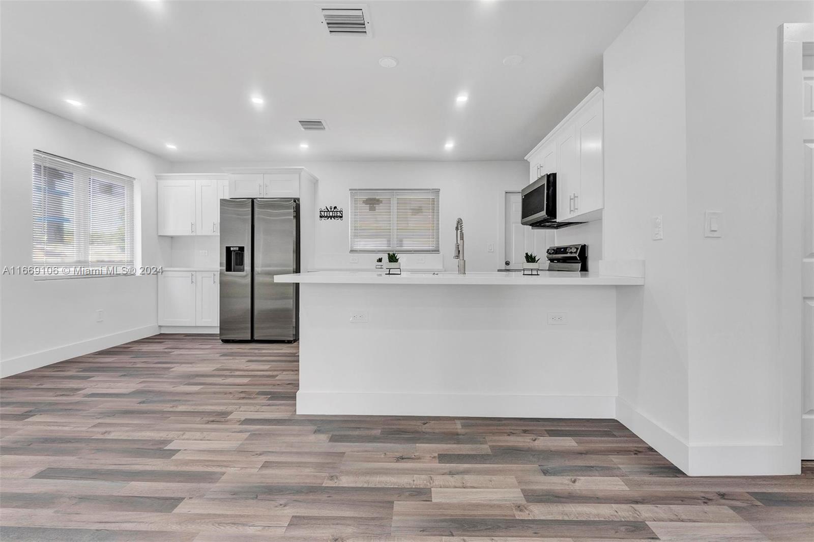 Welcome Home to your single-family paradise offers the perfect blend of comfort and style. Featuring 3 bedrooms and 2 bathrooms and a cozy living space, this home has it all. Step inside and be greeted with natural light thanks to the abundance of Impact windows which provides energy efficiency. The heart of the home is the kitchen, complete with quartz countertops, new shaker cabinets, with Stainless steel appliances. The newly installed flooring adds a touch of elegance to this space. Indulge in relaxation in the newly updated bathrooms, featuring modern fixtures and recessed lighting throughout the house. This oasis comes complete with a spacious shed could be used for storage or efficiency and plenty of backyard space. Conveniently located near major highways and Fort Lauderdale beach.