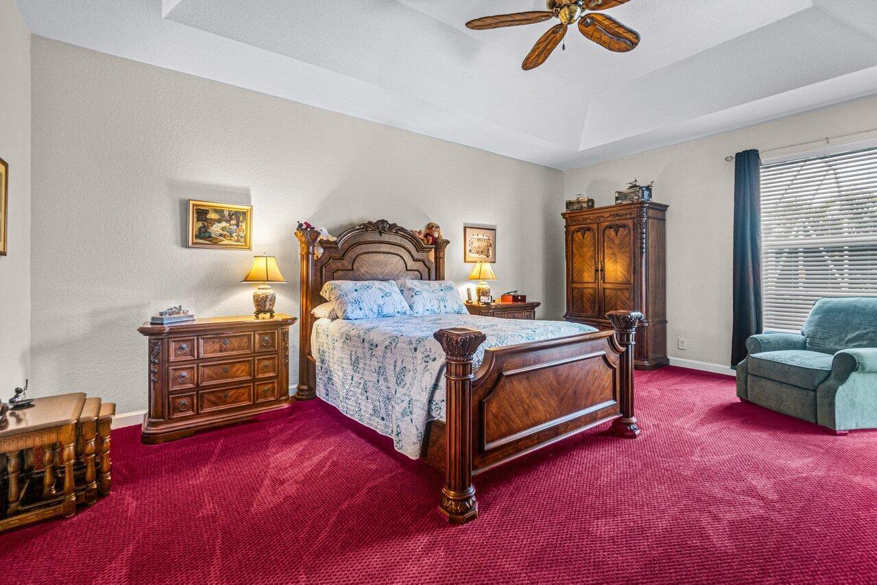 AMAZING! 4 bed, 3 bath POOL HOME on premium LAKE VIEW! The spacious TRIPLE SPLIT floorplan boasts volume tray ceilings w/ tons of natural light, REDONE guest bath w/ frames shower and new vanity. The entryway living & formal dining areas lead to the kitchen featuring granite counters, oversized pantry, prep island, & breakfast area. The kitchen opens to a large family room w/ sliders leading out to your private backyard paradise. The covered patio is perfect for BBQs & outdoor entertaining. Relax by the pool as you enjoy the privacy of the palm tree hedged yard w/ pristine lake views beyond. The private master retreat boasts patio sliders. The 4th bedroom is adjacent to a Cabana Bath for easy access from the pool. This is Florida living at its finest!