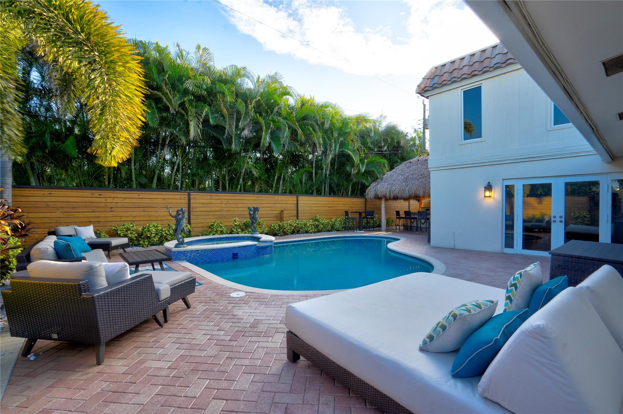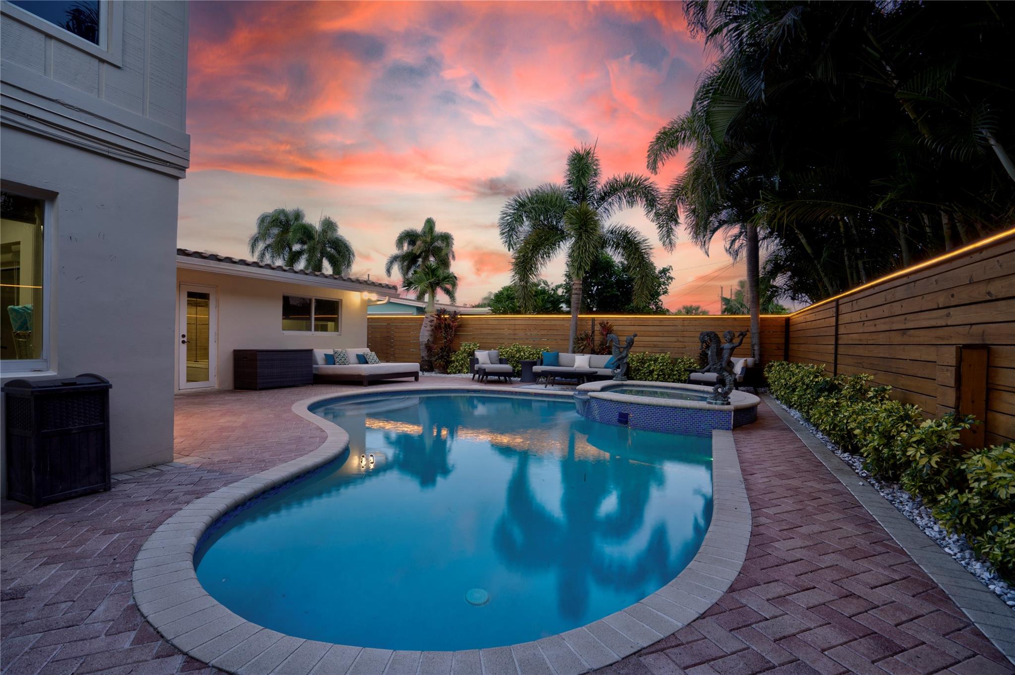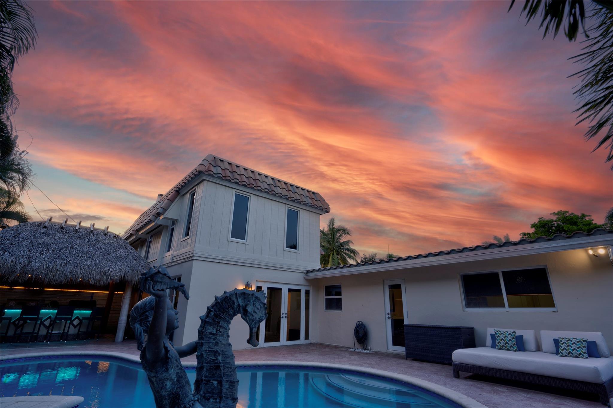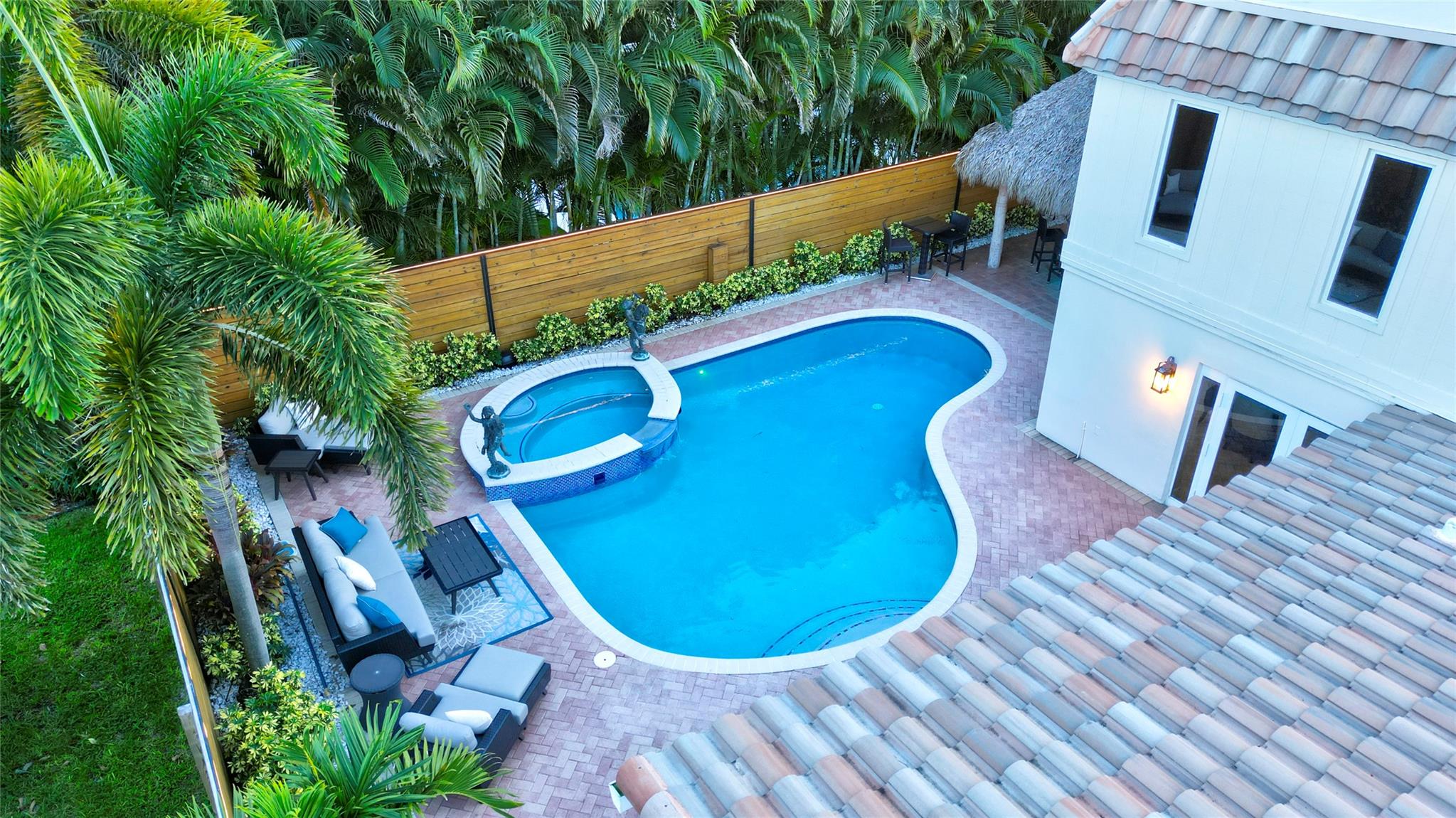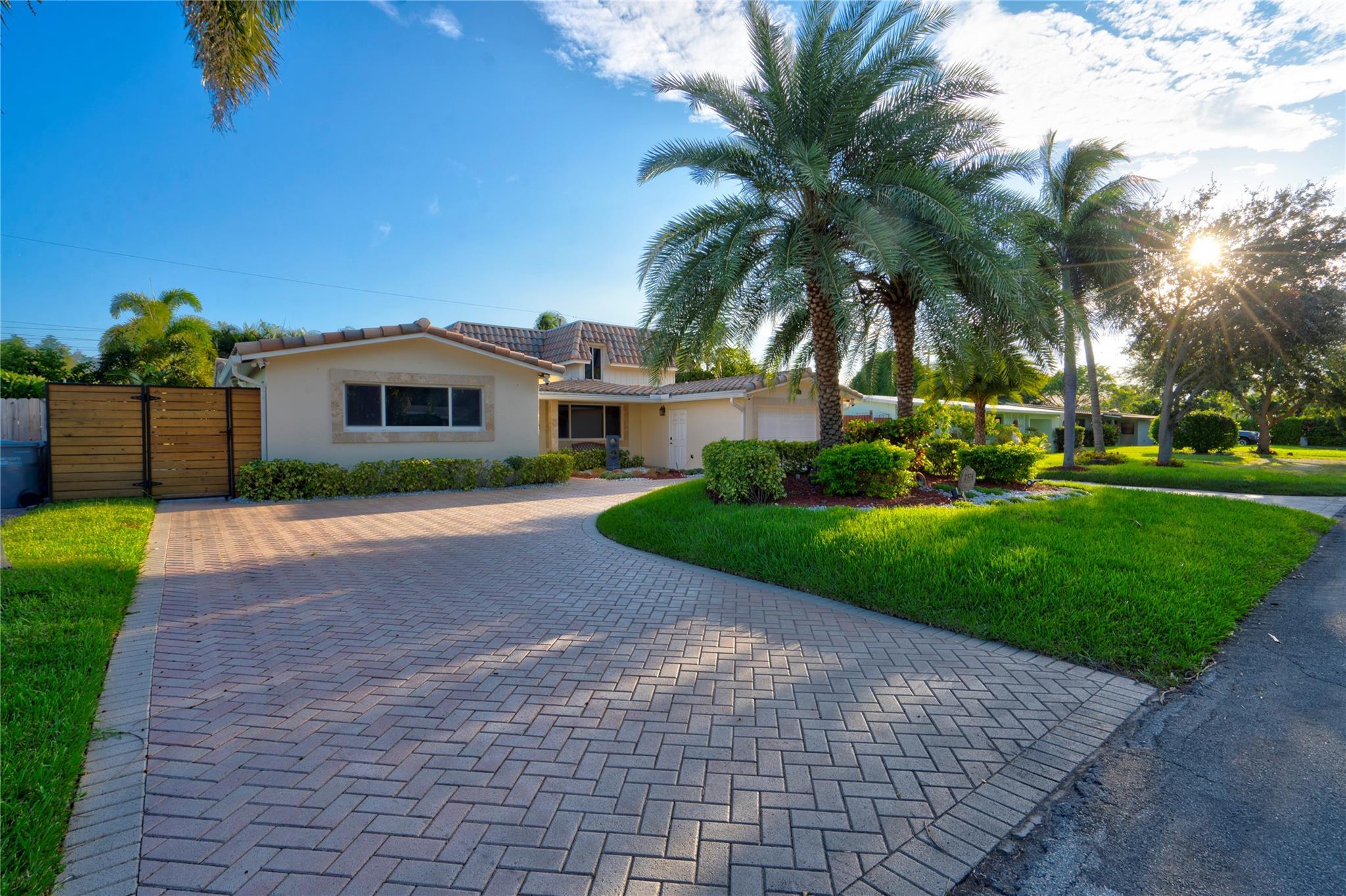 Luxurious, completely renovated, spacious (2,745 sq. ft.), 5/3.5 Single-Family Home in desirable Beachway Estates, Pompano Beach! Walking distance to beach & nearby Pompano Beach Amphitheater. Amenities: high-tech smart, heated pool spa w/ large patio, Tike Hut w/ wet bar for BBQ. High Impact Windows, Doors & Locks throughout entire home. Recessed Lighting, blackout blinds through all bedrooms. Second story master retreat w/ remodeled bath & shower, designed for privacy and sense of retreat; huge breakfast bar w/ granite countertops & stainless-steel appliances; formal dining area; fireplace; 25 kW Generator; tankless water heater on natural gas. New Smart Washer/Dryer, Nest Internet AC, 3-Split AC units. Roof 2-years old. Golf cart garage w/ laundry facilities and plenty of storage.