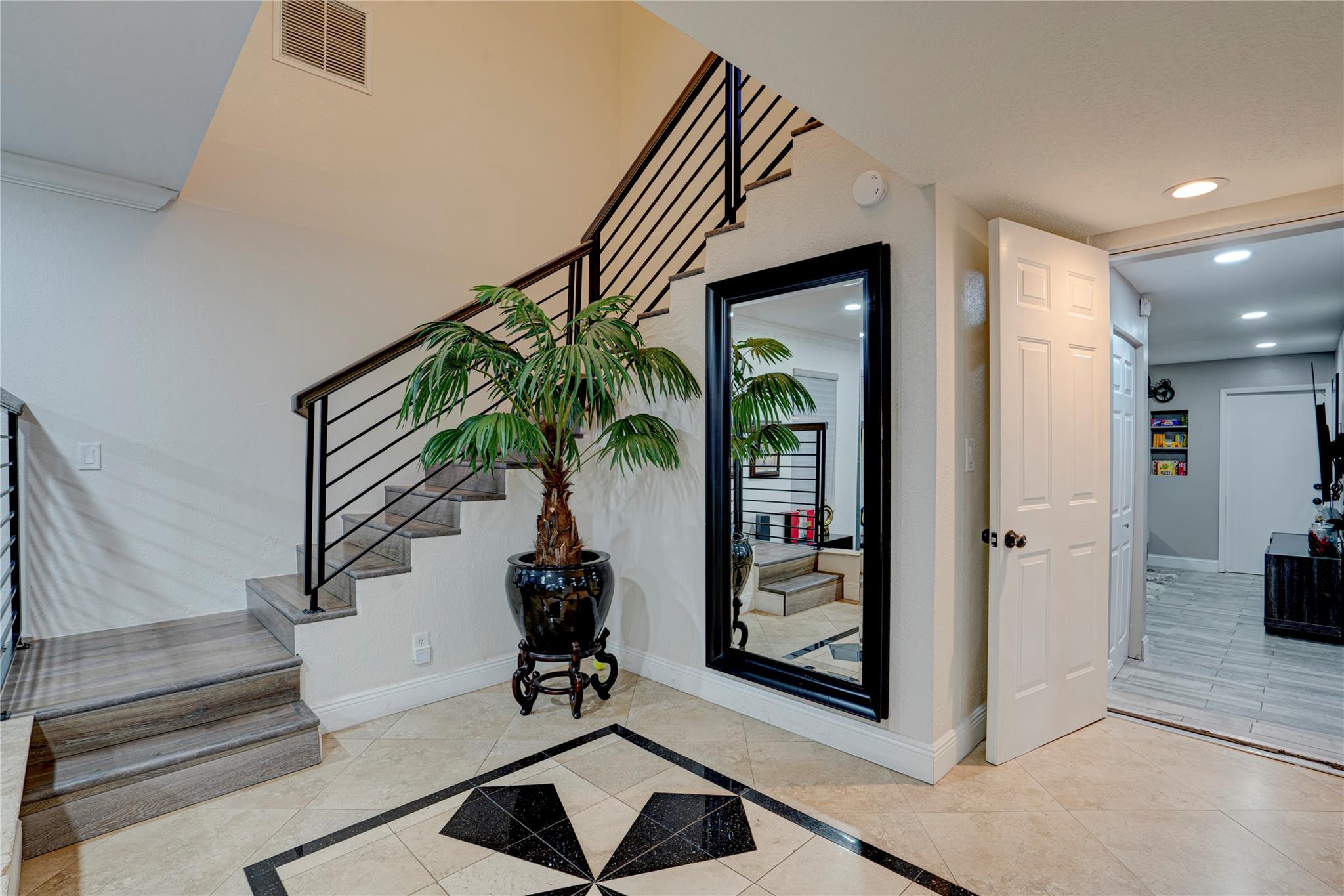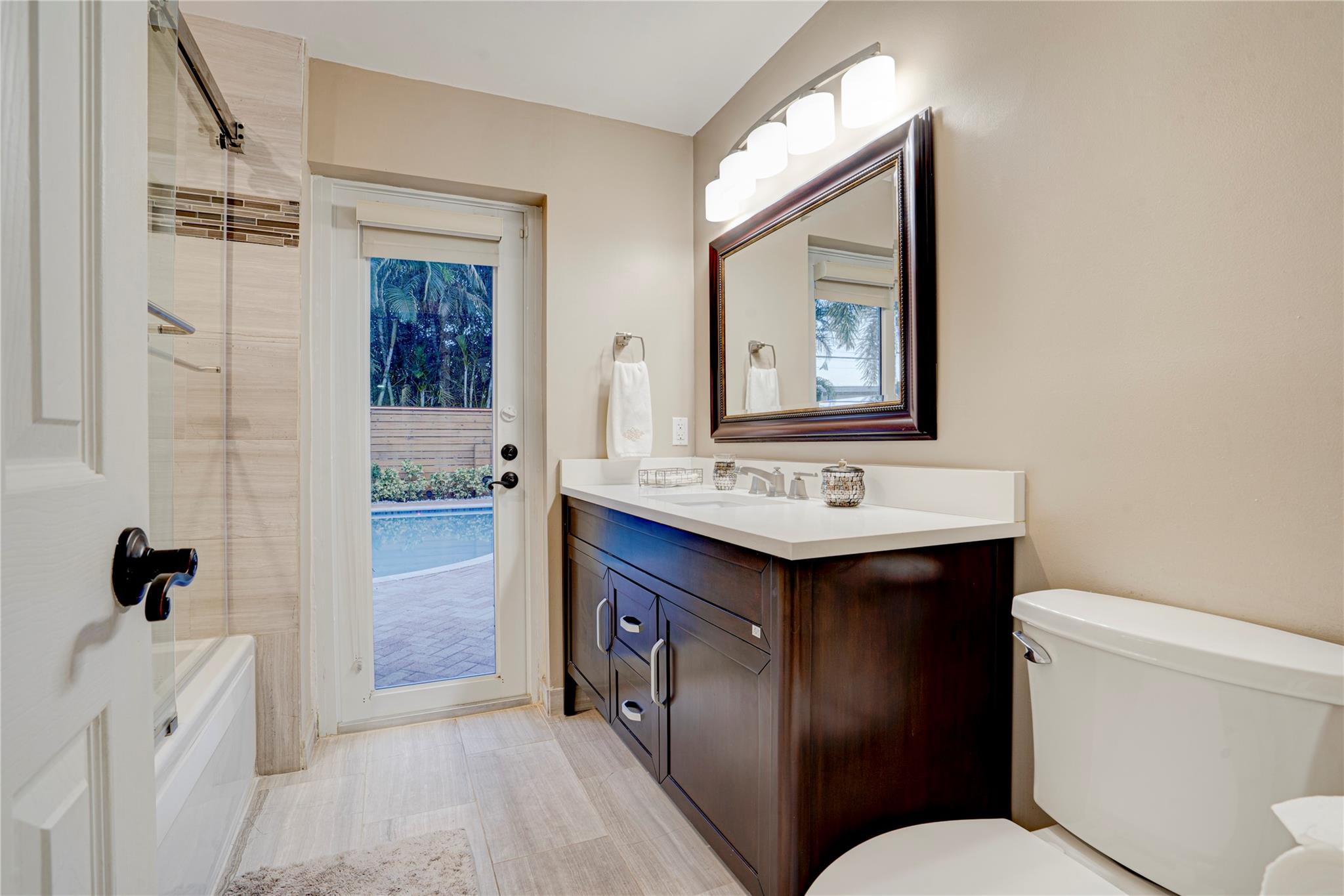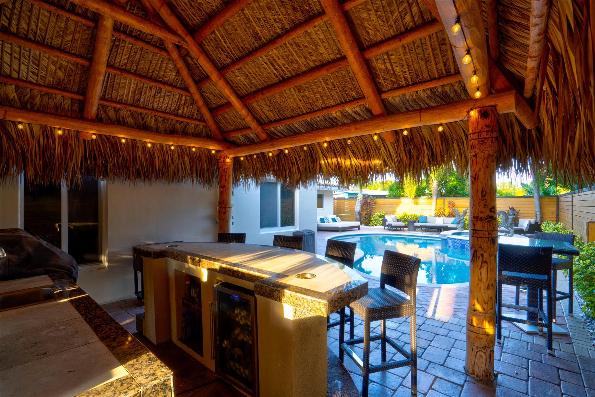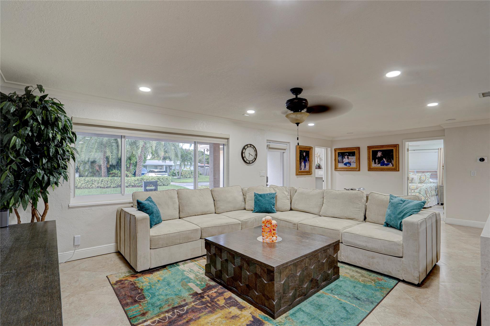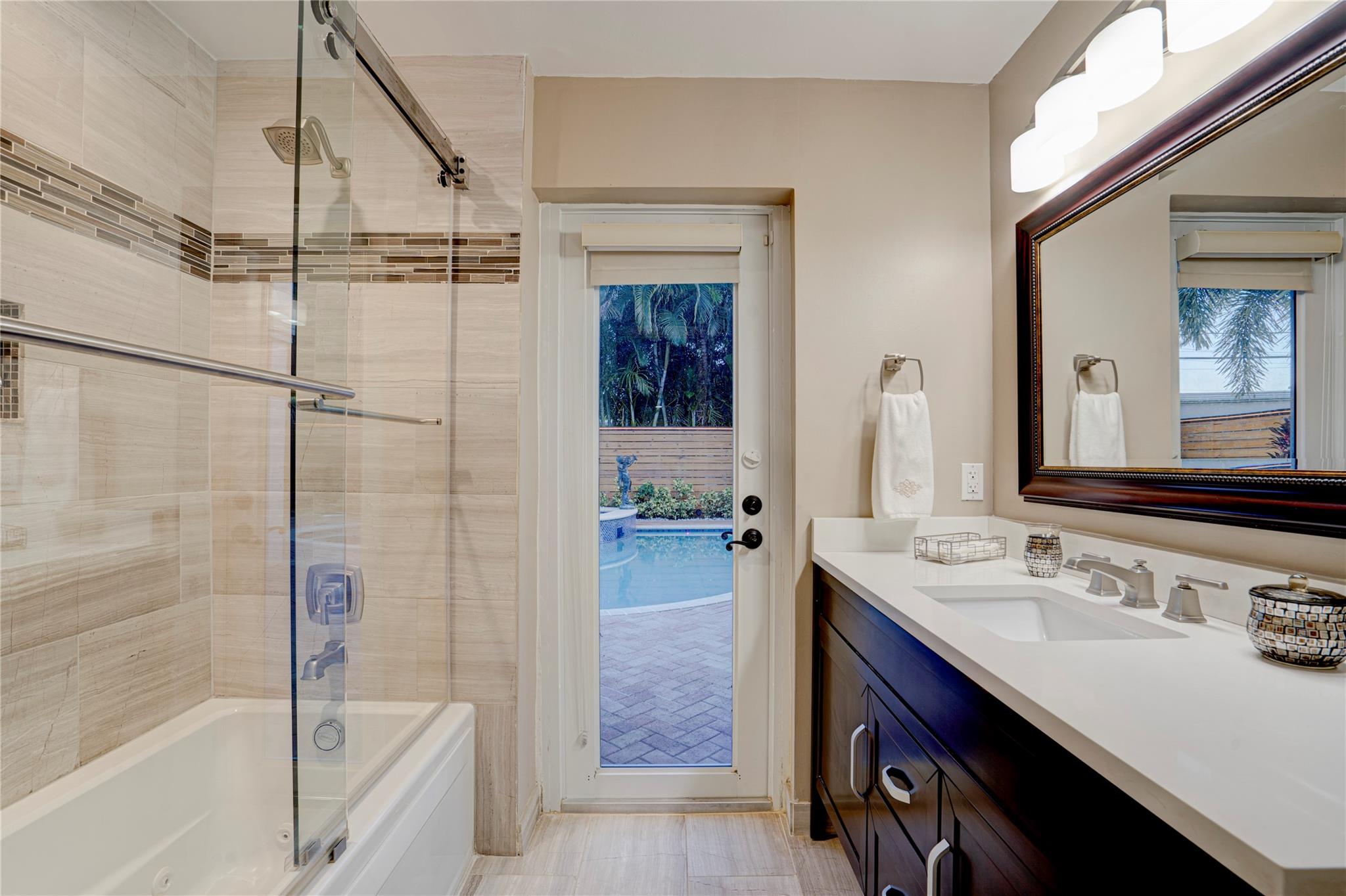 Luxurious, completely renovated, spacious (2,745 sq. ft.), 5/3.5 Single-Family Home in desirable Beachway Estates, Pompano Beach! Walking distance to beach & nearby Pompano Beach Amphitheater. Amenities: high-tech smart, heated pool spa w/ large patio, Tike Hut w/ wet bar for BBQ. High Impact Windows, Doors & Locks throughout entire home. Recessed Lighting, blackout blinds through all bedrooms. Second story master retreat w/ remodeled bath & shower, designed for privacy and sense of retreat; huge breakfast bar w/ granite countertops & stainless-steel appliances; formal dining area; fireplace; 25 kW Generator; tankless water heater on natural gas. New Smart Washer/Dryer, Nest Internet AC, 3-Split AC units. Roof 2-years old. Golf cart garage w/ laundry facilities and plenty of storage.