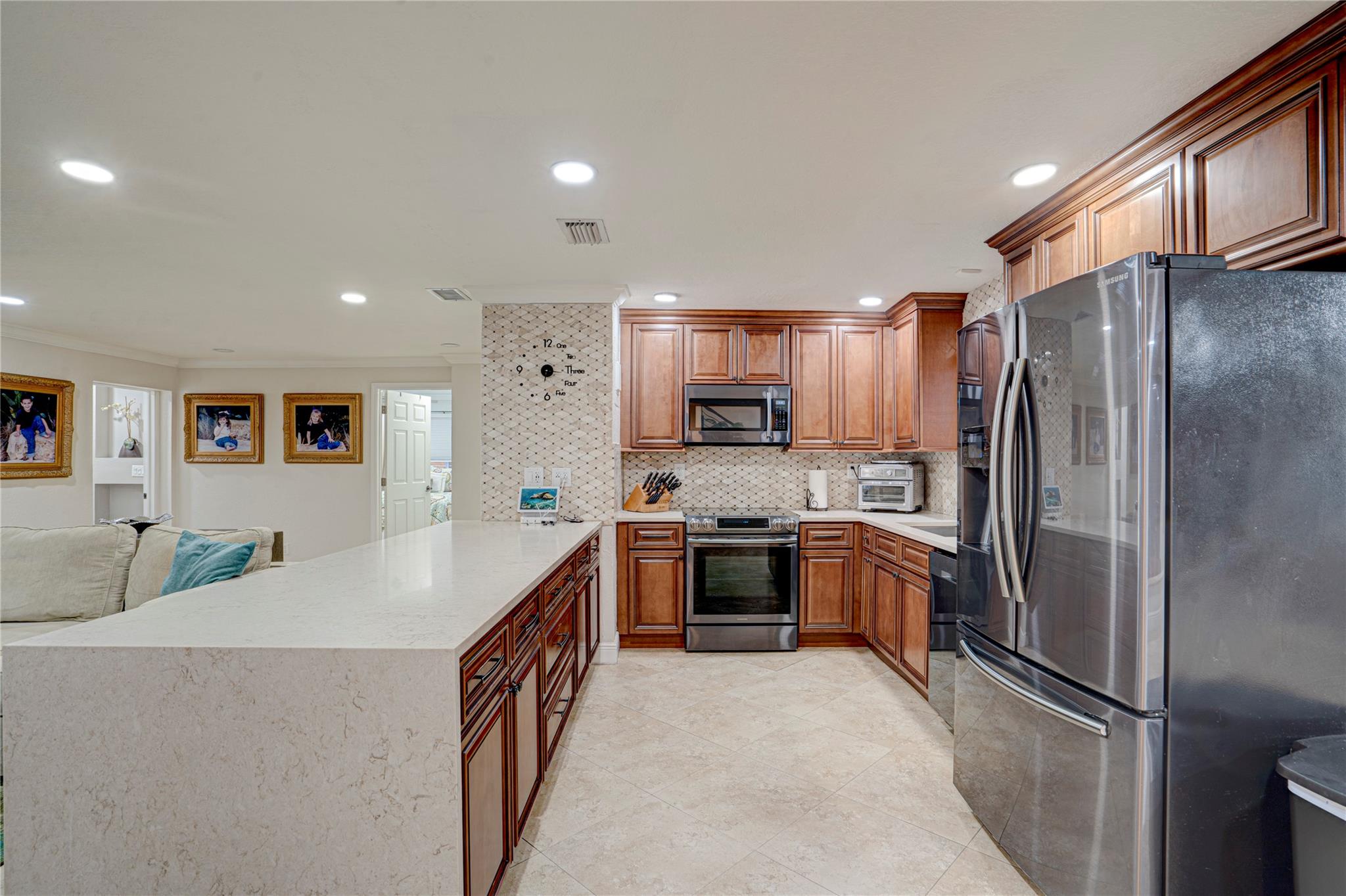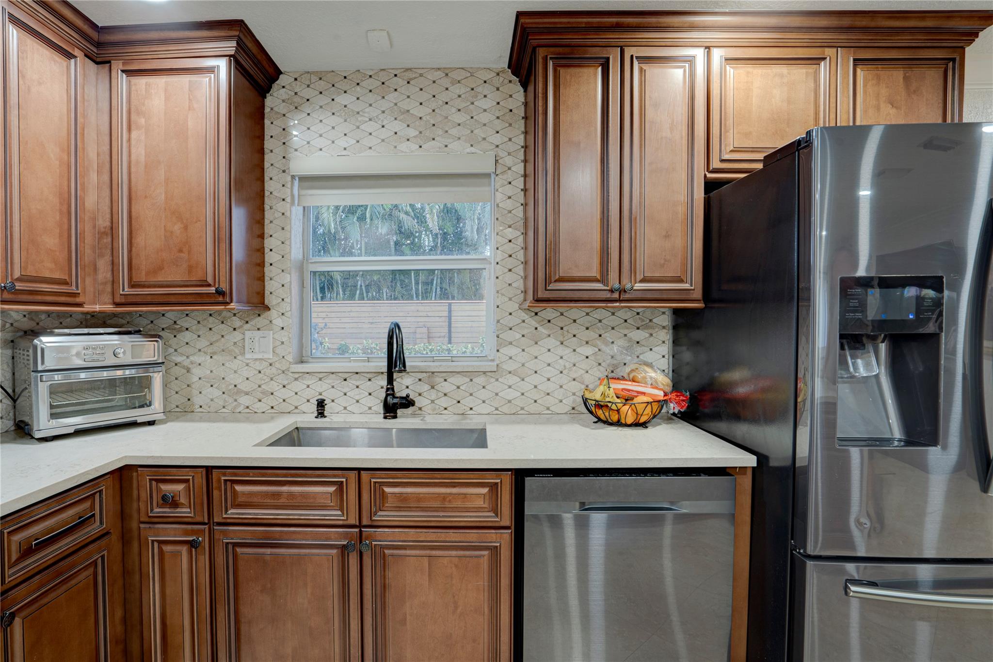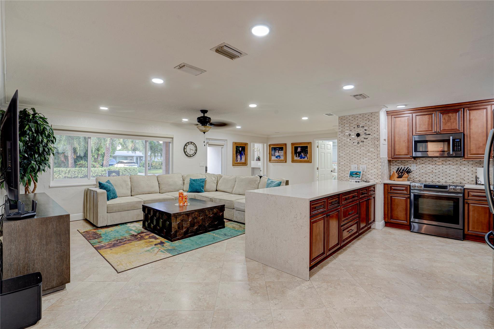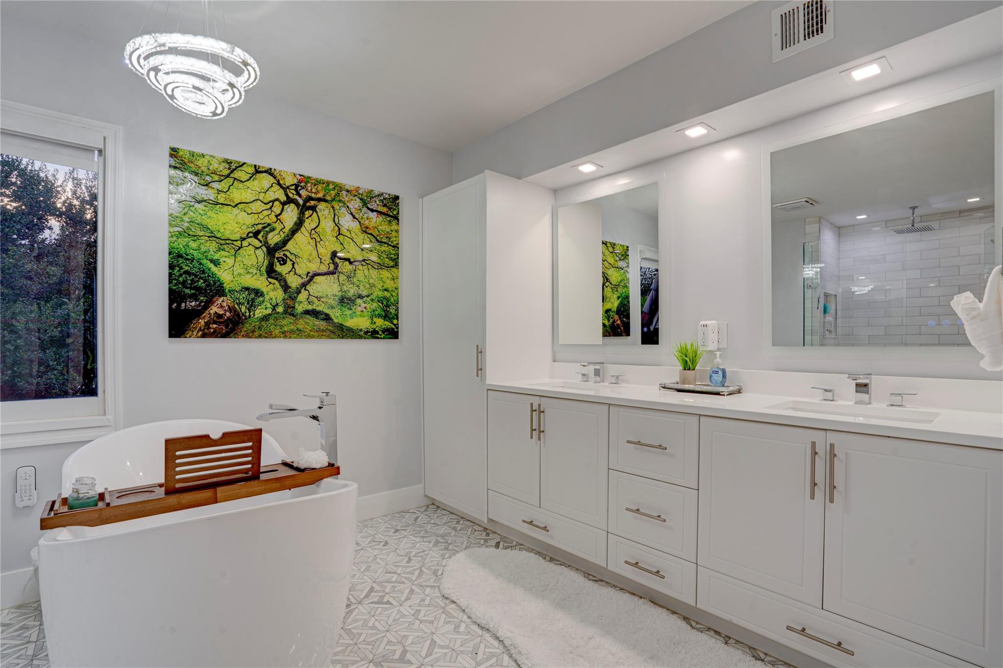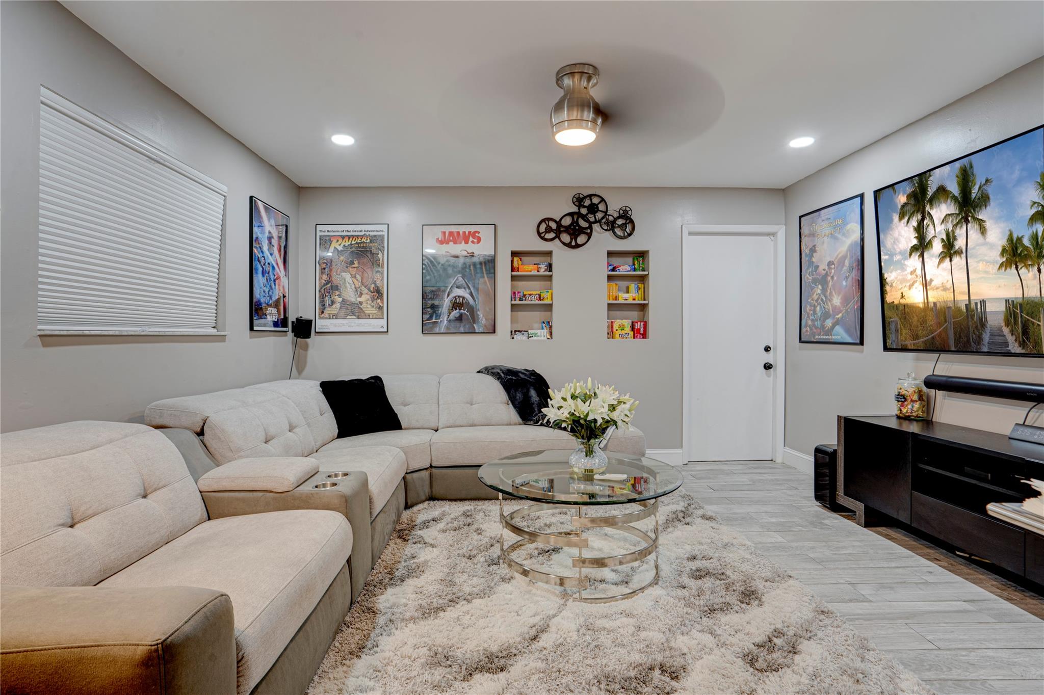 Luxurious, completely renovated, spacious (2,745 sq. ft.), 5/3.5 Single-Family Home in desirable Beachway Estates, Pompano Beach! Walking distance to beach & nearby Pompano Beach Amphitheater. Amenities: high-tech smart, heated pool spa w/ large patio, Tike Hut w/ wet bar for BBQ. High Impact Windows, Doors & Locks throughout entire home. Recessed Lighting, blackout blinds through all bedrooms. Second story master retreat w/ remodeled bath & shower, designed for privacy and sense of retreat; huge breakfast bar w/ granite countertops & stainless-steel appliances; formal dining area; fireplace; 25 kW Generator; tankless water heater on natural gas. New Smart Washer/Dryer, Nest Internet AC, 3-Split AC units. Roof 2-years old. Golf cart garage w/ laundry facilities and plenty of storage.