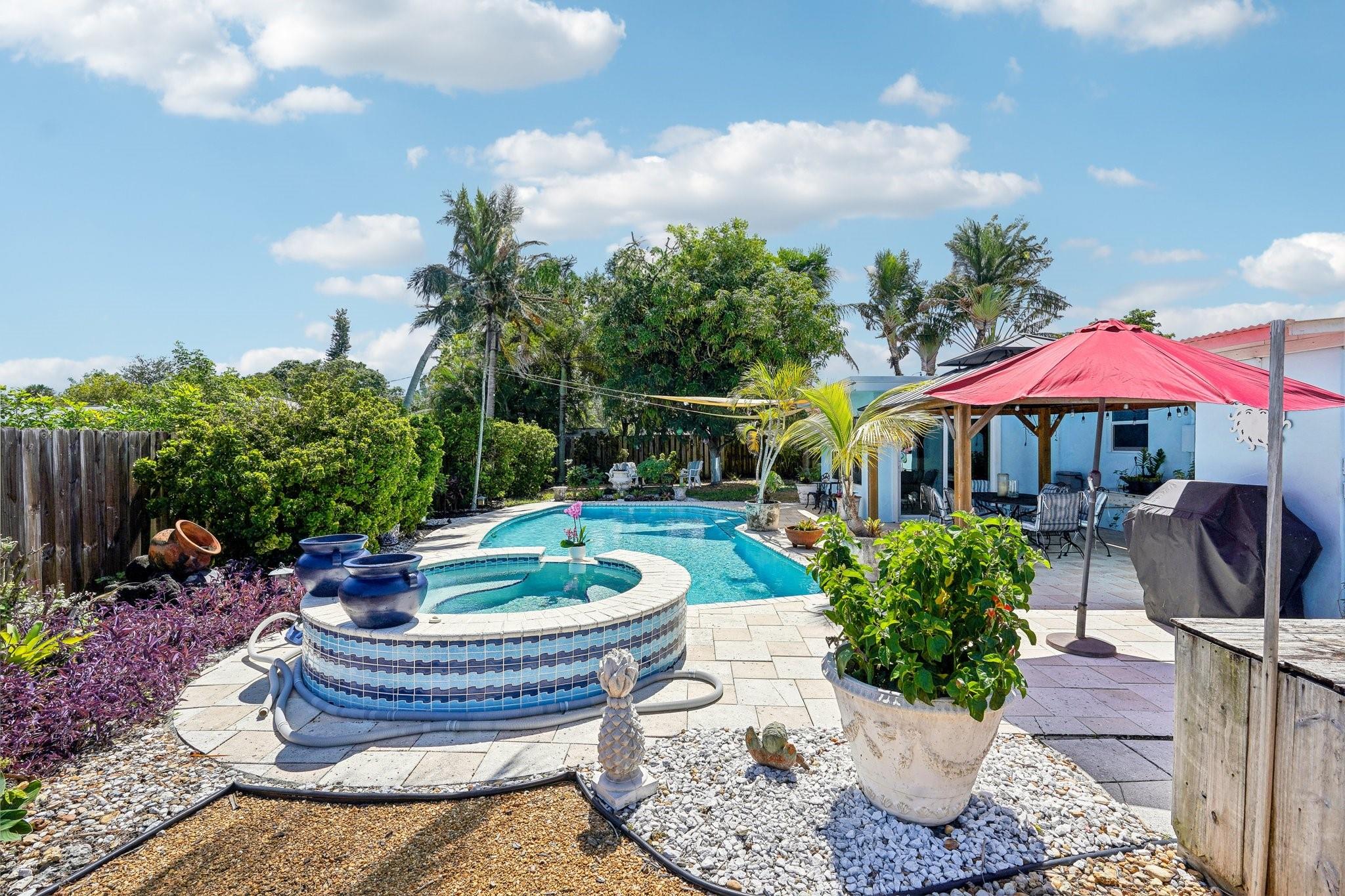 Discover the charm of this 3BR/2BA treasure that offers both comfort and thoughtful design. As you step through the door, you're welcomed by a spacious living area that effortlessly flows toward the backyard heated pool and hot tub, creating the perfect entertainment and relaxation space. The open layout connects seamlessly to your private outdoor oasis. Recent upgrades, including a new roof and hurricane-impact windows and doors (2020), provide peace of mind and savings on home insurance. The kitchen and baths, updated in 2017, offer modern style and functionality. Conveniently located near shops, restaurants, and beaches, this home captures the essence of South Florida living.