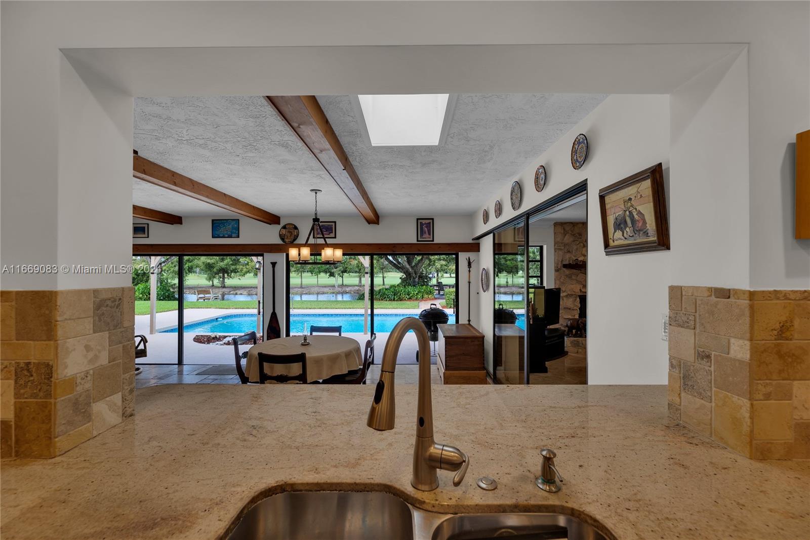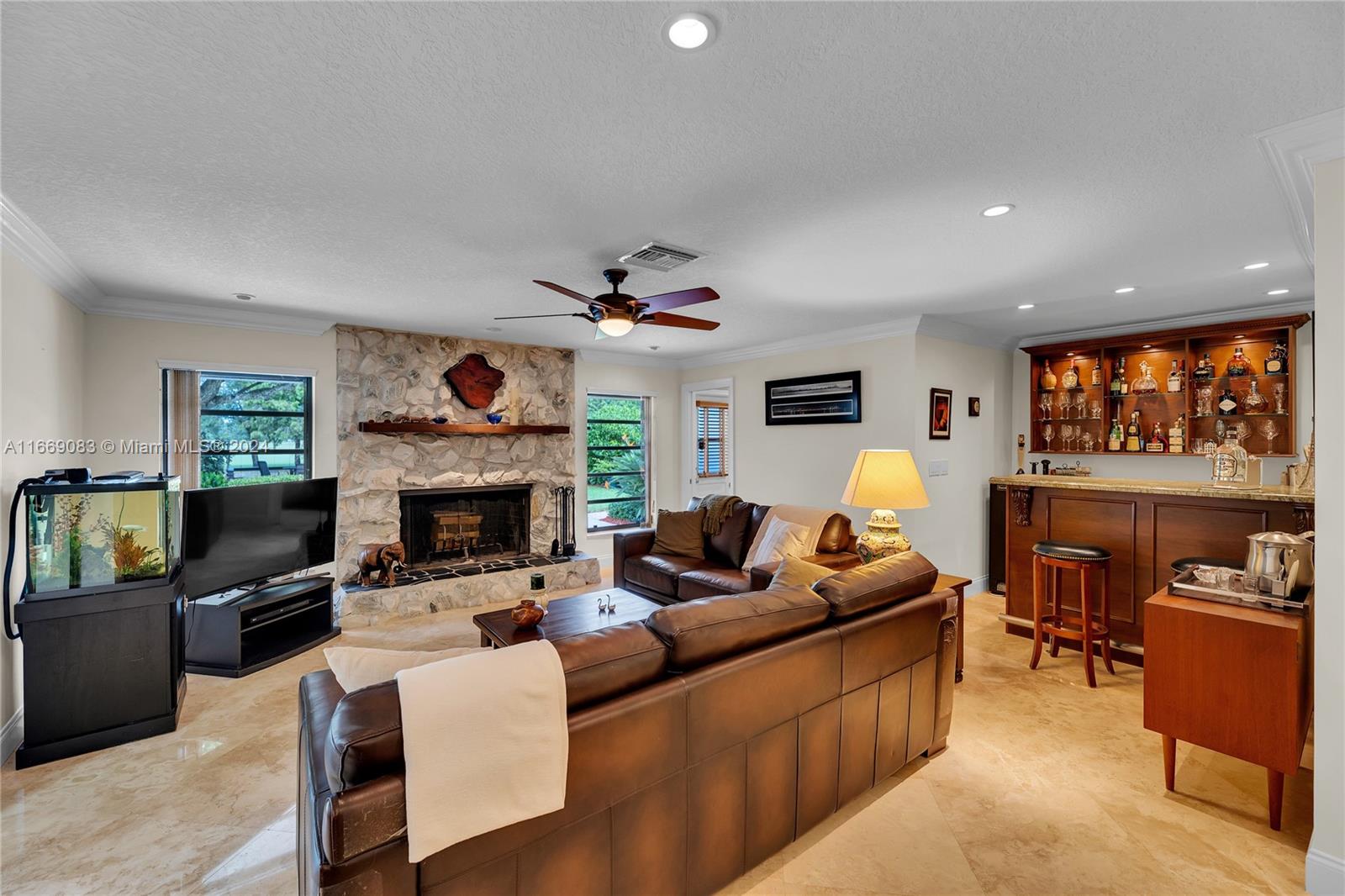 Experience luxury living in Lago Mar Colony, Plantation's hidden gem community! This beautifully maintained four-bedroom, three-bath pool home offers a breathtaking golf course and water view from your backyard, perfect for unwinding and entertaining guests. This home offers a newer roof (2020), two A/C (Trane and Carrier), pecan wood floors in bedrooms, a newly resurfaced pool, and new equipment. Stainless Steel Kitchen Aide appliances. Home security. New hurricane-rated garage door. 24/7 gated-security. Home theatre, working fireplace, bar area, and spacious Florida room that overlooks one of the best views in the community.Centrally located and just minutes to all major highways, FLL airport, Beaches, and downtown Las Olas. Walking distance to American Heritage HS