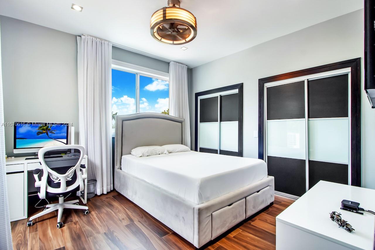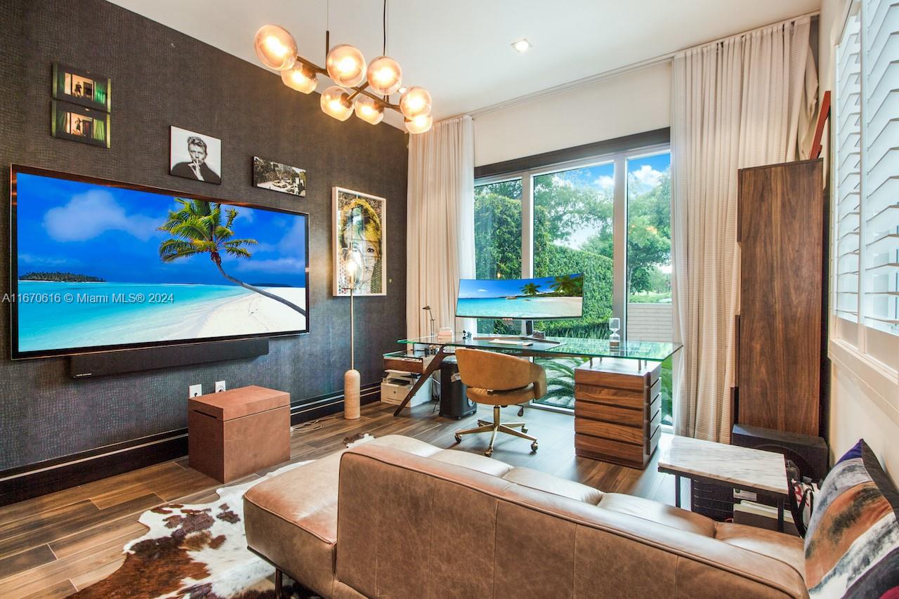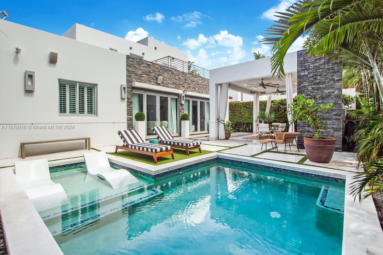 Contemporary home in Miami Beach surrounded by lush tropical landscape and situated in front of the Golf Club. The home was renovated into a masterpiece in 2016. This 2-story home is gated with an elegant entry and offers an expansive open modern floor plan perfect for entertainment. The energy efficient smart home features 4 bedrooms, a bonus room that can be converted into a bedroom, and 4.5 bathrooms. Master suite is conveniently located downstairs. Open family-friendly kitchen leads into TV family lounge and dining room, featuring Miele appliances and quartz waterfall counters. Large outdoor space with private heated pool, summer kitchen, and cabana. Enjoy the Miami Beach lifestyle in this family-friendly neighborhood within walking distance to Lincoln Road and other top attractions!