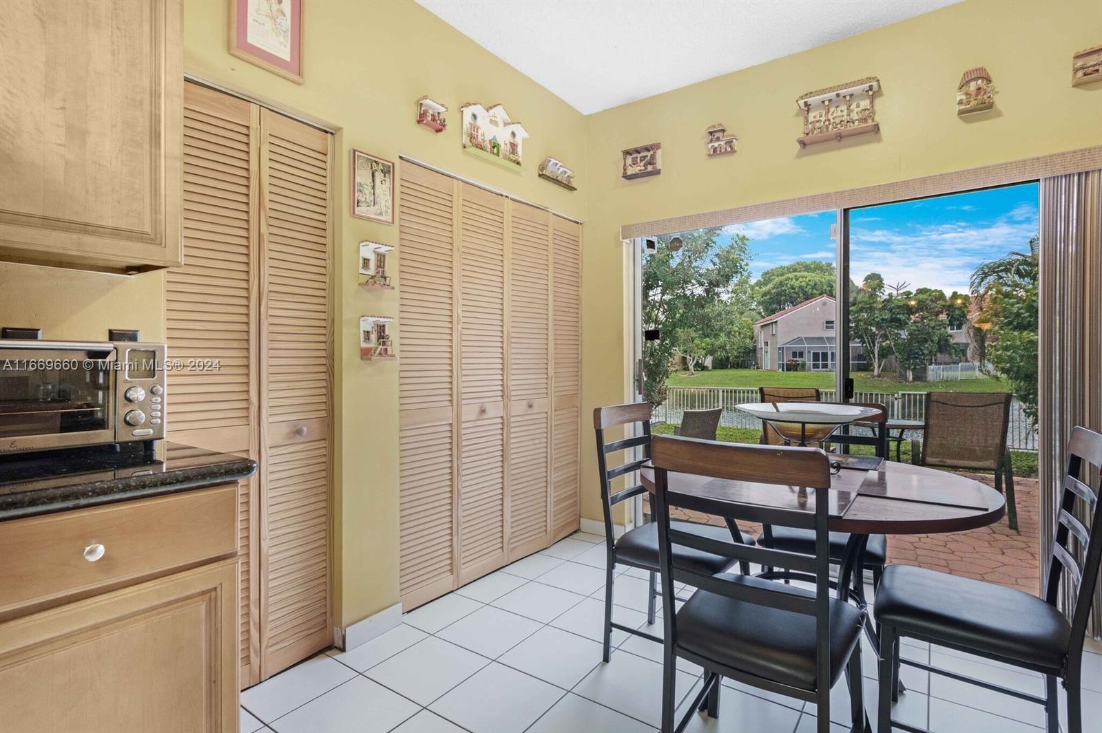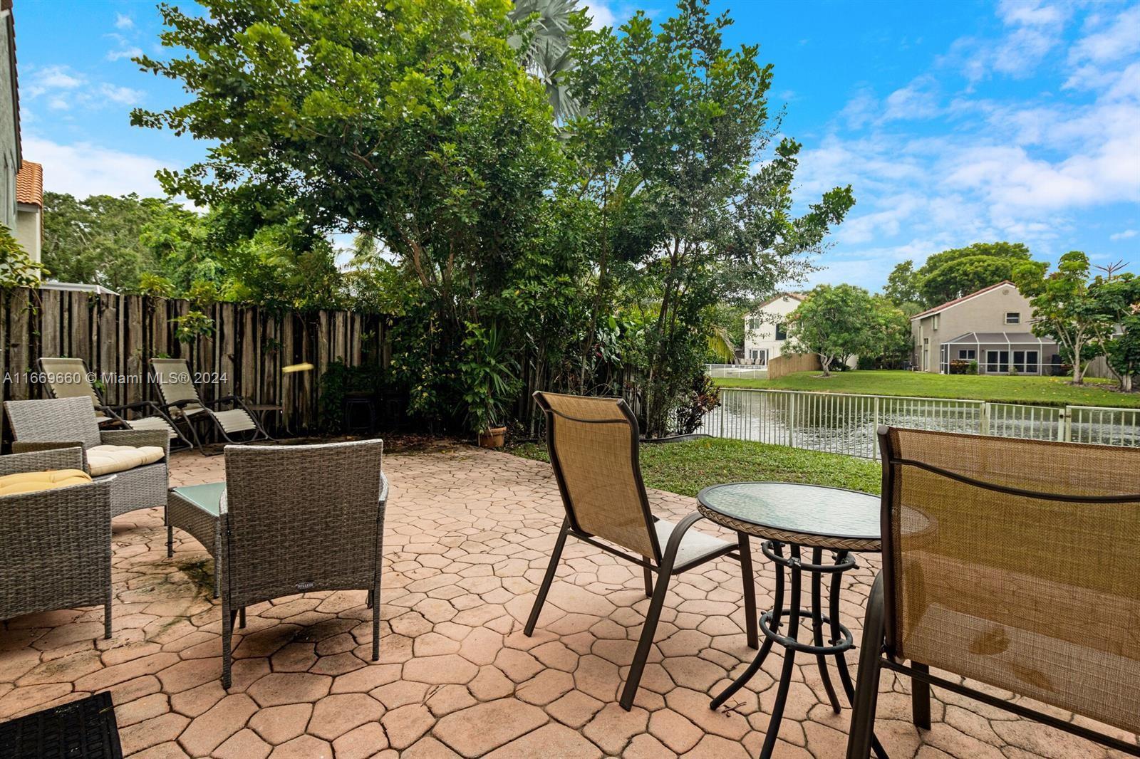 Great Deal. Located in Highly desired Bridgewater community in Plantation. Tree lined streets with mature landscaping in charming neighborhood. On the lake with tranquil waterfront views from living room and kitcehn. Many updates to home including updated kitchen with granite countertops and newer stainless steel appliances. Downstairs has living, dining and den plus eat in kitchen. Newer accordion shutters on windows/doors and roof is 3 years young. Low Insurance. Large master bedroom and bathroom with two ample closets. Tropical landscaping. Large paved patio. Updated master bathroom includes two sink vanity, tile and shower. Quick 5 min walk to the beautiful Deicke Park with playground, basketball, tennis, pickleball, sand volleyball, walking trails & open grass fields. Low HOA.