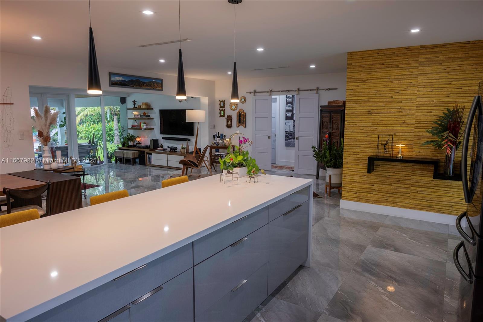 Price cut!!! Fully renovated in 2020, one story masterpiece in sought Keystone Point. Feel the open space living room like a private resort. This impeccable house offers a seamless indoor-outdoor living experience. New roof, new plumbing, new AC, new floors, new kitchen, new impact windows. Featuring 4 bedrooms, 3 full bathrooms, full of light. Enjoy a sprawling professional designed pool & jacuzzi built in 2022 (with heater), surrounded by lush landscaping exclusively designed by a professional designer. 11,250 sq ft lot in Keystone Point that holds a beautiful garden with tropical plants, new shed with AC. A jewel. 5 minutes to the Beach. Ample parking space (up to 12 spaces). Reverse osmosis alkaline water system. Alarm system, Gas range, Hunter Douglas motorized blinds. Smart home.