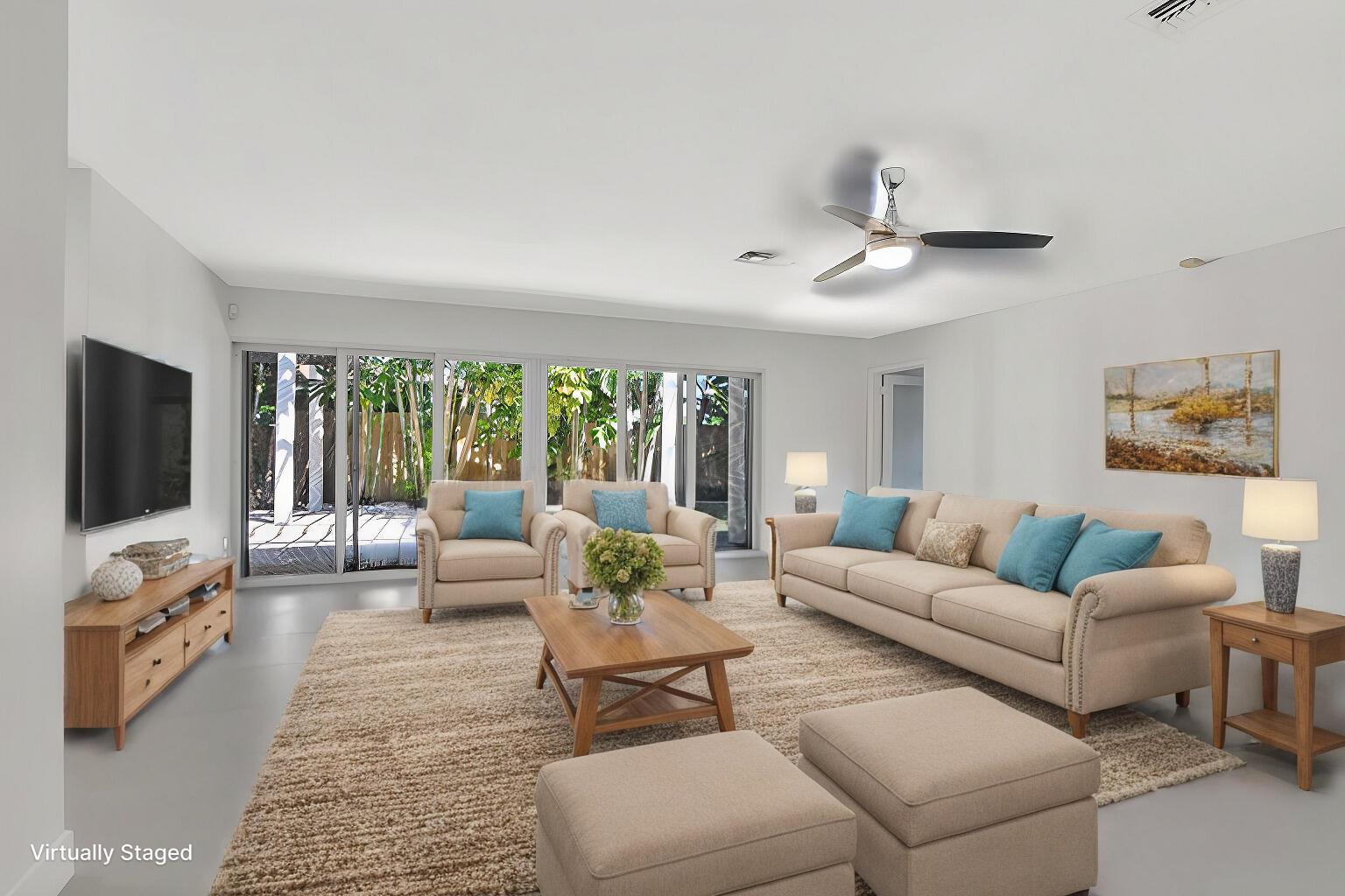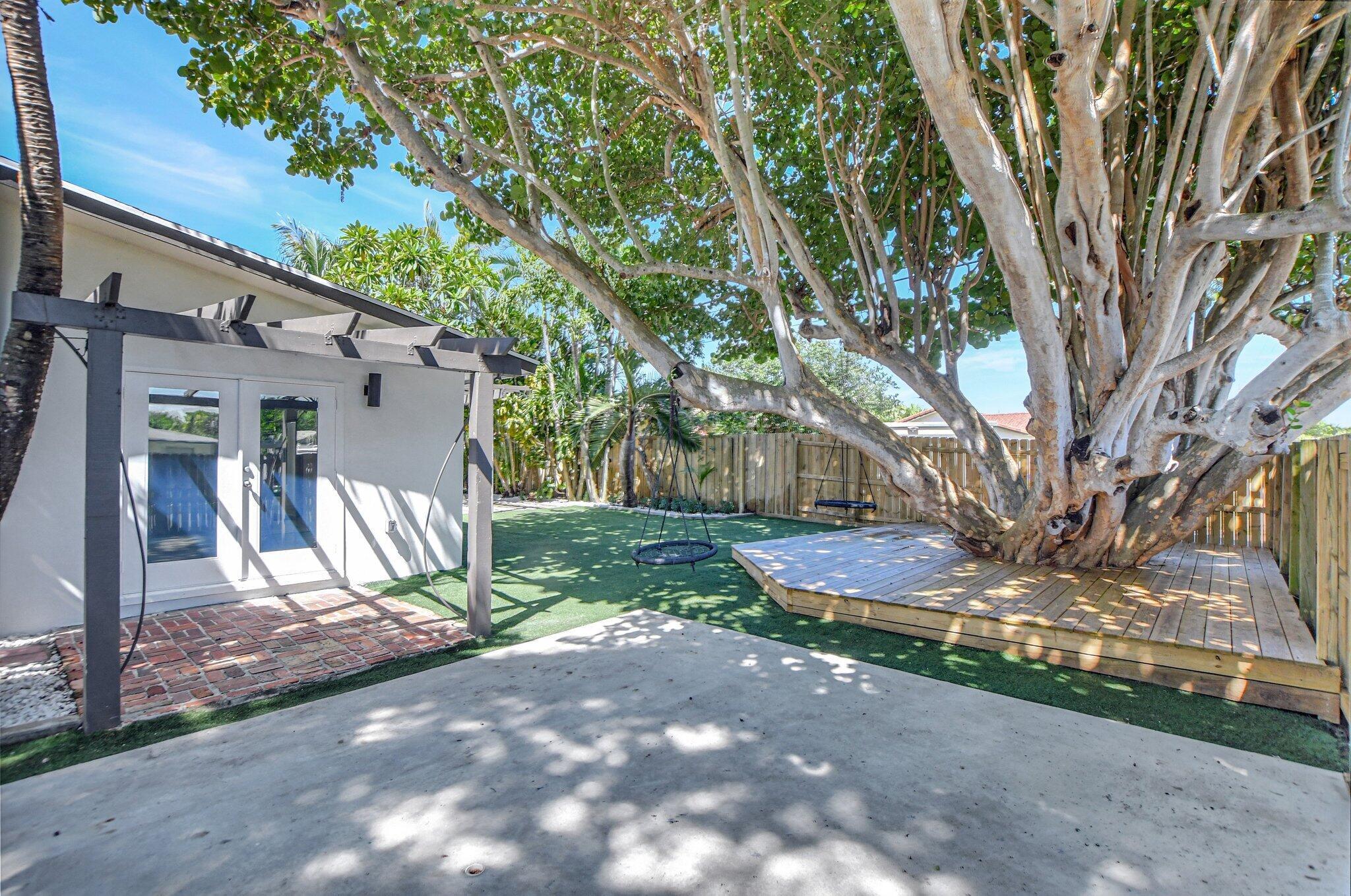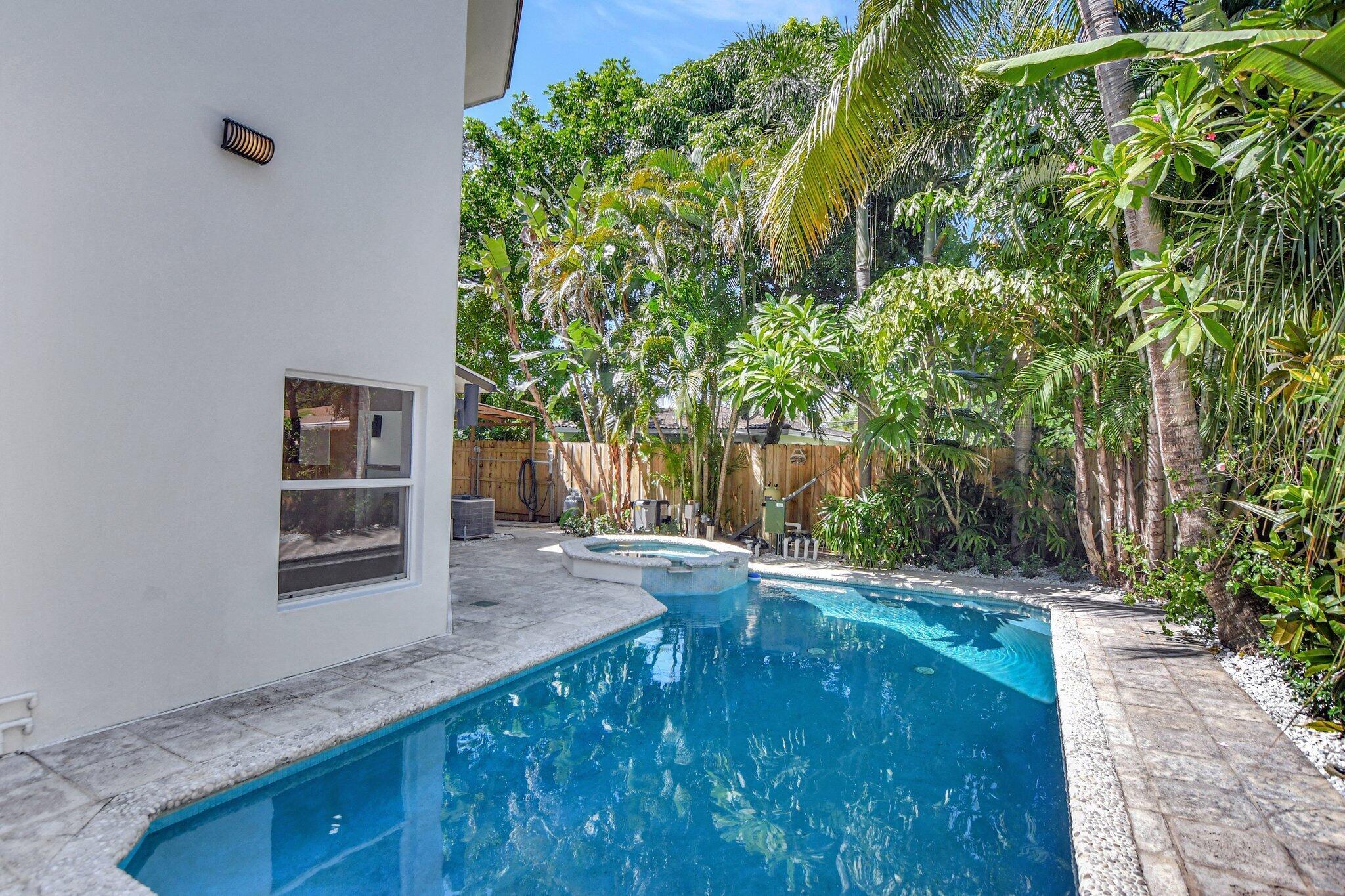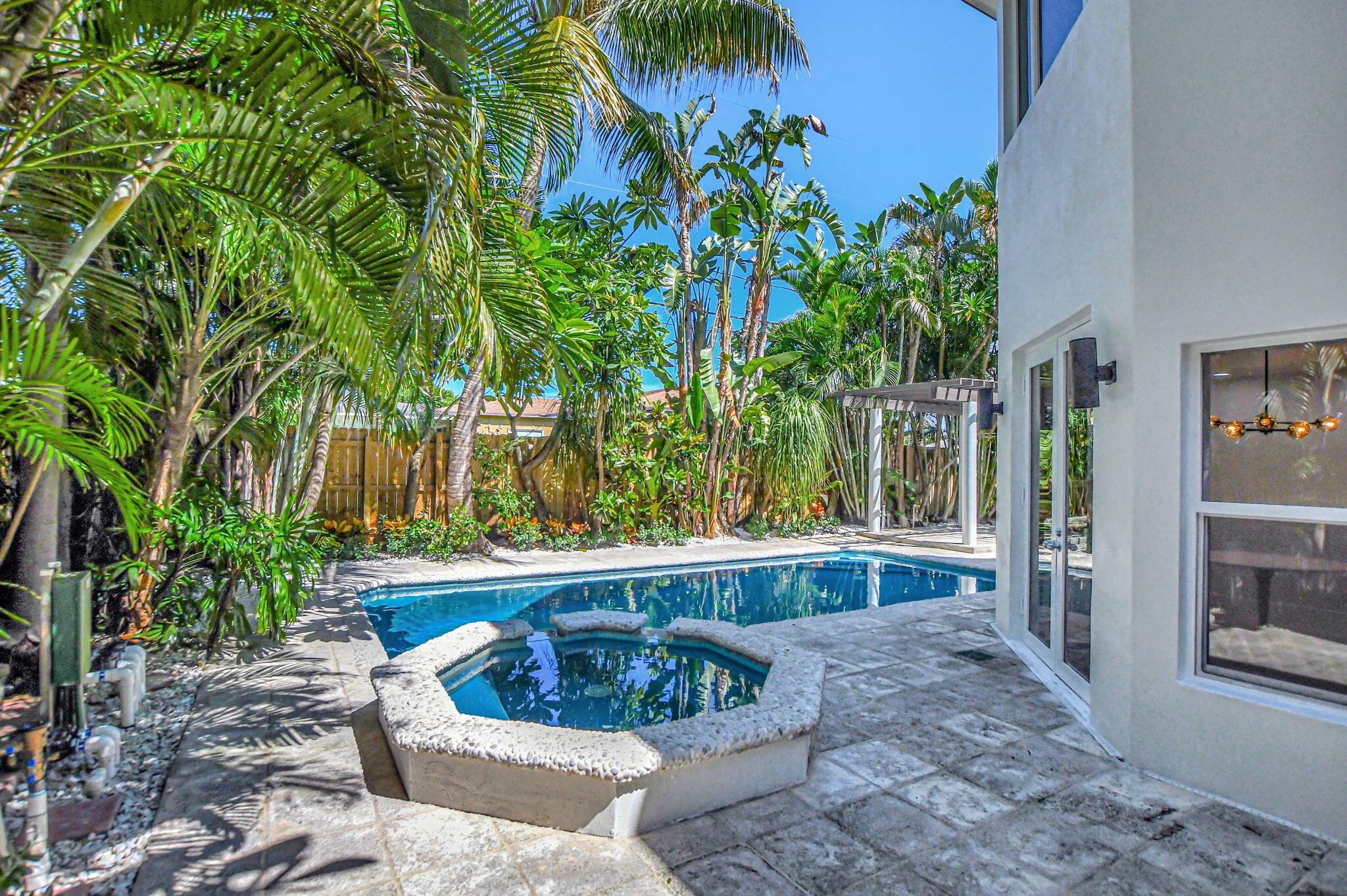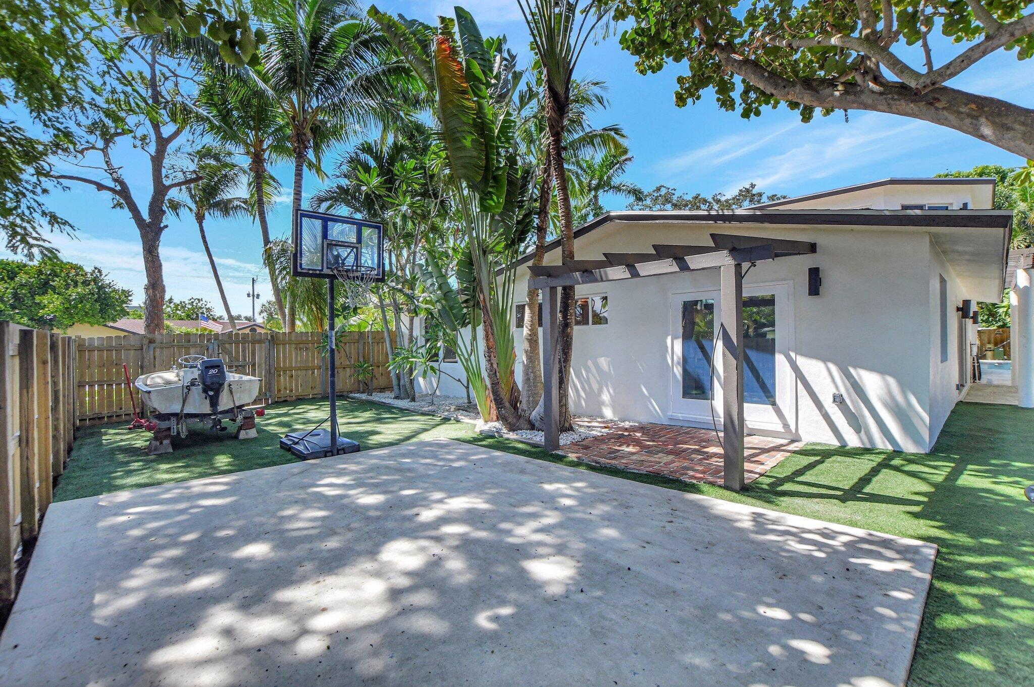 East Boca Paradise! This stunning updated 3BR, 3BA, two-story pool home with a 1-car garage sits on a generous corner lot in a desirable school zone. The beautifully landscaped, fully fenced backyard offers complete privacy and is perfect for entertaining with a resort-style pool, jacuzzi, astroturf, and space for an outdoor kitchen/BBQ area. A deck surrounds an old-growth Sea Grape tree, while a basketball/tetherball slab and space for boat/RV storage add versatility. Inside, the first floor features a cozy family room with a gas fireplace, a spacious living room, and an en-suite bedroom plus an additional guest bedroom with a separate bath. The chef's kitchen boasts Kvanum cabinets, quartz countertops, a brand-new fridge and dishwasher, and a large gas stove.