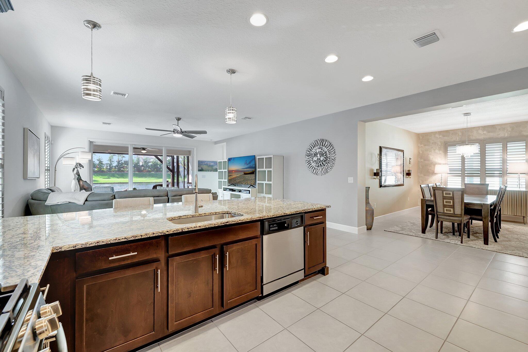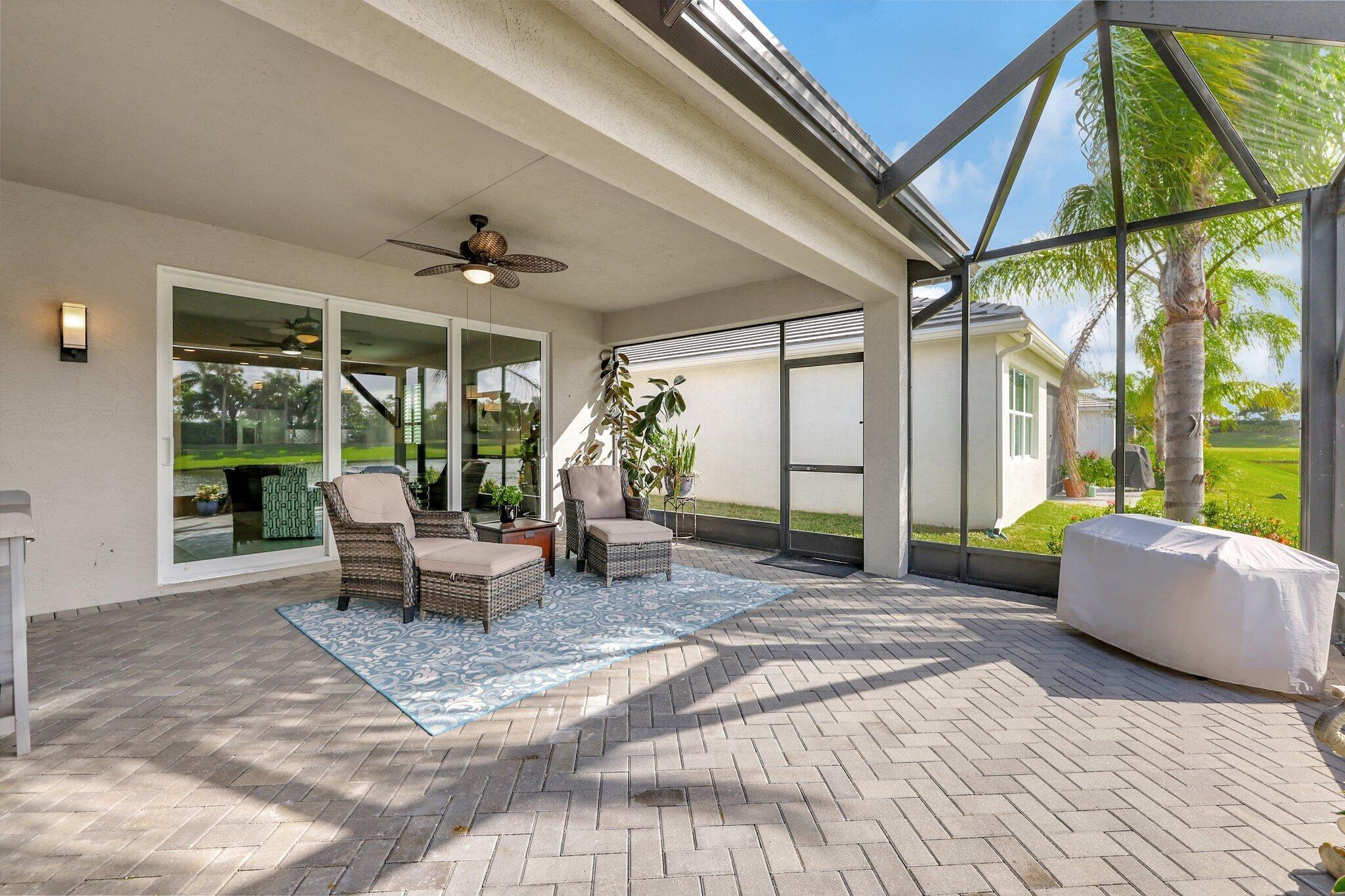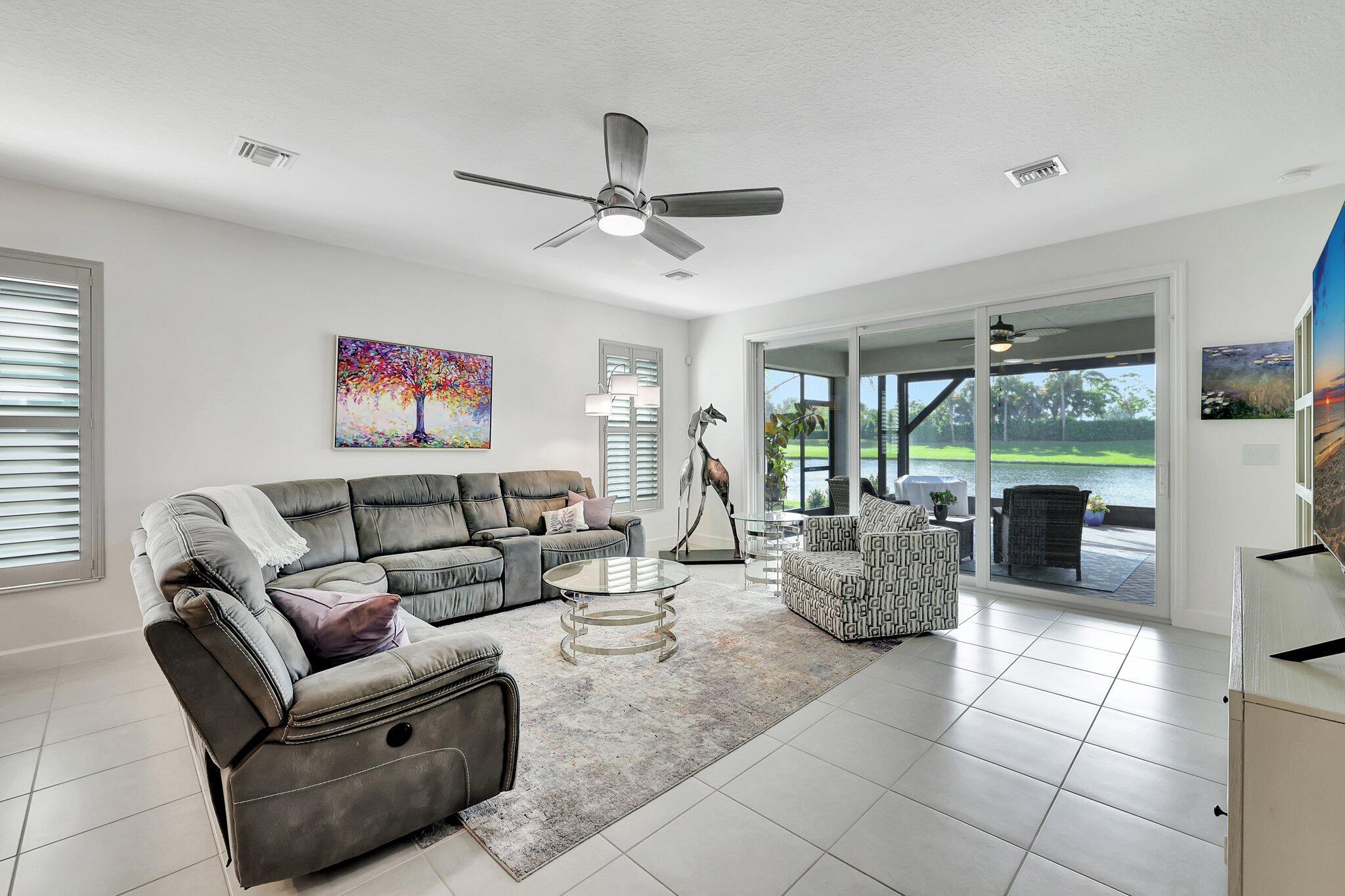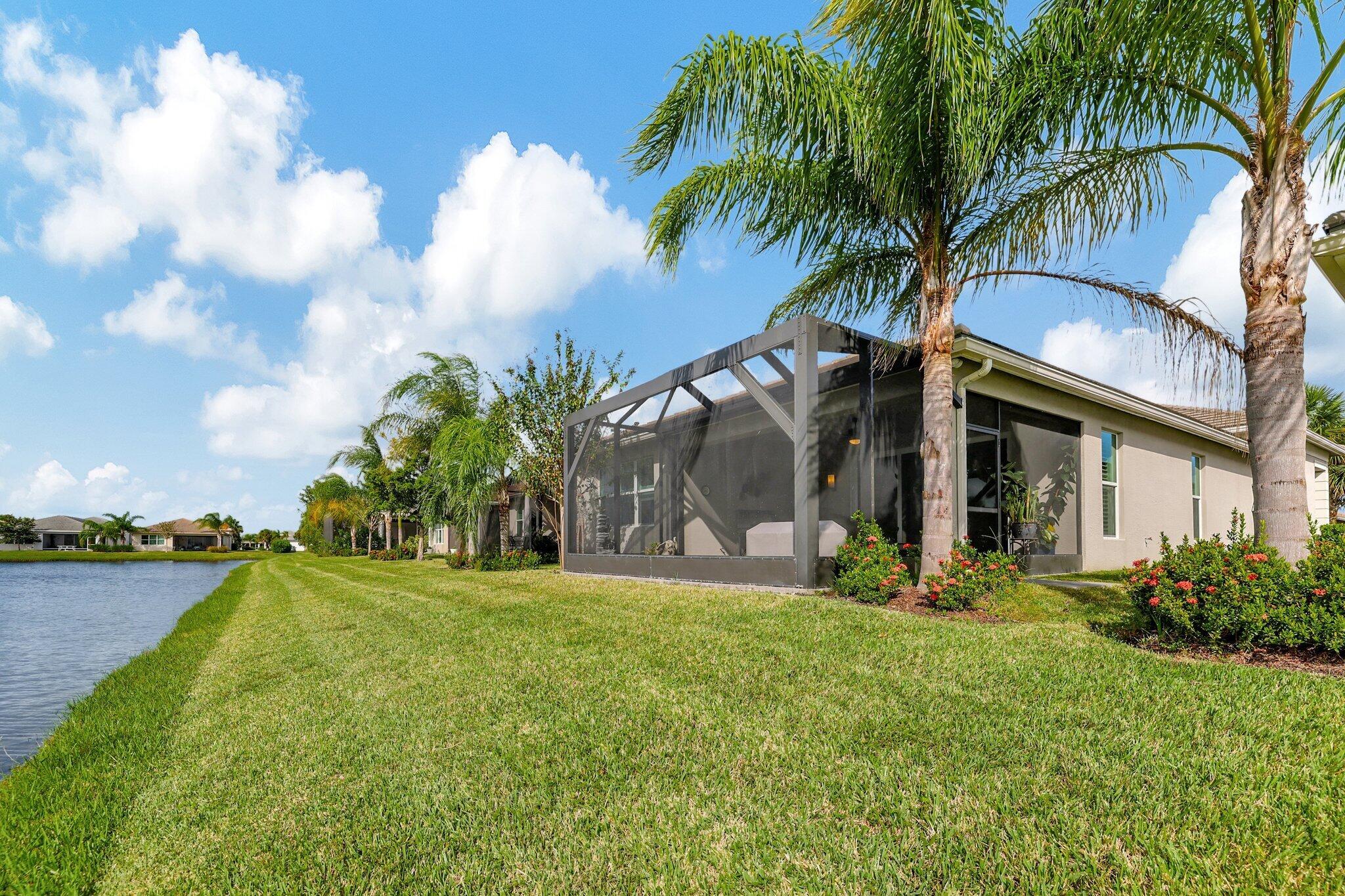 Enjoy the magnificent lakefront views in this Tribeca model home located in Valencia Cay at Riverland. This highly sought after floor plan offers 3 bedrooms, 2.1 baths, PLUS a flex room. This home features an open floor plan, volume ceilings along with a separate dining room and great room area that opens up to the open concept kitchen. The spacious primary suite has stunning views of the water along with 2 walk-in closets, dual vanities and walk-in shower with decorative tile. Entertain your guests on the expanded screened patio. This home is in an unbeatable location with a truly irreplaceable lot.Residents enjoy a 34,000sqft club house with a resort style pool, arts and cultural center,Sports Center and more.