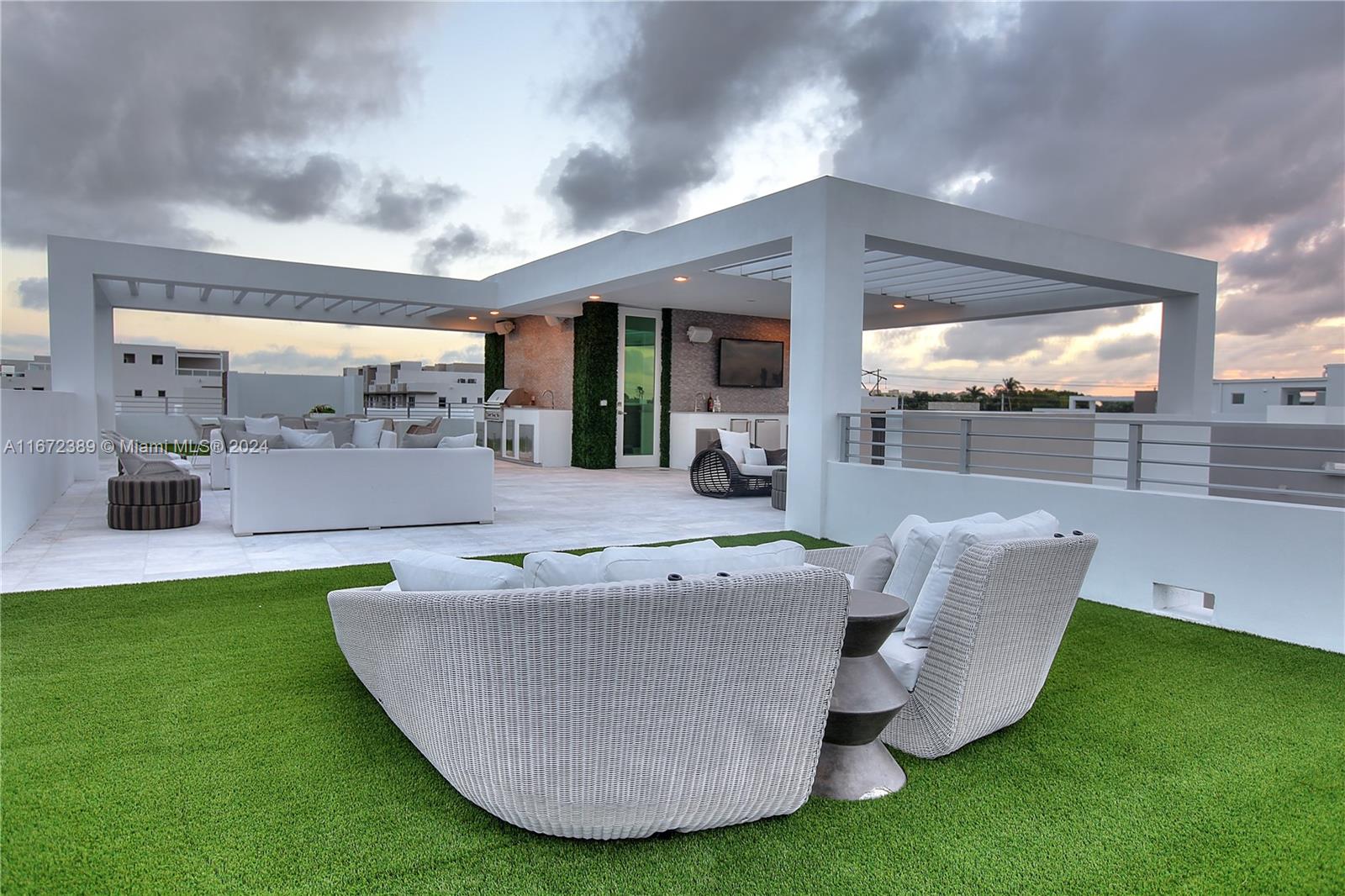 Luxury living at its finest in The Mansions, Doral! This exquisite 5 Beds, 5 1/2 Baths turn-key home is located in one of Doral’s most prestigious gated communities. Designed by Casa Q, this former-model home offers modern luxury throughout with elegant interiors, top-brand furnishings, and appliances, and a gourmet kitchen. The home is an entertainer delight featuring an oversized rooftop, with turf, a fully equipped summer kitchen, a jacuzzi, and breathtaking panoramic views. The backyard is equally impressive, with lake views, a private pool, and a second summer kitchen for outdoor gatherings. Enjoy the luxurious community amenities including a clubhouse, fully equipped gym, playground, party area, sauna, and spa.—Don’t miss the chance to make this spectacular turn-key home yours!