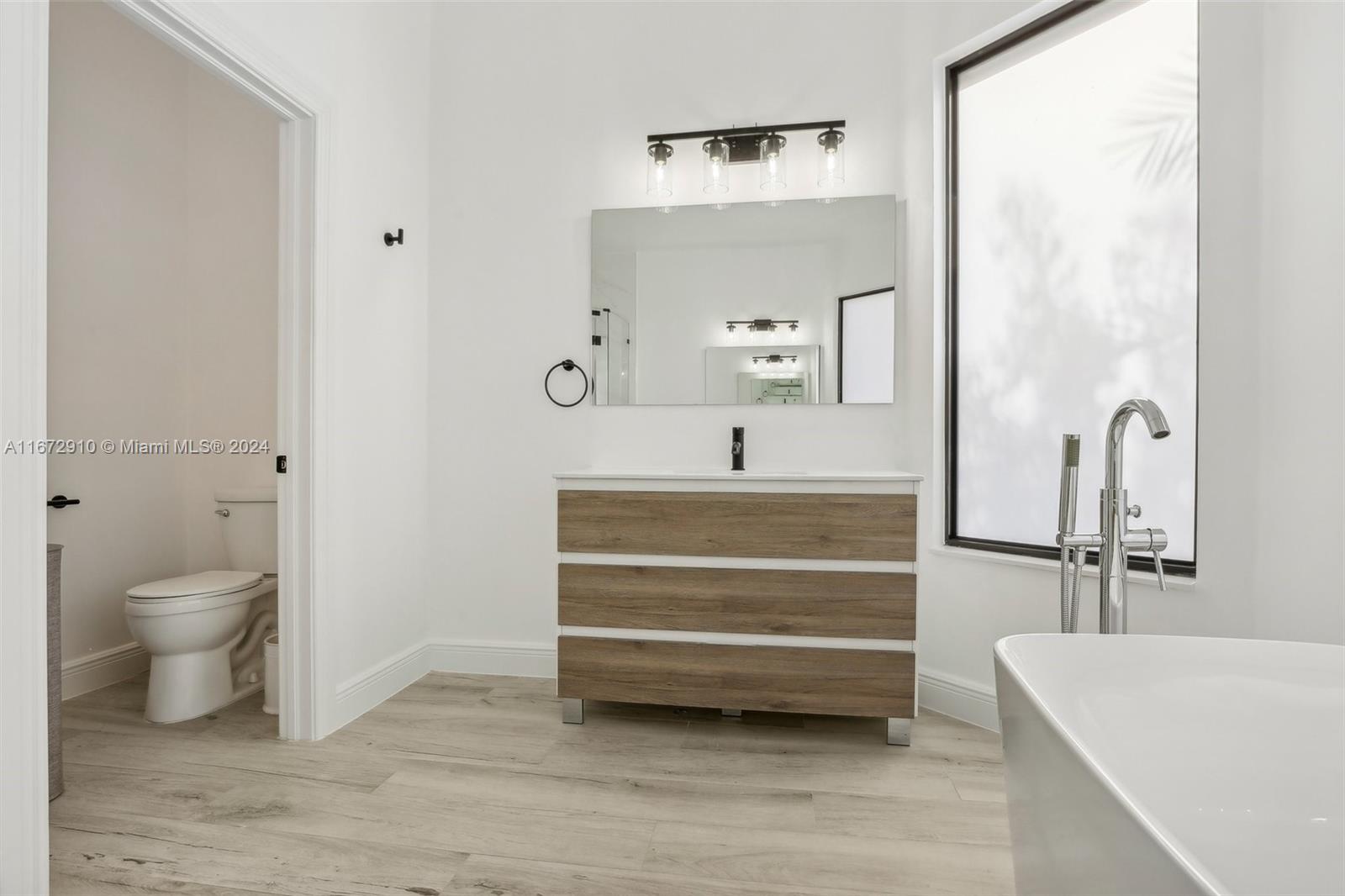 Breathtaking one-story remodeled home with new heated pool and jacuzzi in Sunset Lakes! The open floor plan is perfect for entertaining. Enjoy a bright kitchen with a 10-foot island, quartz counters, farm sink, wine refrigerator, and counter seating for eight! Impact windows/doors, both A/C units and tankless water heater installed in 2022. The primary suite offers custom his and hers closets, dual sinks, freestanding bathtub and sliding doors to the outdoor oasis. Oversized windows and sliding doors provide natural light and pool views throughout. Enjoy plenty of storage in the large laundry room and walk-in closets in two additional bedrooms. This resort-style community offers tennis, basketball, gym, playgrounds, and more. Text/Call Agent for gate code access.