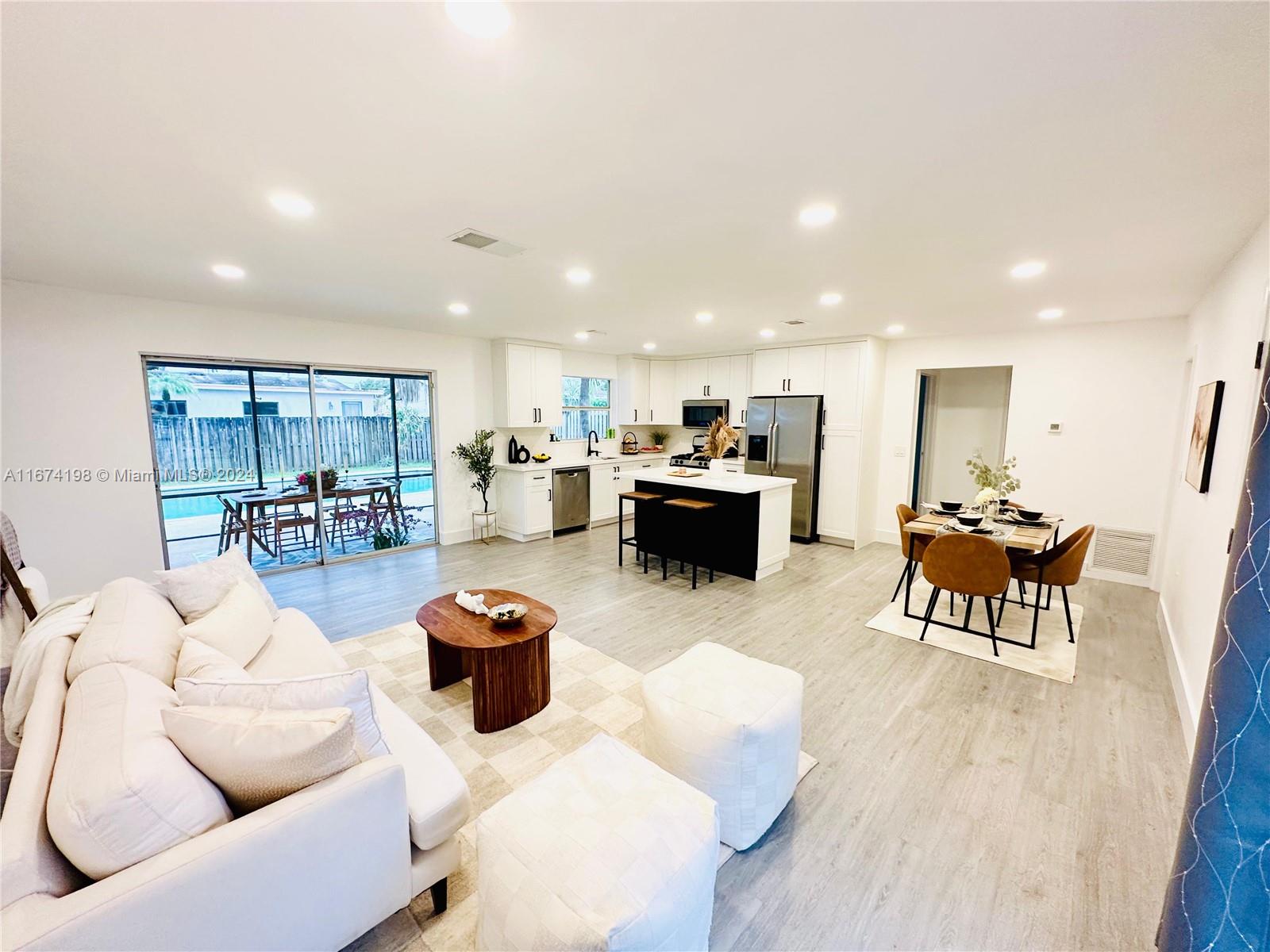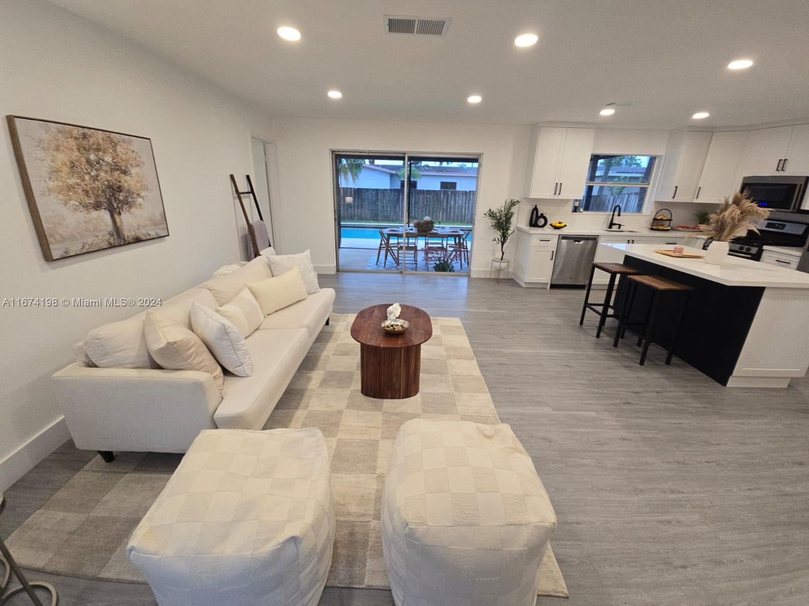 Amazing 2/2 single family home with pool and garage in perfect move-in condition ready for your family! Fully renovated. Modern kitchen with new shaker cabinets, modern island and stainless-steel appliances. Open layout, Luxury Waterproof Vinyl flooring. New Roof (2024). Covered patio, great backyard for entertainment. Desirable family-oriented neighborhood in West Sunrise with NO HOA. Conveniently located near the Sawgrass Expressway, Sawgrass Mills Mall and restaurants.