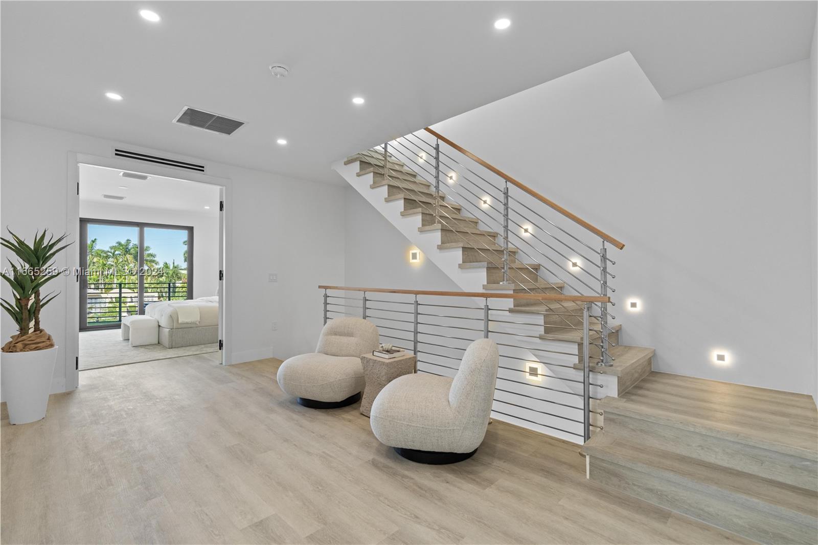 Discover modern elegance in Coral Ridge. This home features 4 bedrooms, 4 bathrooms, high ceilings, and an open concept living area that flows seamlessly into the terrace, thanks to multitrack sliding doors that create an extended indoor-outdoor space. Enjoy porcelain flooring, quartz countertops, custom solid wood doors, and a kitchen with state-of-the-art appliances. Designed with entertaining in mind, the home has an oversized rooftop terrace equipped with a summer kitchen and provisions for a jacuzzi installation. Additional amenities include a private pool, a security system, and ample parking with a double garage and four-car driveway. Panoramic views, along with relaxing balcony and deck areas for unwinding and enjoying the serene surroundings.