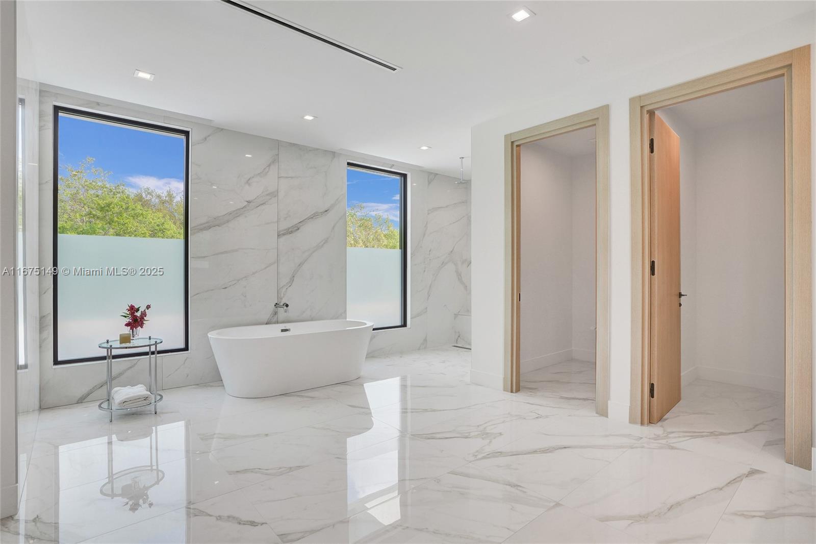 Contruction Just Finished! Stunning modern home in prestigious Pinecrest, on a lushly landscaped 35,370 sq ft lot. This architectural gem features floor-to-ceiling windows, seamlessly integrating interior and exterior spaces. With a total 10,356 sq ft of luxurious living, it includes 7 bedrooms, 8.5 baths, 3-car garage, gym, den. A breathtaking entry with a floating staircase over a sleek interior garden. The double-height great room with luxurious wine cellar and bar overlooks a tranquil water feature, leading to an outdoor entertaining area. The open gourmet kitchen, equipped with top-of-the-line appliances, flows into an expansive family room. A spacious covered terrace with a fully equipped outdoor kitchen overlooking the pool, spa, and lush backyard make it perfect for entertaining.