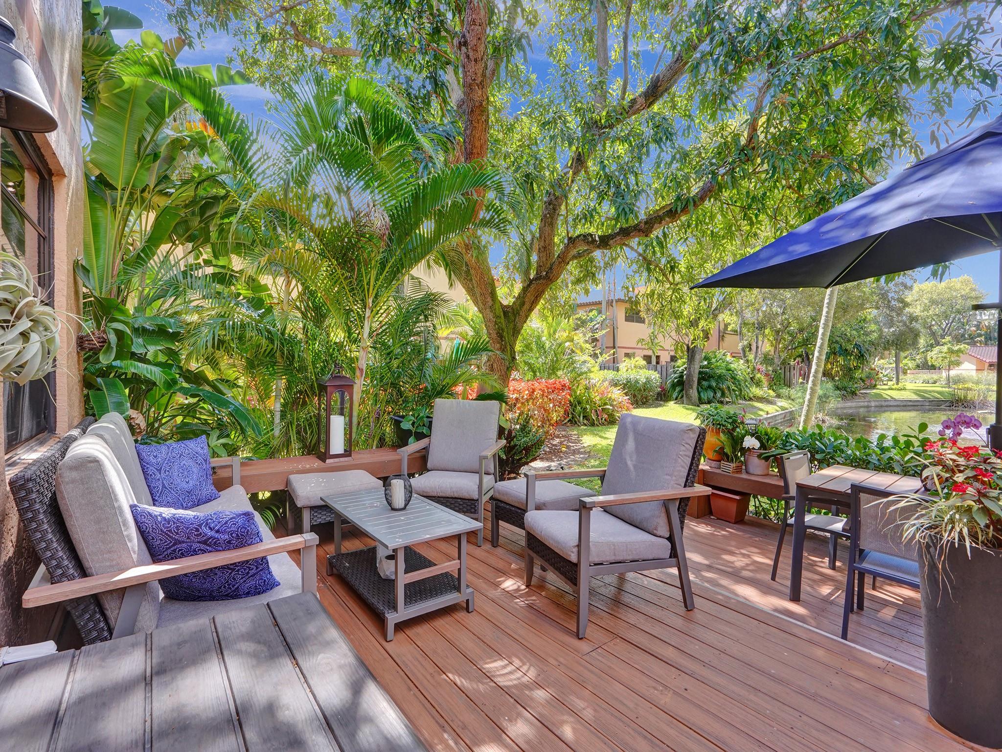 Welcome to your dream home! This stunning 3-bedroom, 2 ½ bath spans 1541 ft ² & has been both meticulously kept and coveted by its current owners. The corner unit features an abundance of NEW impact windows & doors, offering peace of mind & energy efficiency. The floor plan currently has a unique work from home/bonus room. The inside is fantastic but the step out on to your multi-level deck to enjoy your breathtaking views of a serene pond, tons of koi & turtles. Its quite the peaceful backdrop for daily living but also for luxury entertaining. Located in a quiet community with easy access to local amenities, this home offers a perfect blend of style, comfort, and convenience. Don’t miss this gem!