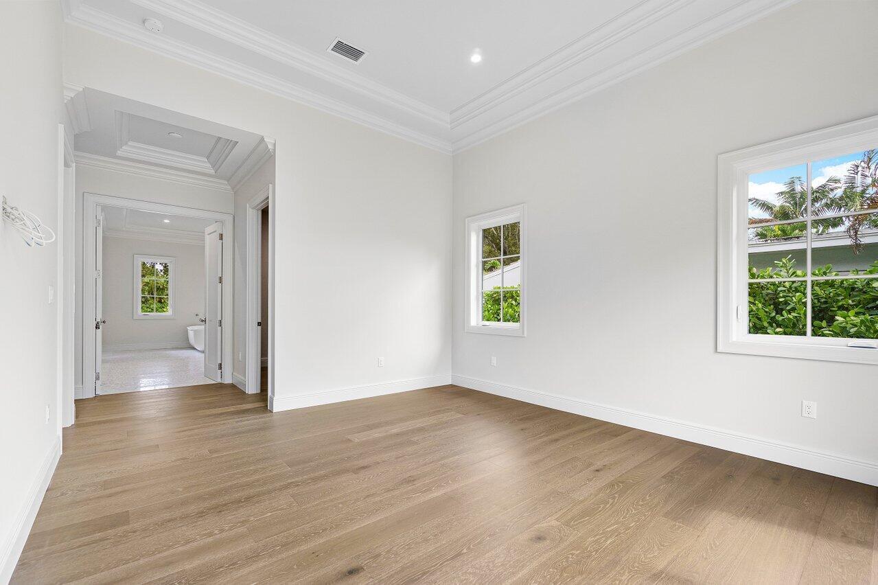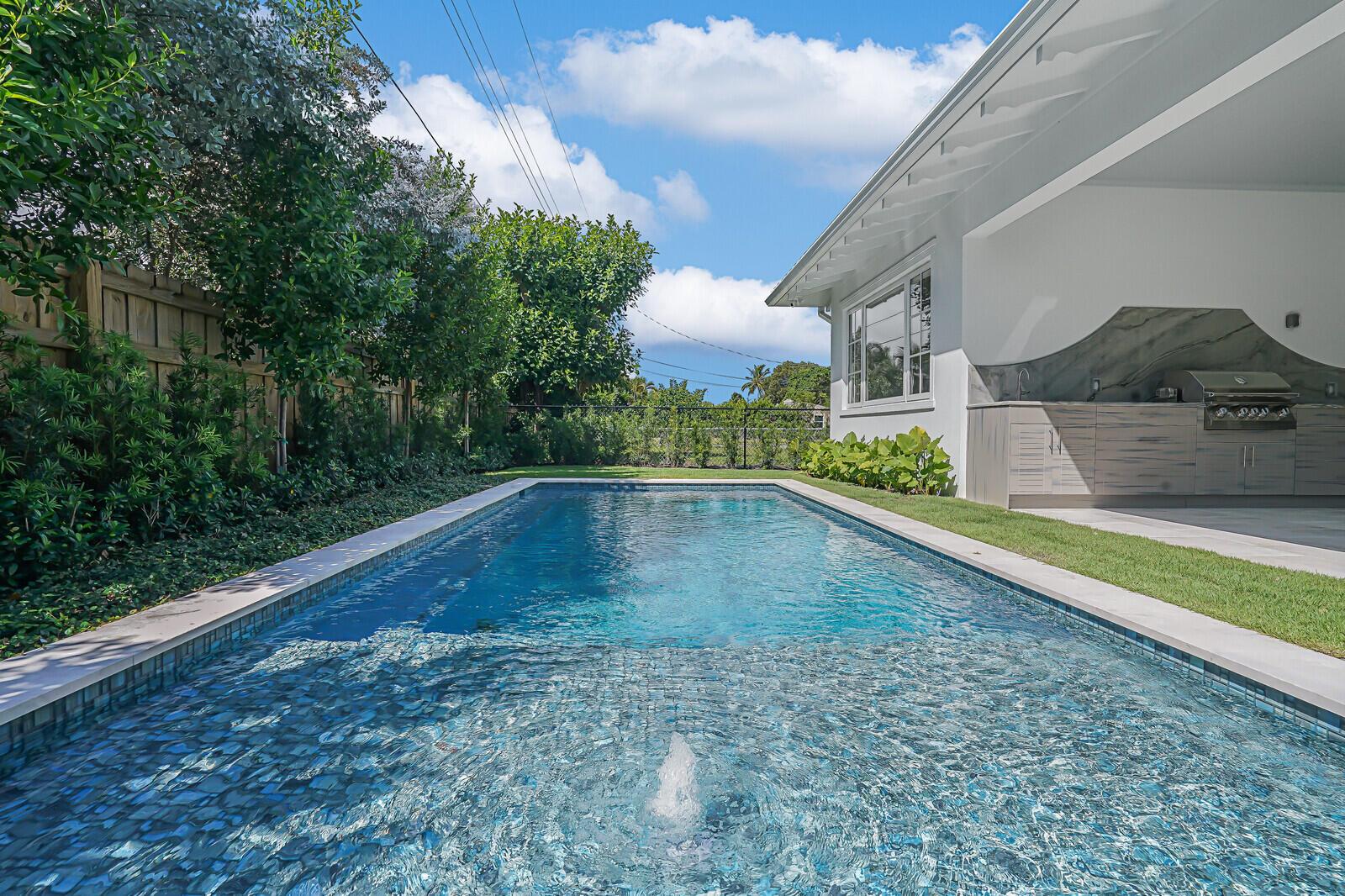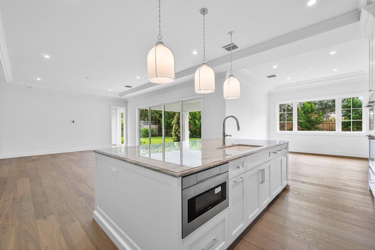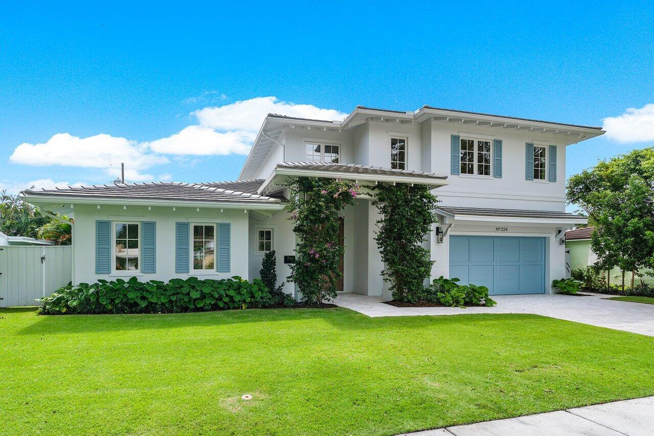 Introducing your dream residence: custom built 4 bedroom, 4.5 bath home nestled on a tree lined street East of Olive and only 8 home sites from the Intracoastal Waterway in the highly desirable Soso district. Crafted with meticulous attention to detail, this dream oasis boasts high end finishes and luxurious touches throughout. Step into the heart of the home, where you will be enamored with the custom kitchen cabinetry, state of the art Monogram appliances, and ample space for entertaining. Ensure your favorite vintages are perfectly chilled in the temperature controlled wine fridge. The spacious living areas are adorned with wood floors and custom millwork bringing warmth and elegance to the space.