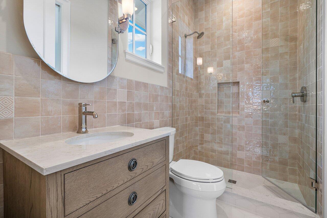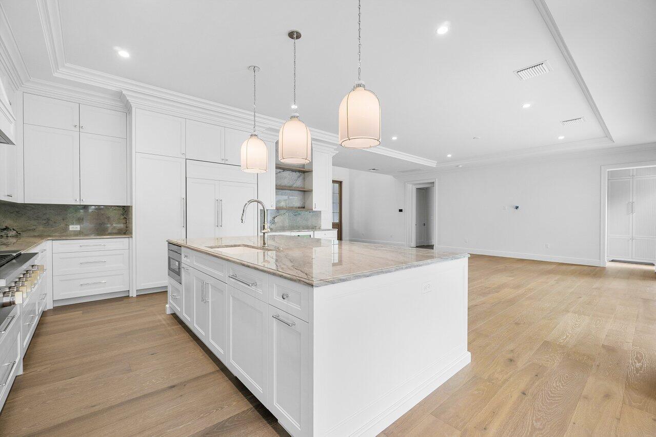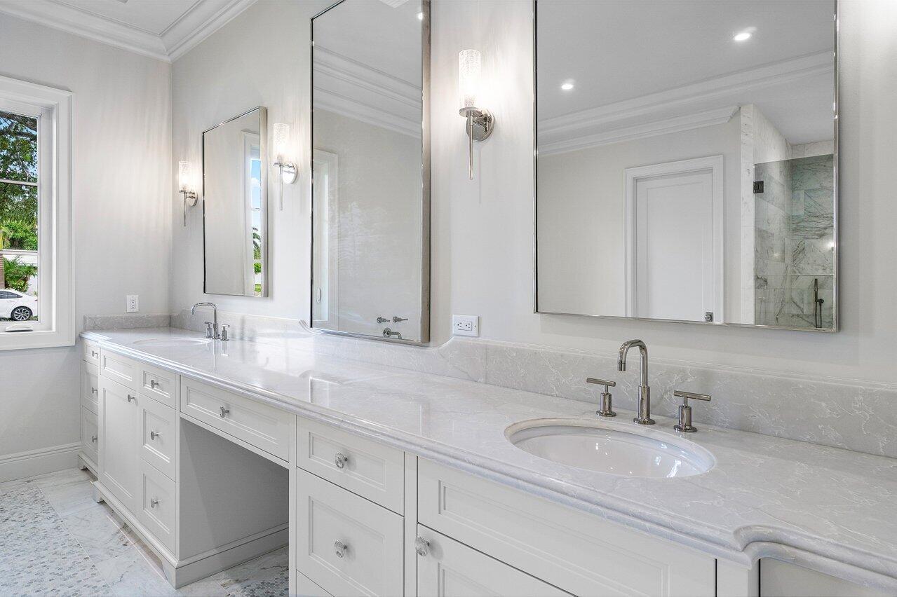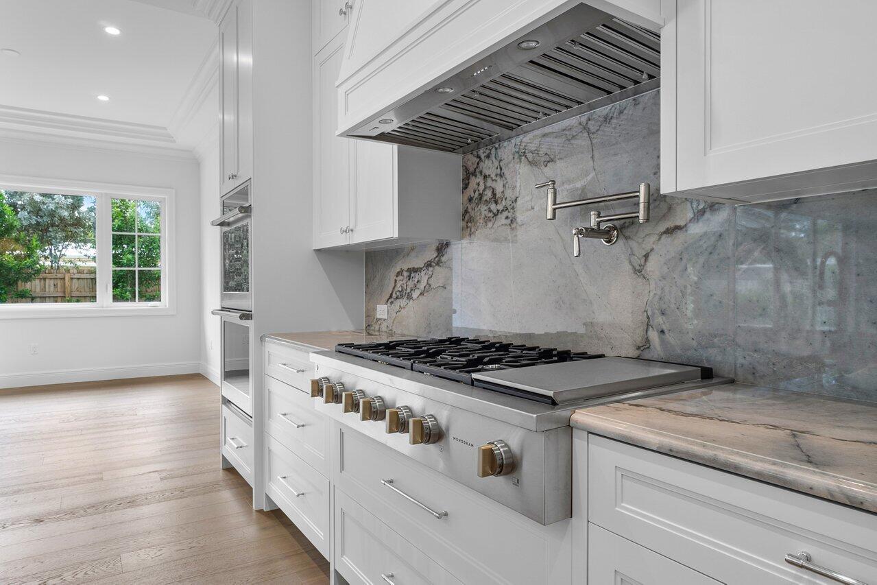 Introducing your dream residence: custom built 4 bedroom, 4.5 bath home nestled on a tree lined street East of Olive and only 8 home sites from the Intracoastal Waterway in the highly desirable Soso district. Crafted with meticulous attention to detail, this dream oasis boasts high end finishes and luxurious touches throughout. Step into the heart of the home, where you will be enamored with the custom kitchen cabinetry, state of the art Monogram appliances, and ample space for entertaining. Ensure your favorite vintages are perfectly chilled in the temperature controlled wine fridge. The spacious living areas are adorned with wood floors and custom millwork bringing warmth and elegance to the space.