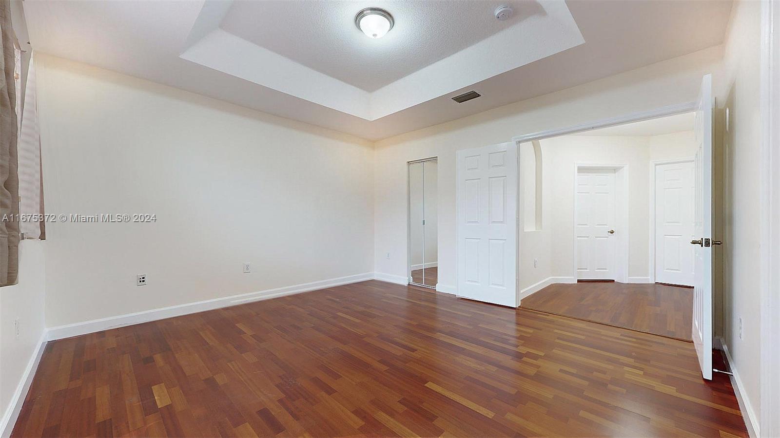 Welcome to the gated community of Sonoma at Doral! Beautifully remodeled corner townhome features 3 bed,2.5 baths, washer & dryer, accordion shutters, and 1-car garage. Living room features a beautiful stone wall, adding a touch of elegance to the living area. Family room and open kitchen are filled with abundant natural light, the kitchen is equipped with stainless steel appliances, new refrigerator & granite countertops. Recently installed ceramic flooring downstairs. Upstairs, you will find elegant Brazilian Cherry flooring, a spacious primary bedroom with a tray ceiling and a walk-in closet, and two additional bedrooms with ample closet space. The upstairs bathrooms have been recently remodeled to include stunning walk-in showers, with the primary bathroom featuring a dual sink vanity.