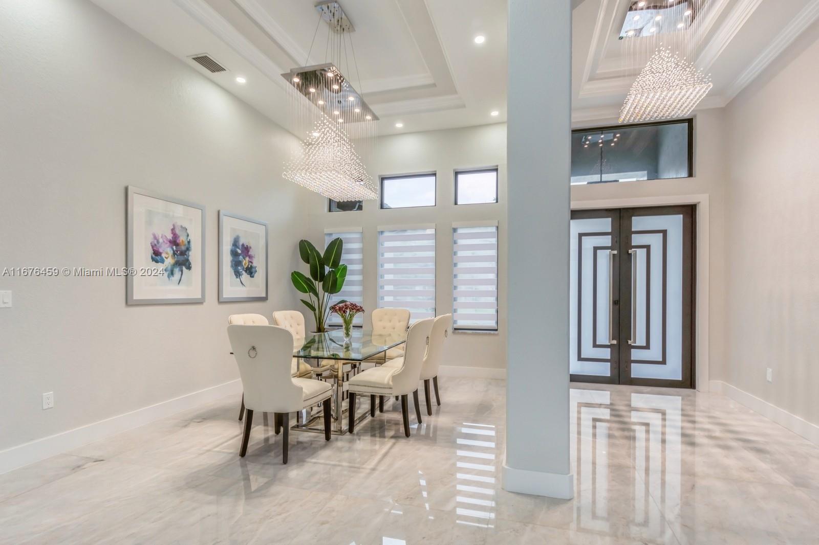 Beautiful single-story lakefront home in the quiet gated community of Grand Isles in Sunset Lakes! This 5 bedroom, 3 bath home is fully renovated inside and out, including marble flooring, electric window treatments, marble travertine extended driveway and pool deck. New Metal roof (2023), Impact windows & doors (2023), pool diamond brite, new filter & pool pump (2023). It features high-end finishes, renovated gourmet modern kitchen with stone waterfall countertops, stainless-steel appliances, and spacious 12-foot ceilings. The fenced-in backyard has stunning lake views and beautiful pool perfect for unwinding and entertaining. Enjoy all the amenities this resort style community offers. Make this bright and spacious turn-key retreat your new home.