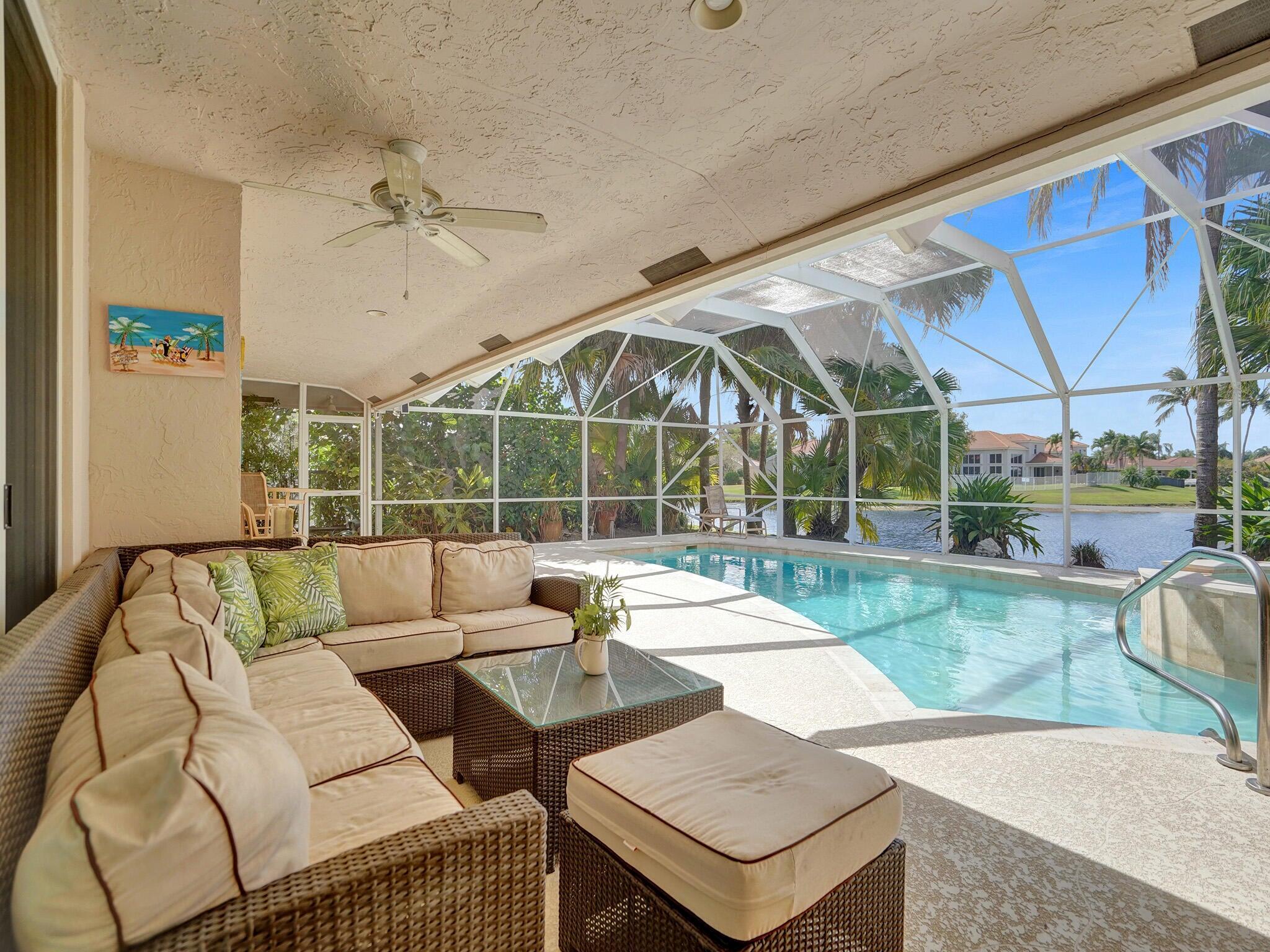 Sweeping Lake views from this Fabulous 4/3, 3-car garage, New IMPACT Windows & Sliding doors, salt water heated pool & Van Kirk newly designed spa, surrounded by new decking. Relax with your morning coffee and spectacular sunsets! Open airy floorpan with fresh white tile, cut coral fireplace, custom kitchen cabinetry with quartzite counters, split bedrooms, wood floors. Custom master closet: built-in extras. Two newly renovated bathrooms. HOA Include: 24hr manned gate, Sports Complex with modern amenities, 7 lighted, har-tru Tennis & 4 PICKLE-Ball courts, staffed Pro Shop, yoga class, pool, sauna, basketball, new playground, Internet, cable, great A-rated schools with many community parties & social activities. NO EQUITY/DUES. Minutes to Beach. Walk to shops & restaurant