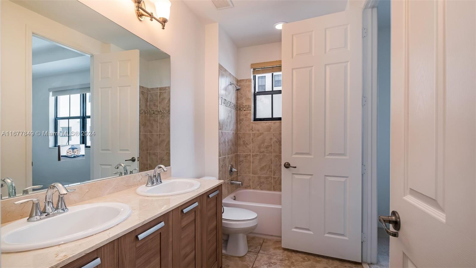 3 Bedrooms/3.5 bathrooms TH with 2,438 Sqft of living space. Considering one of the largest. Include a high end kitchen with stainless steel appliances, granite countertops and tile flooring. Laundry room. 2 car garage. All bedrooms have walking in closets with full bathroom. Top floor consider as extra room with bar, bathroom, huge terrace with outdoor kitchen. Must see! Community also has a pool. Prime location, close to school, shopping malls, grocery store, golf course.