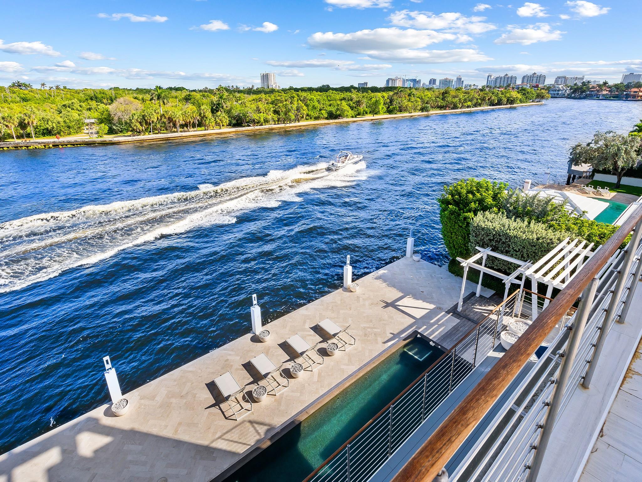 Luxury redefined in this contemporary waterfront estate, situated on 100 feet along the Intracoastal waterway. Every element has been curated to deliver an elevated modern lifestyle with open concept living spaces that harmoniously blend multiple entertaining areas. The luminous floor plan is enhanced by soaring ceilings, walls of glass & multiple doorways bridging indoor & outdoor living spaces. Panoramic wide waterway views from the oversized pool & patio area, multiple balconies & the roof top terrace. The culinary kitchen offers tremendous storage, a large center island, gas cooktop & upgraded appliances. Relish in the oversized primary suite with breathtaking sunrises over the Intracoastal, 2 walk-in closets & a spa inspired bathroom. Feature list available. Sq. Ft. from Appraiser.