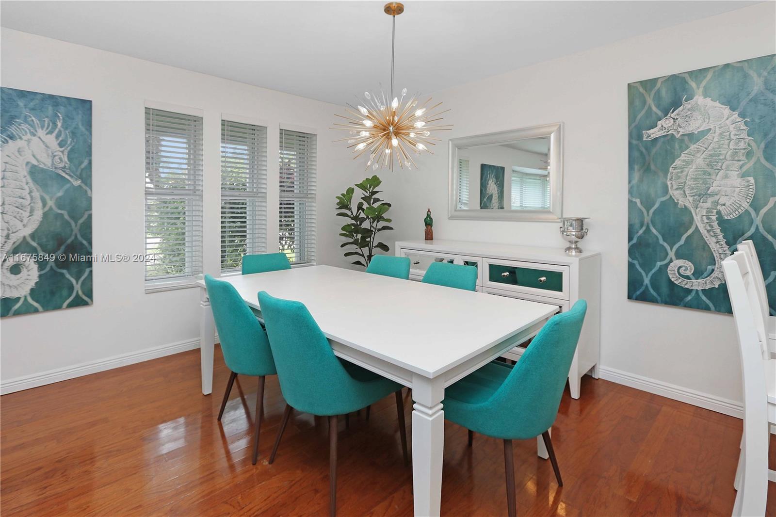 Adorable home with a contemporary design featuring an open floor plan, white kitchen with terrazzo countertops, a farmer’s sink with garden view, stainless steel appliances. Shaker cabinets with glass accent doors add a stylish touch. The family room includes storage space and French doors leading to a covered patio and BBQ area. Tile floors throughout. Roof replaced in 2021, A/C in 2020, and water heater in 2021. Termite warranty transferable. New sprinkler pump, fenced yard, L-shaped patio, and 2-car garage with impact doors and W/D. The primary bedroom boasts bamboo floors, double sinks, a walk-in closet and French doors to the patio. Circular drive and a fabulous floor plan.