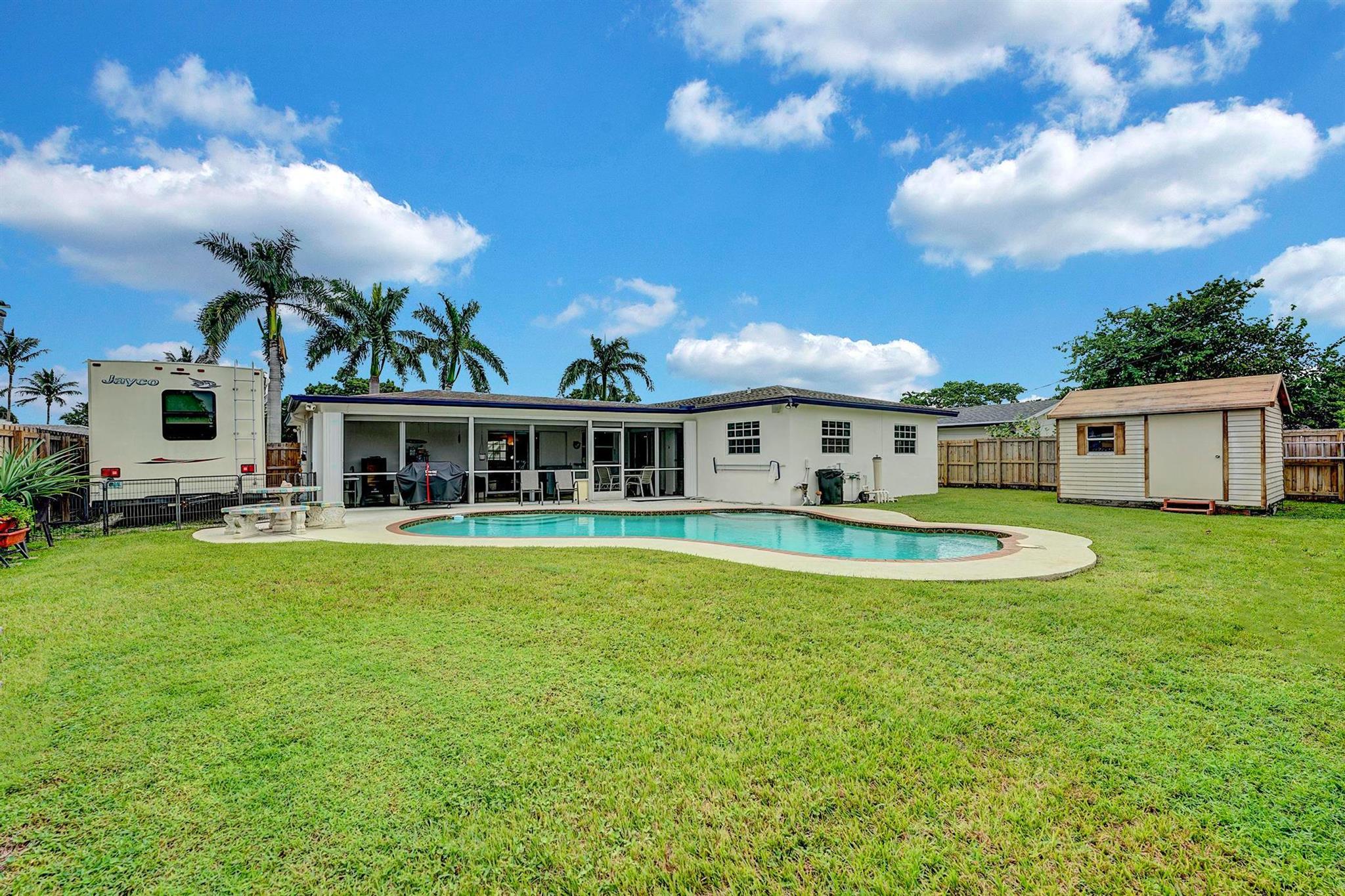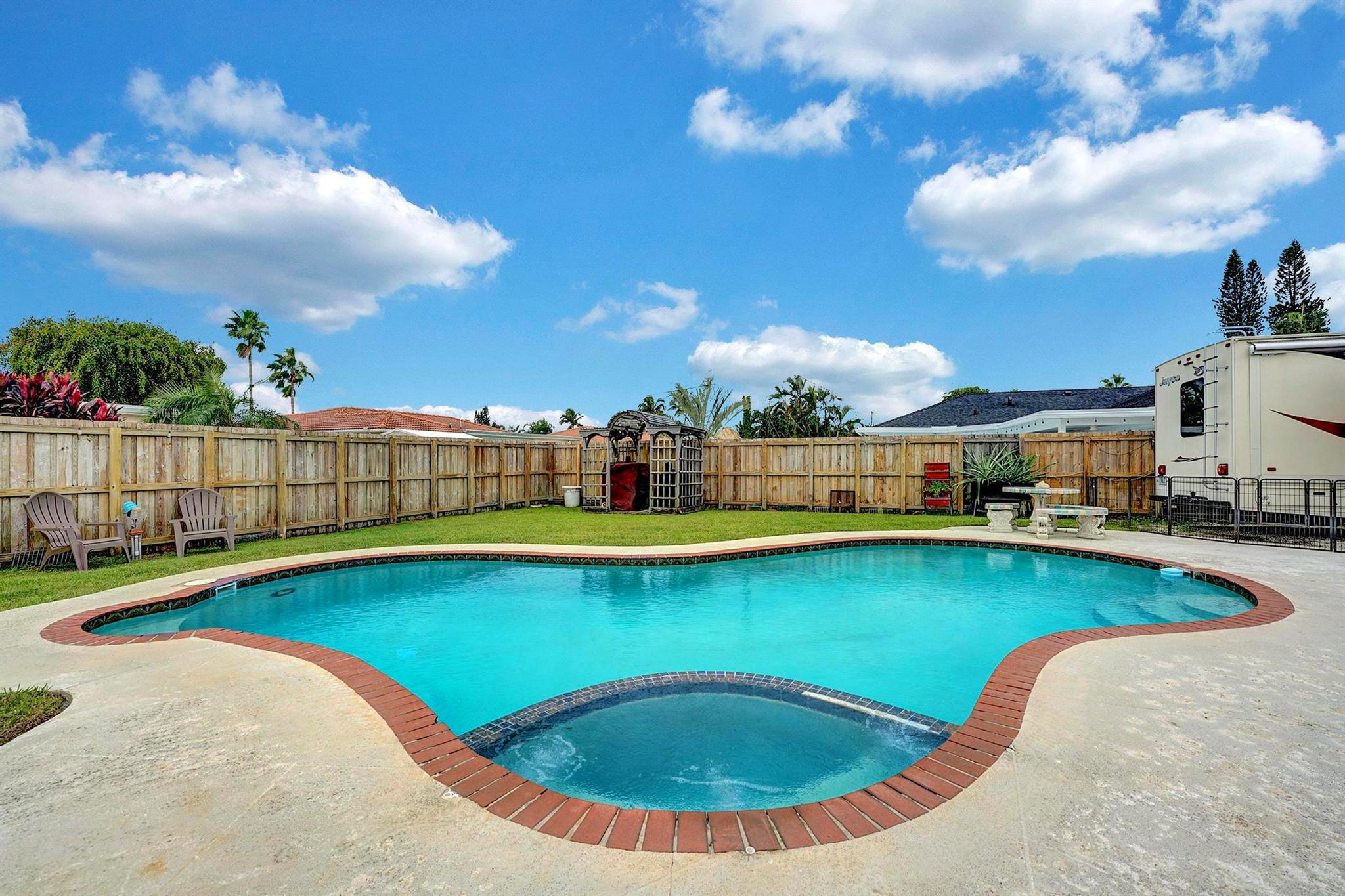 Welcome to your dream home in the heart of Boca Raton! This spacious 3-bedroom, 2-bathroom home, boasting 2,251 total square feet, offers a perfect blend of comfort, convenience, and flexibility. One of the bathrooms is a convenient cabana bath, ideal for poolside living. Step outside to your private backyard oasis featuring an in-ground pool, perfect for cooling off on hot Florida days. With plenty of space for an RV or boat and an RV hookup already in place, this property is a rare find for those seeking adventure. The CBS construction ensures durability, while complete hurricane protection gives you peace of mind during storm season. Inside, the open floor plan welcomes you with laminate flooring throughout, adding a modern touch.