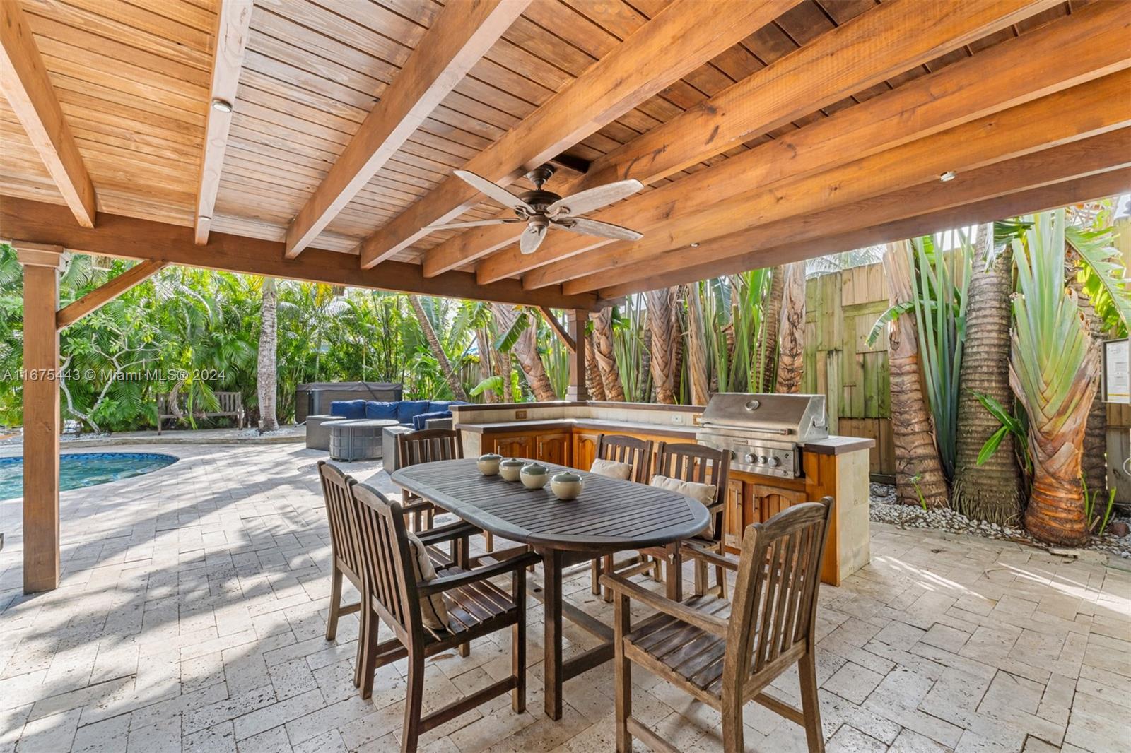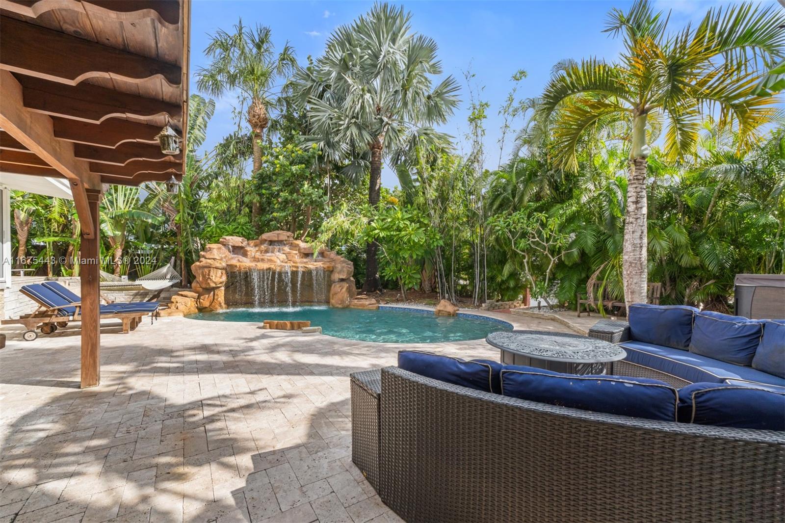Welcome to this charming tri-level mid-century home in the highly desirable Lauderdale Isles. This 3-bedroom, 2-bath residence exudes character with vaulted wood ceilings and abundant natural light pouring in through large windows. Enjoy the comfort of a new roof, fresh exterior paint, and partial impact windows. Step outside into your oversized, tropical oasis—a lush backyard with a resort style swimming pool and a hot tub, perfect for relaxation & entertaining. With 65 feet of waterfront and no fixed bridges, enjoy direct ocean access from your backyard, ideal for boating enthusiasts! Conveniently located with easy access to major highways, and just minutes from the Hard Rock Hotel and Ft. Lauderdale Int'l Airport. Don’t miss this opportunity to own a piece of paradise in Ft. Lauderdale.