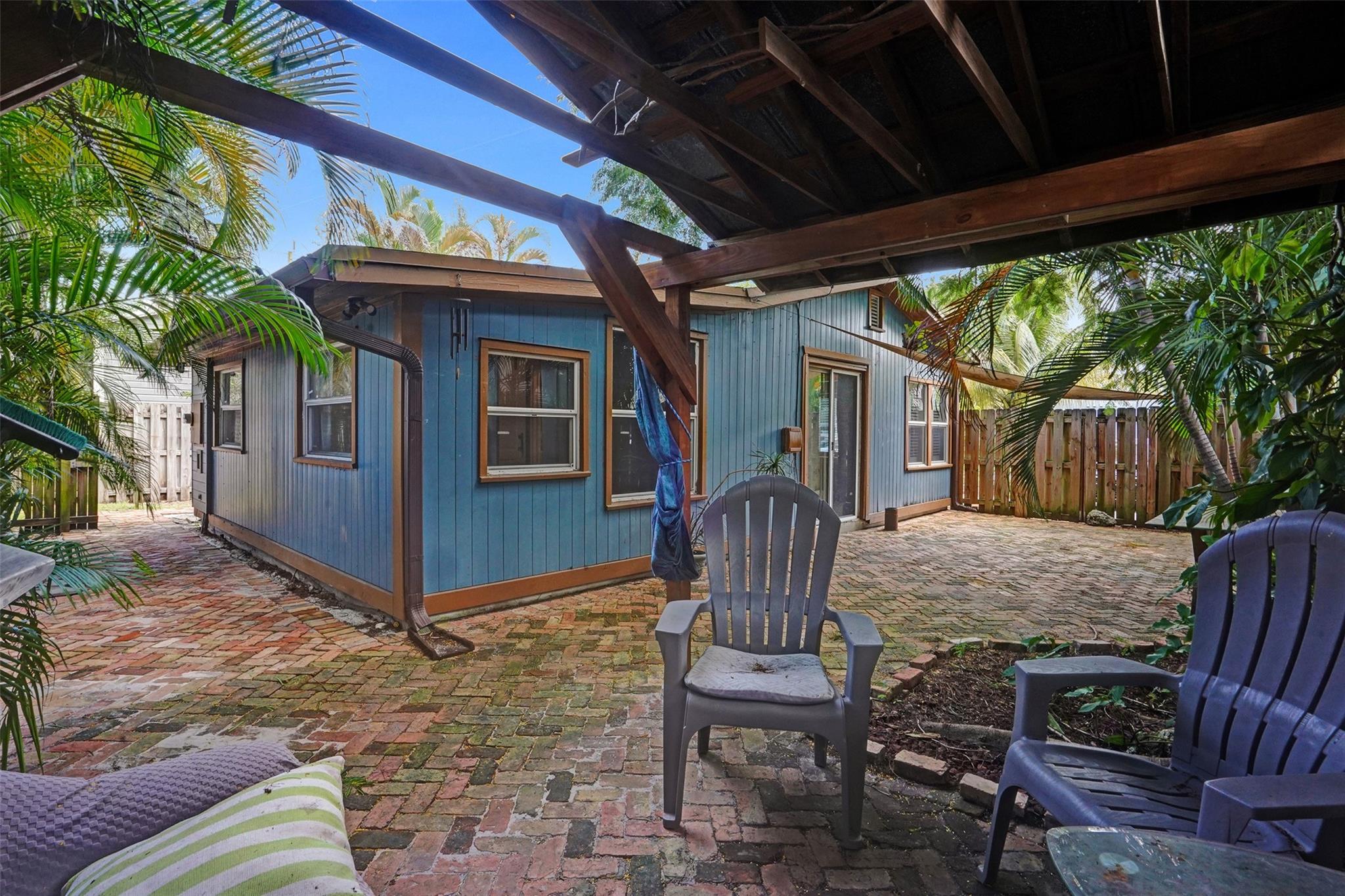 Bright and airy 2-bedroom, 1-bathroom home located in the heart of Sailboat Bend, just a short walk from downtown Fort Lauderdale. Enjoy the beautifully designed outdoor space with a Chicago brick patio, perfect for relaxing or entertaining, and easy-to-maintain landscaping. Features tiled floors throughout and a durable metal roof. The cozy kitchen was updated last year, and a large storage shed in the backyard offers extra space. Custom built-ins, including a bookshelf and charming window seating, add to the home's unique character. Stay energy-efficient with a tankless water heater. The fully fenced yard is ideal for pets. Whether you're looking for a great investment opportunity or a charming starter home, this property is perfect!