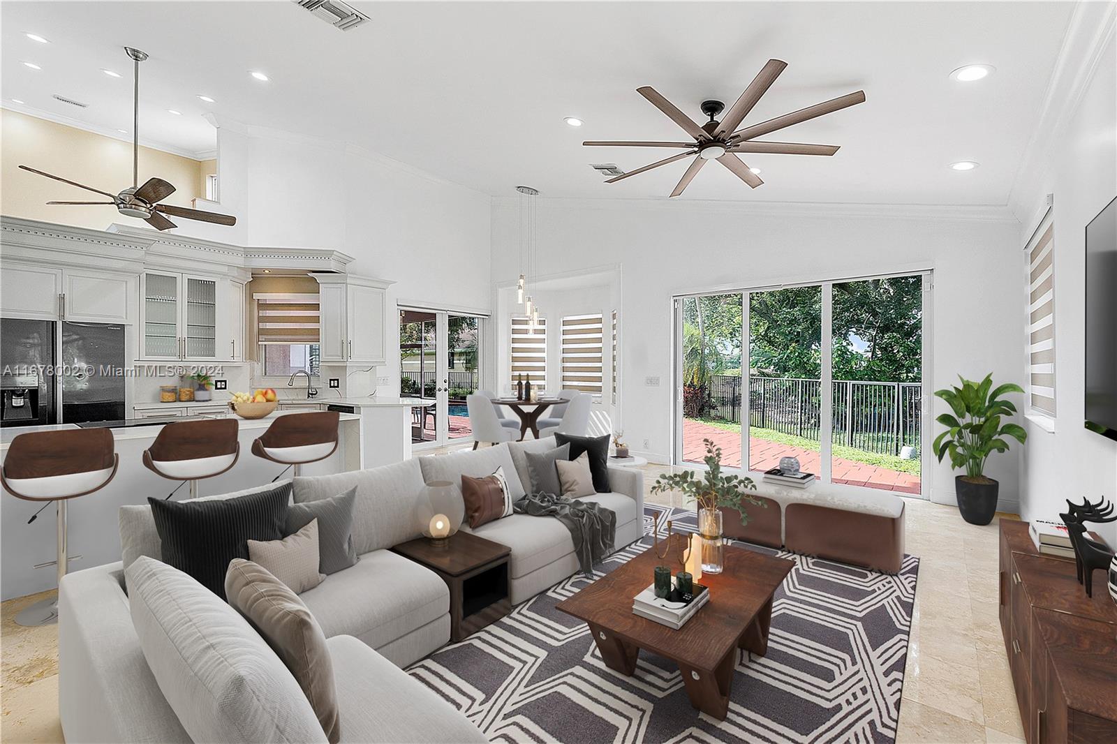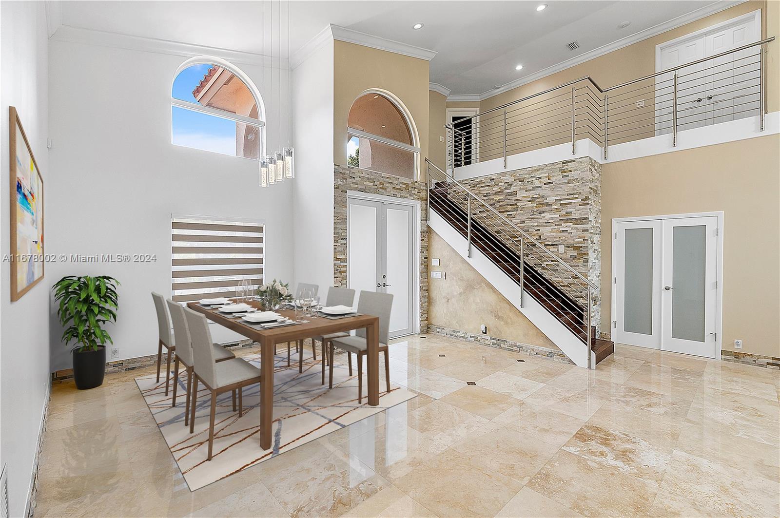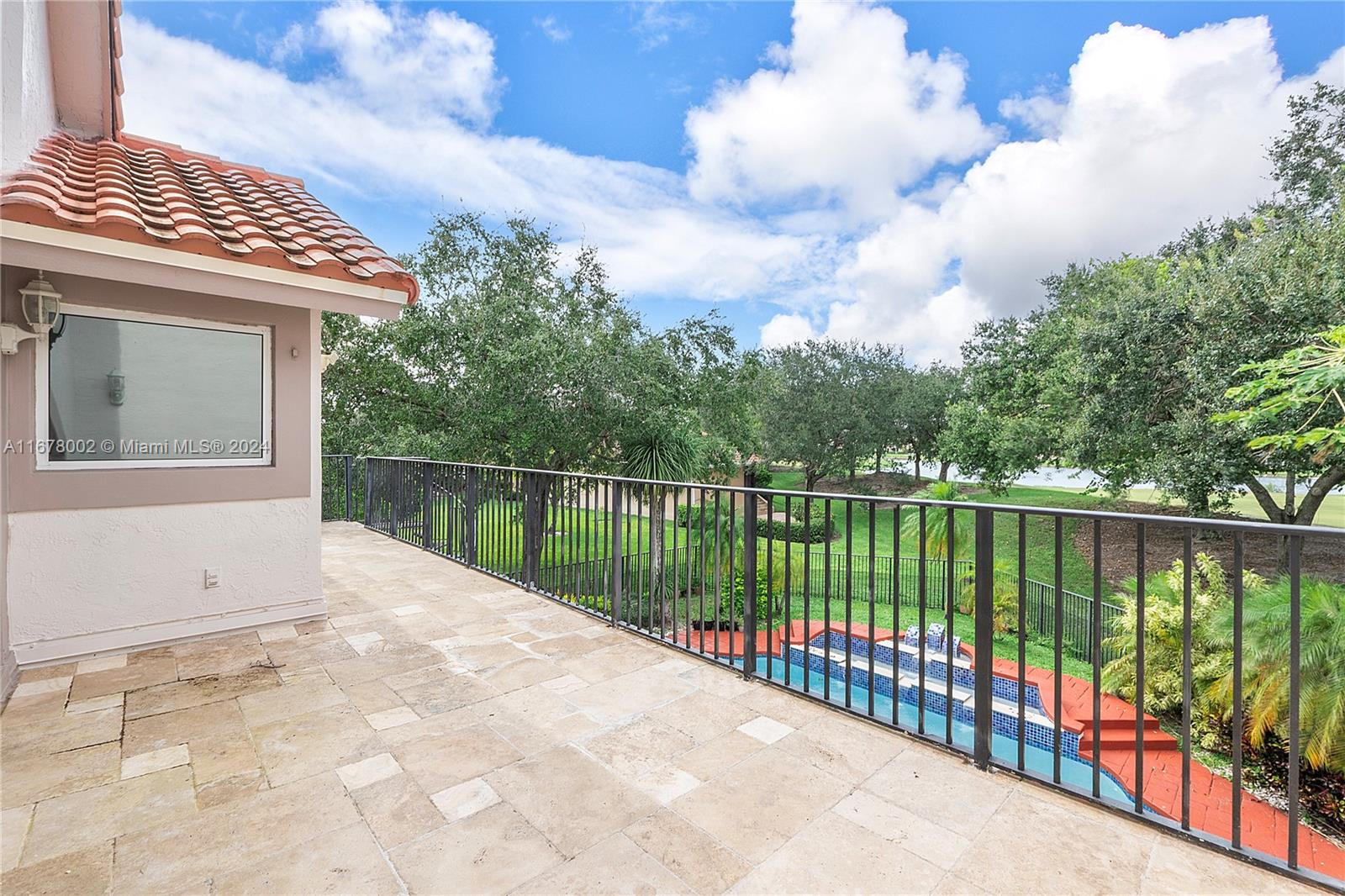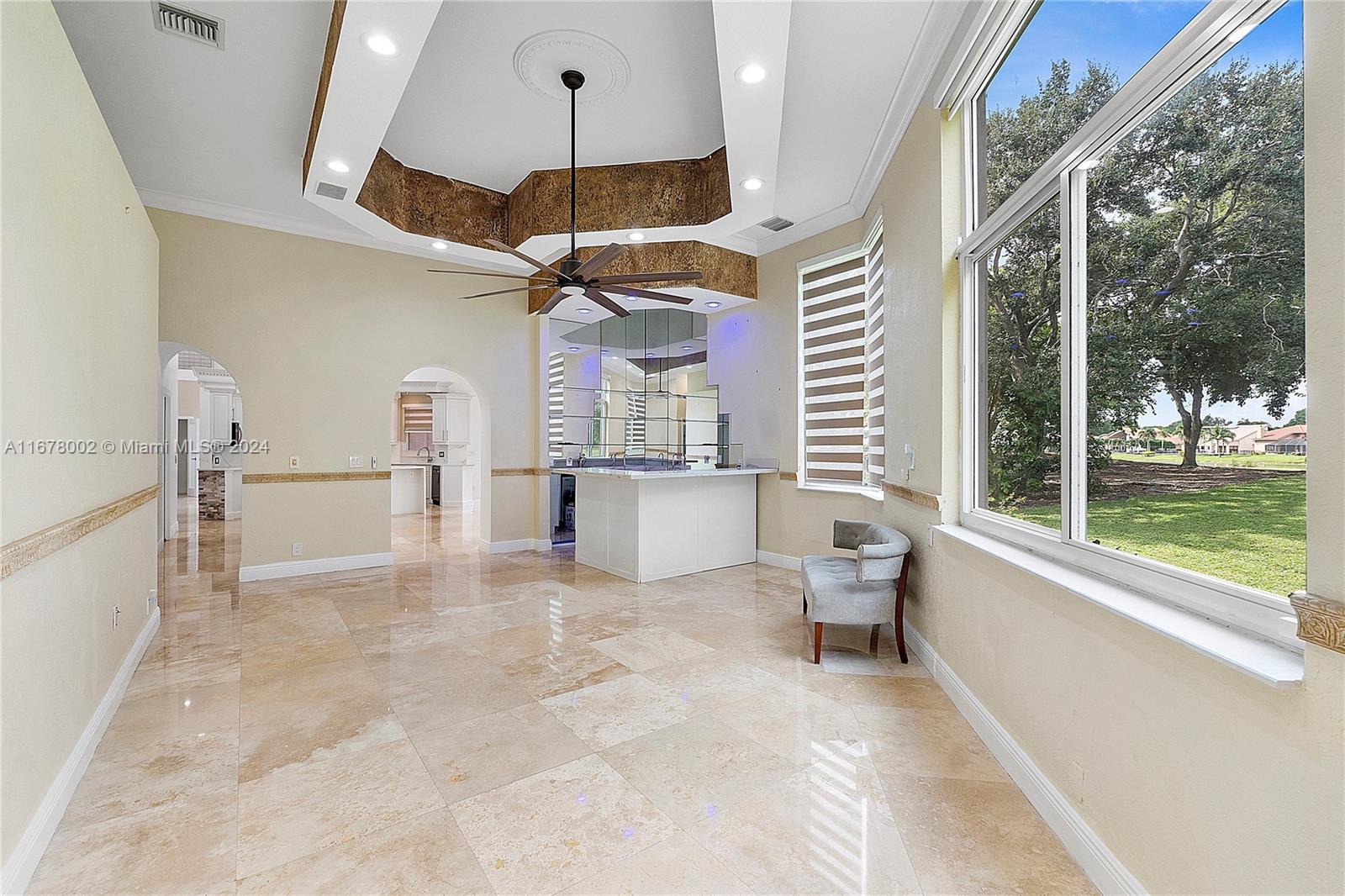 This home offers approximately 4000 square feet of living space, with 6 bedrooms and 4 and a half bathrooms. The spacious layout provides an abundance of comfortable living areas. The lush landscaping and ample parking create a welcoming exterior. The bright and airy interior is filled with natural light, accented by elegant tiled and stone details. The kitchen features abundant cabinetry, with oversized pantry providing ample storage and preparation space. The primary bedroom is generously sized, complemented by laminate flooring and an open concept. This home has lots warmth and sophistication. The exterior features spacious layout with an inviting pool, allowing for relaxation. This home is situated on a golf course, features circular driveaway on a cul-de-sac.