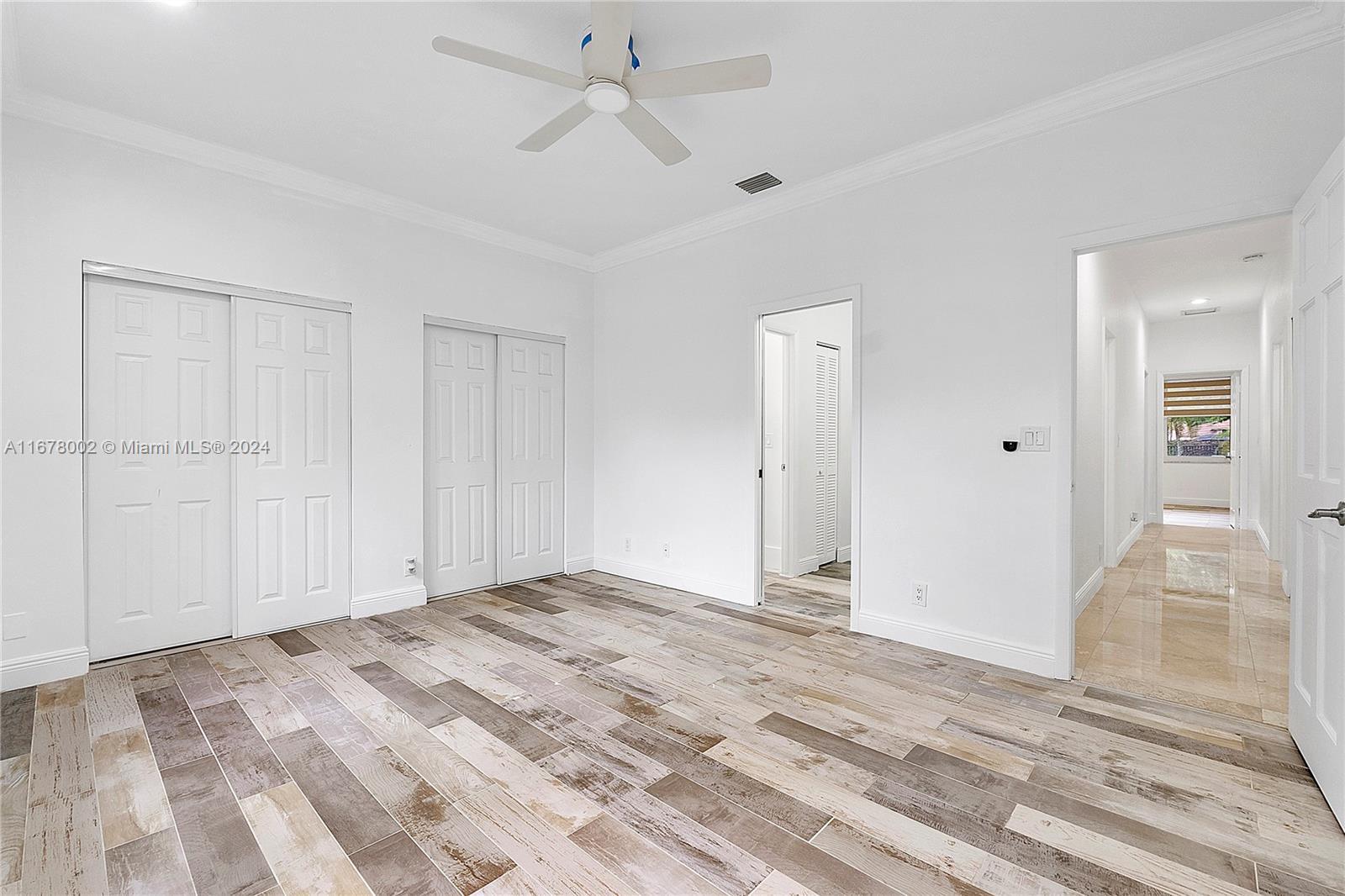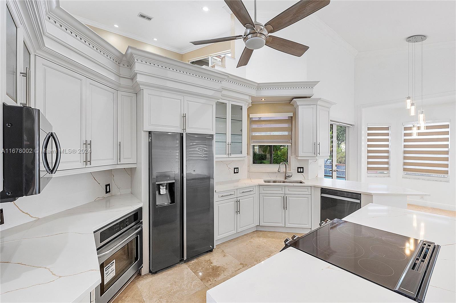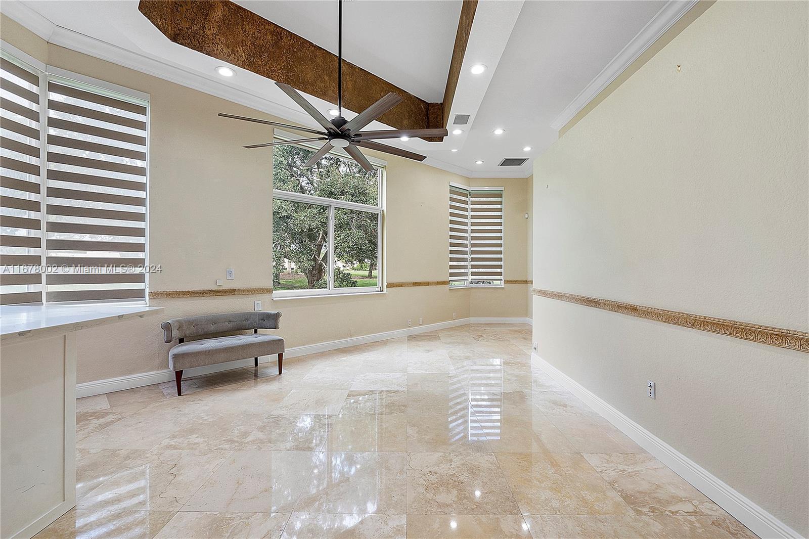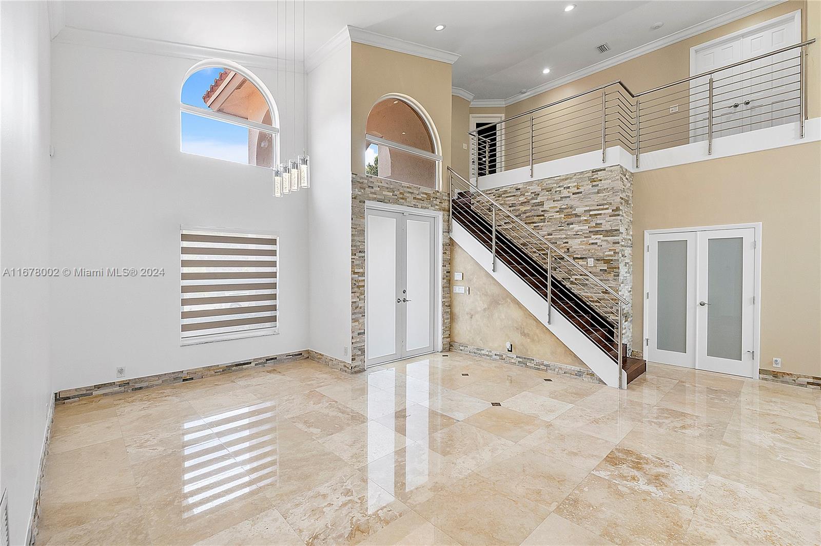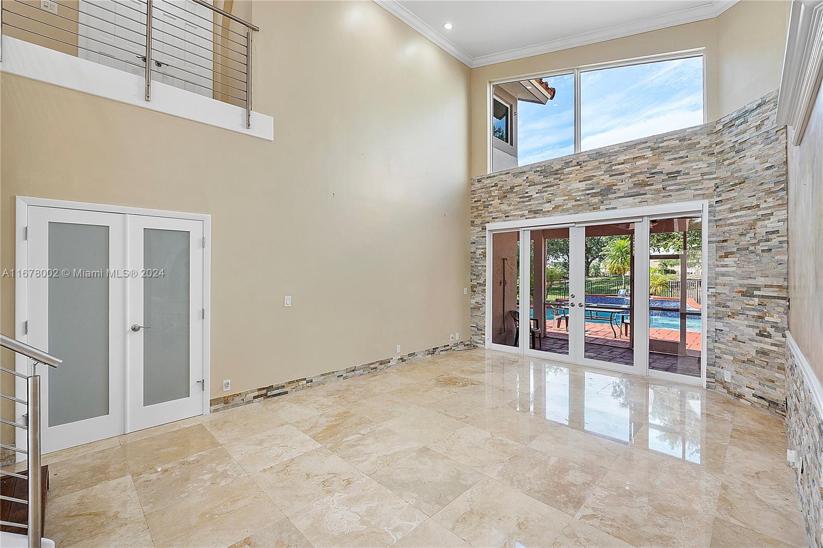 This home offers approximately 4000 square feet of living space, with 6 bedrooms and 4 and a half bathrooms. The spacious layout provides an abundance of comfortable living areas. The lush landscaping and ample parking create a welcoming exterior. The bright and airy interior is filled with natural light, accented by elegant tiled and stone details. The kitchen features abundant cabinetry, with oversized pantry providing ample storage and preparation space. The primary bedroom is generously sized, complemented by laminate flooring and an open concept. This home has lots warmth and sophistication. The exterior features spacious layout with an inviting pool, allowing for relaxation. This home is situated on a golf course, features circular driveaway on a cul-de-sac.