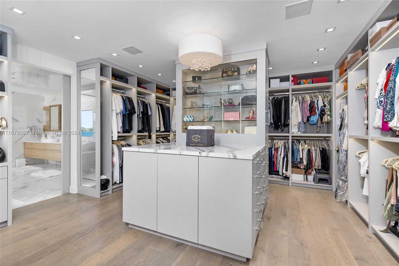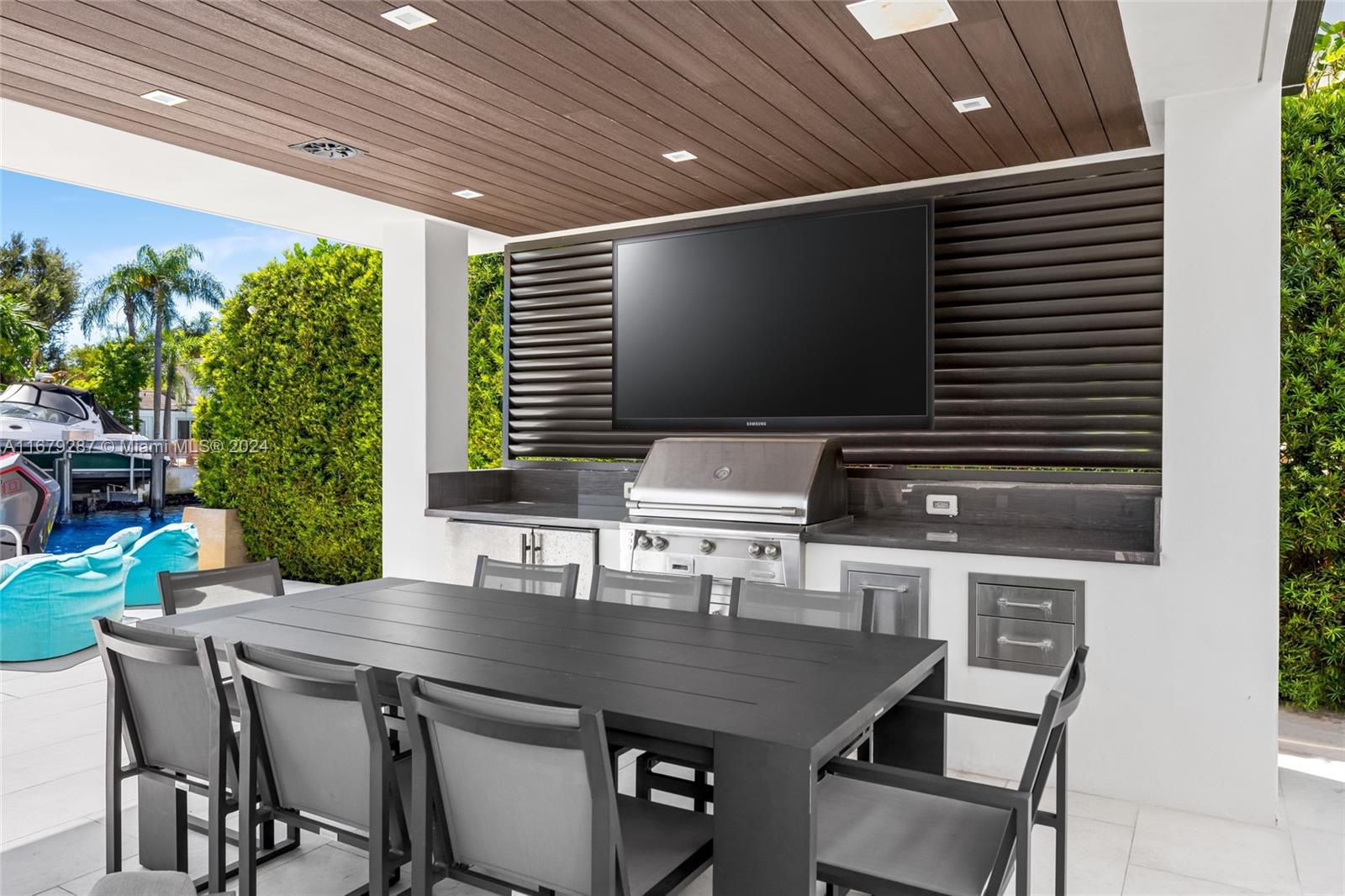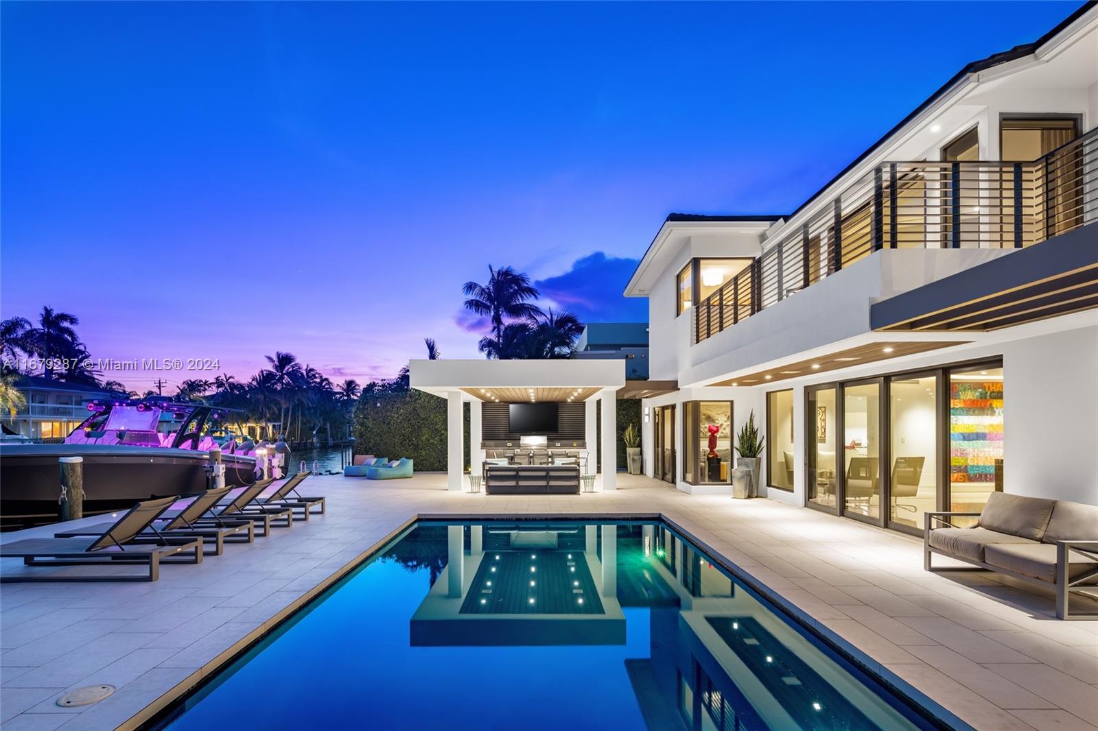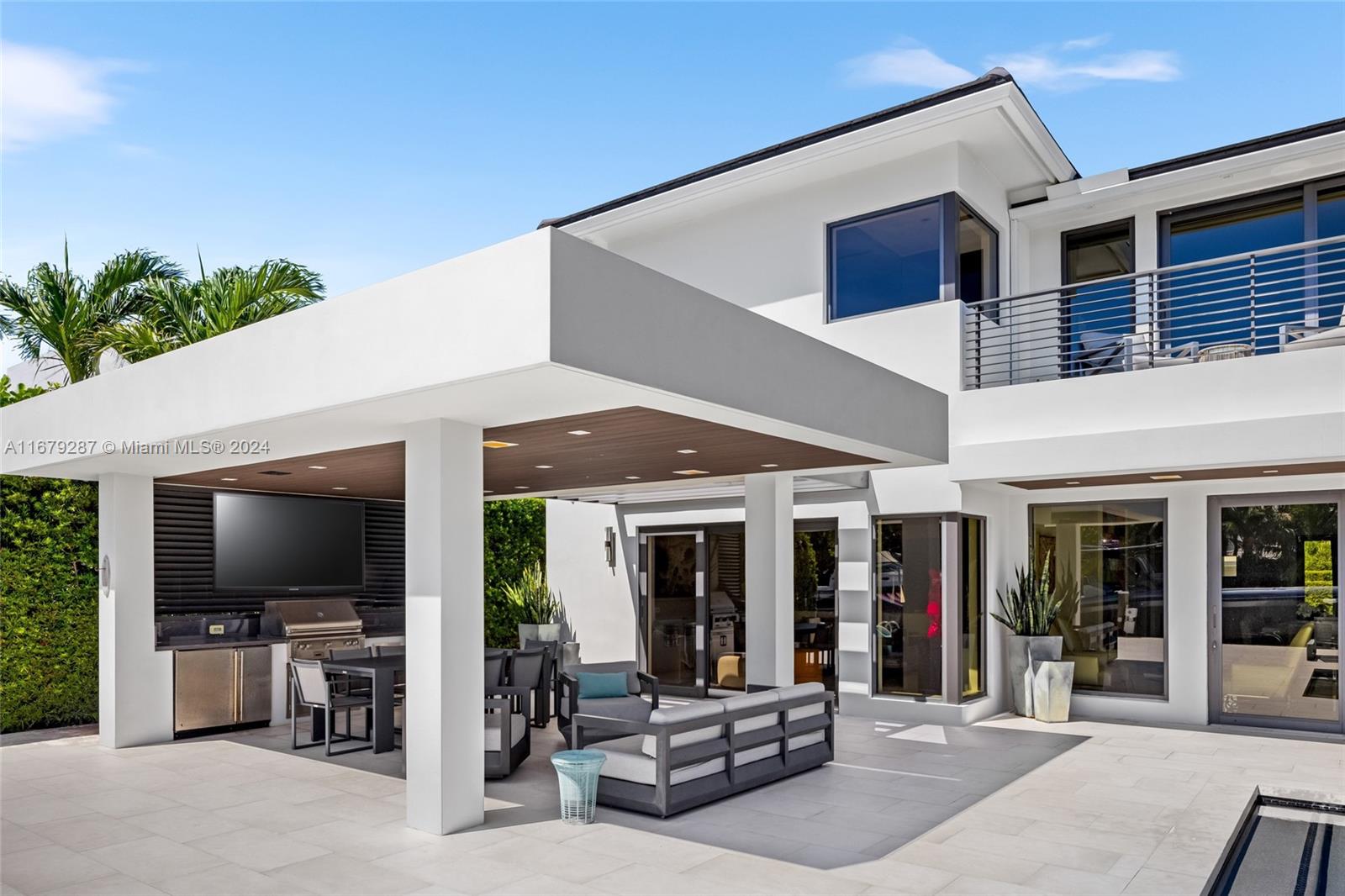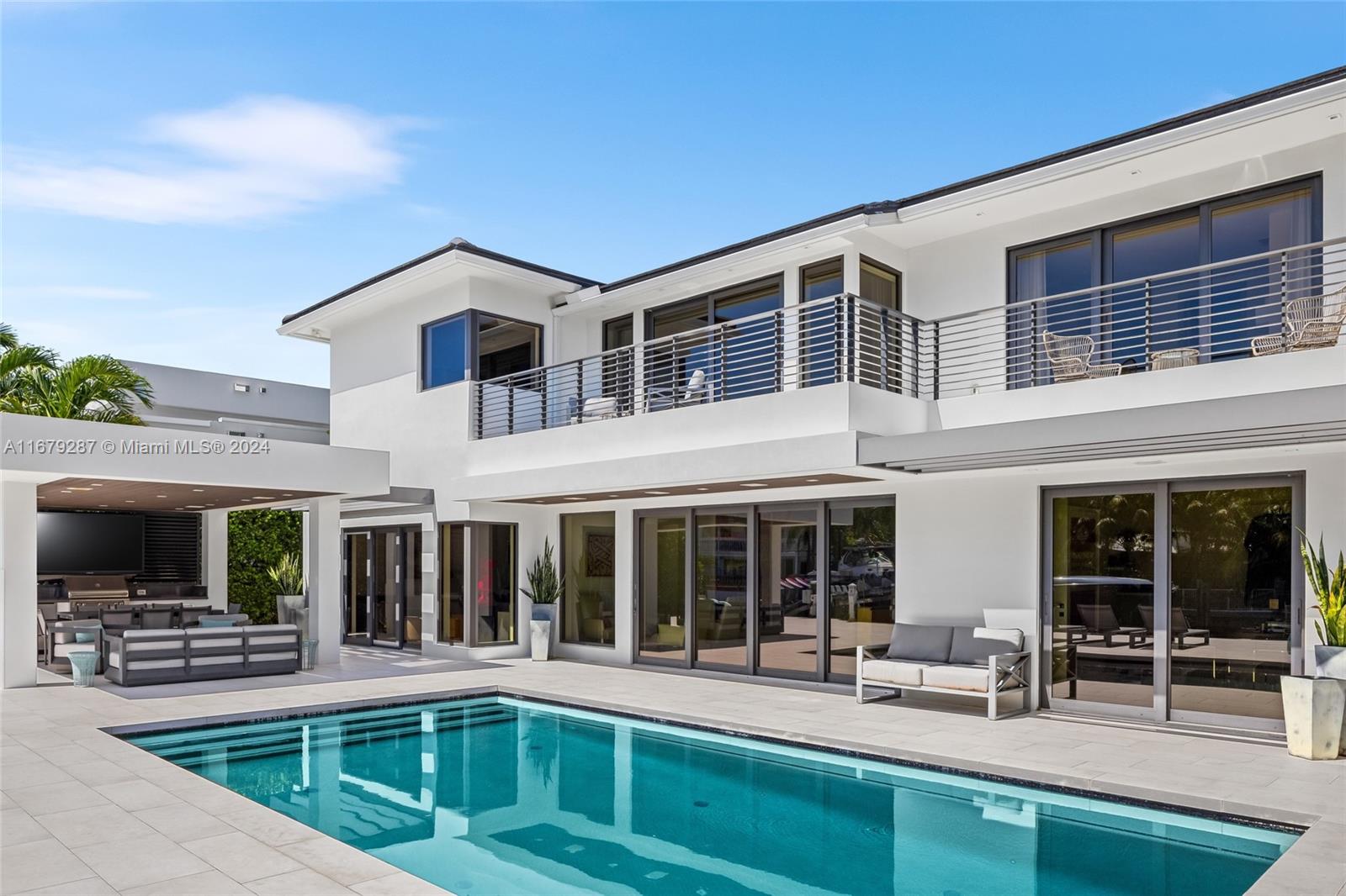 Discover modern luxury living at its finest in this newly reimagined 6-bedroom, 6.5-bathroom home. Boasting 5,750SF of meticulously designed space, this guard gated residence offers an open floor plan bathed in natural light through floor-to-ceiling windows. The European kitchen, equipped with top-of-the-line Sub-Zero & Wolf appliances, is a culinary enthusiast's dream. Entertain effortlessly w/a sleek bar featuring temperature-controlled wine storage that flows seamlessly to the outdoor pool area. The primary suite features a boutique style walk-in closet & breathtaking bay views. With 75FT of water frontage, you're just minutes from ocean access. Enjoy the convenience of nearby world-class shopping, and fine dining. Crestron-powered, this smart home defines sophisticated coastal living.