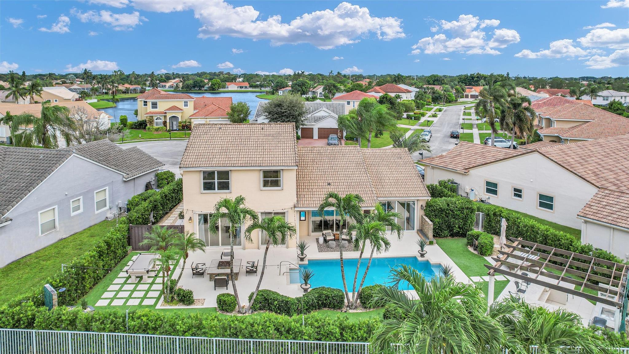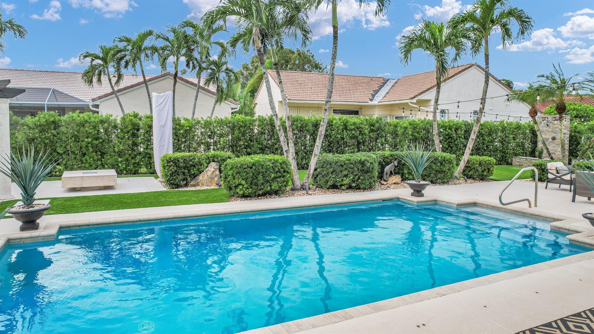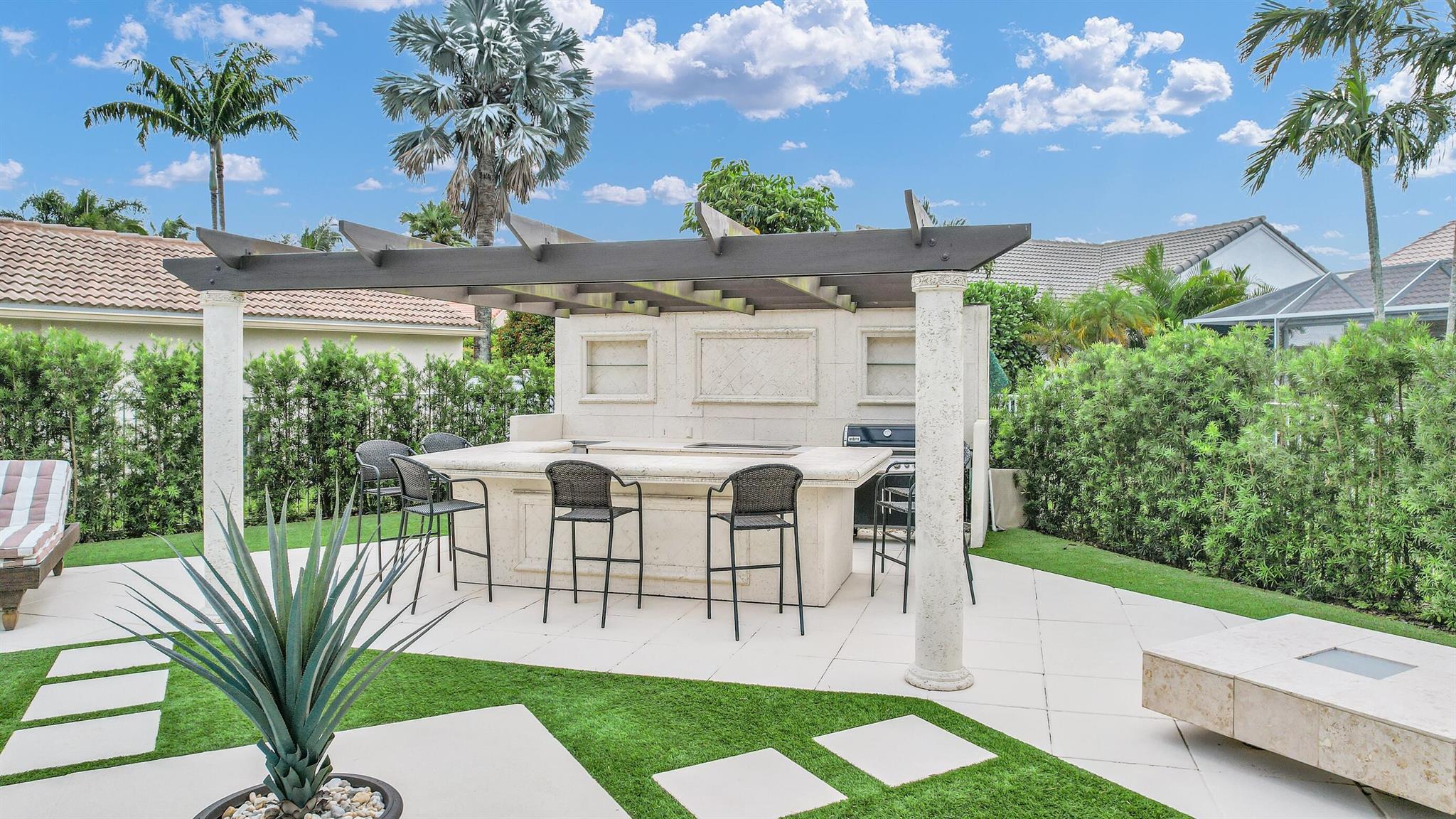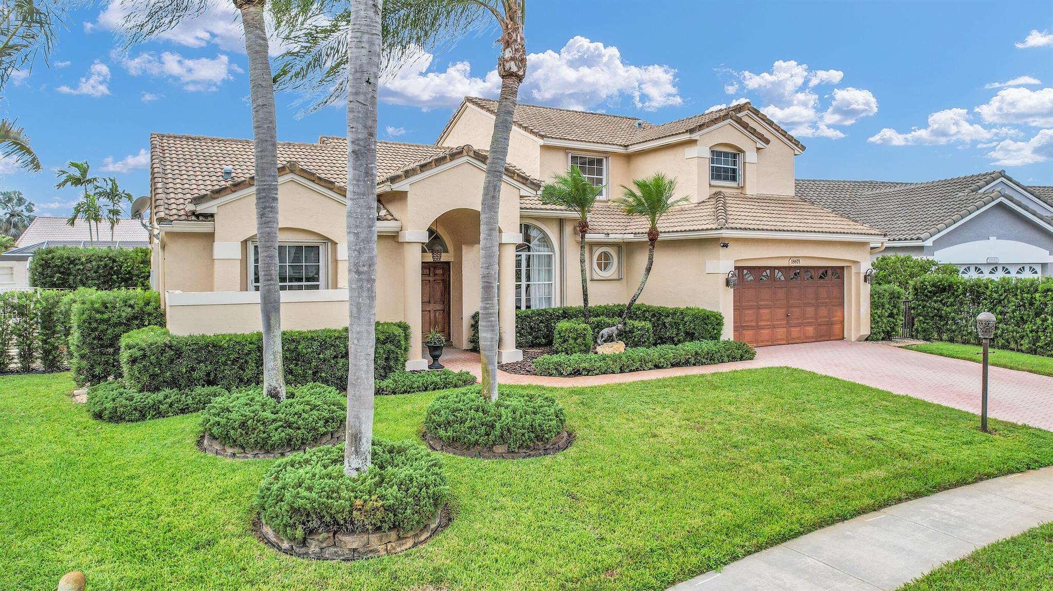 Magazine worthy 5 bed 2.5 bath spectacular home located in a Cul-de-Sac. Quiet and peaceful with no thru traffic! This home exudes elegance and decorator ambience in and out! Neutral light and bright. Large porcelain tiles wall to wall on main area with wood look on stairs and 2nd level - No Carpets here! Recently remodeled and expanded kitchen with tons of storage, pull outs, large Island, leather look Taj Mahal granite counters and marble backsplash. All 3 bathrooms have been beautifully remodeled. Fully fenced Resort style yard with artificial turf, a beautiful pool, outdoor shower (hot & cold H2O) Pergola bar/cook area, this is an entertainment paradise.! Accordion shutters, AC units are 2023 & 2018, Roof 2011. pool re-marcite apprx. 5 years Low HOA fees include Cable & Wi-F...
