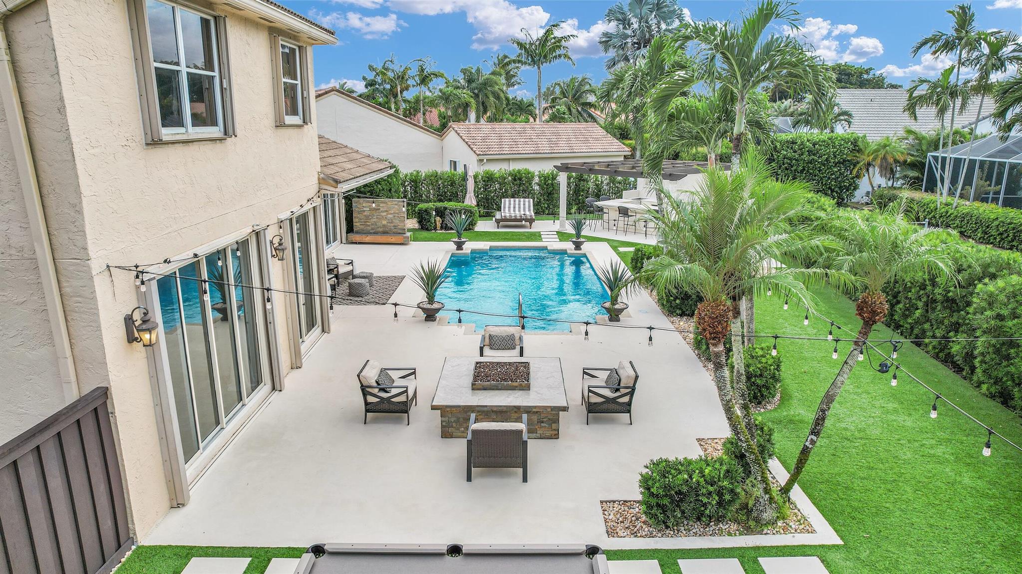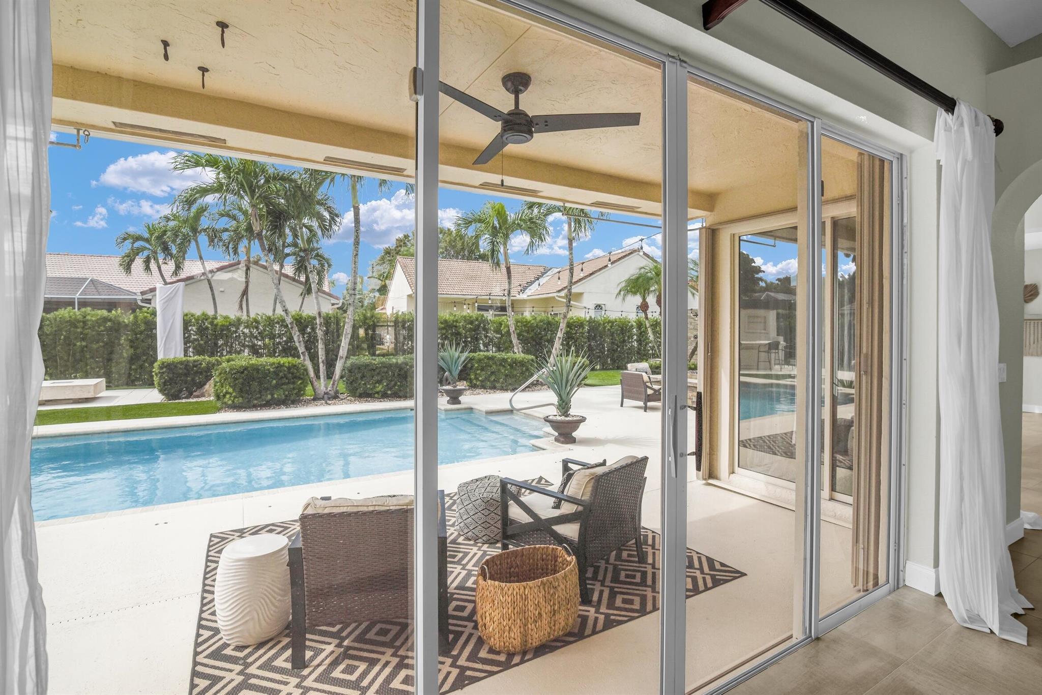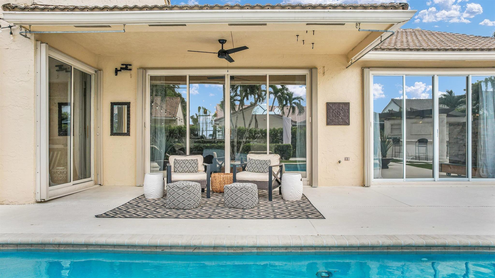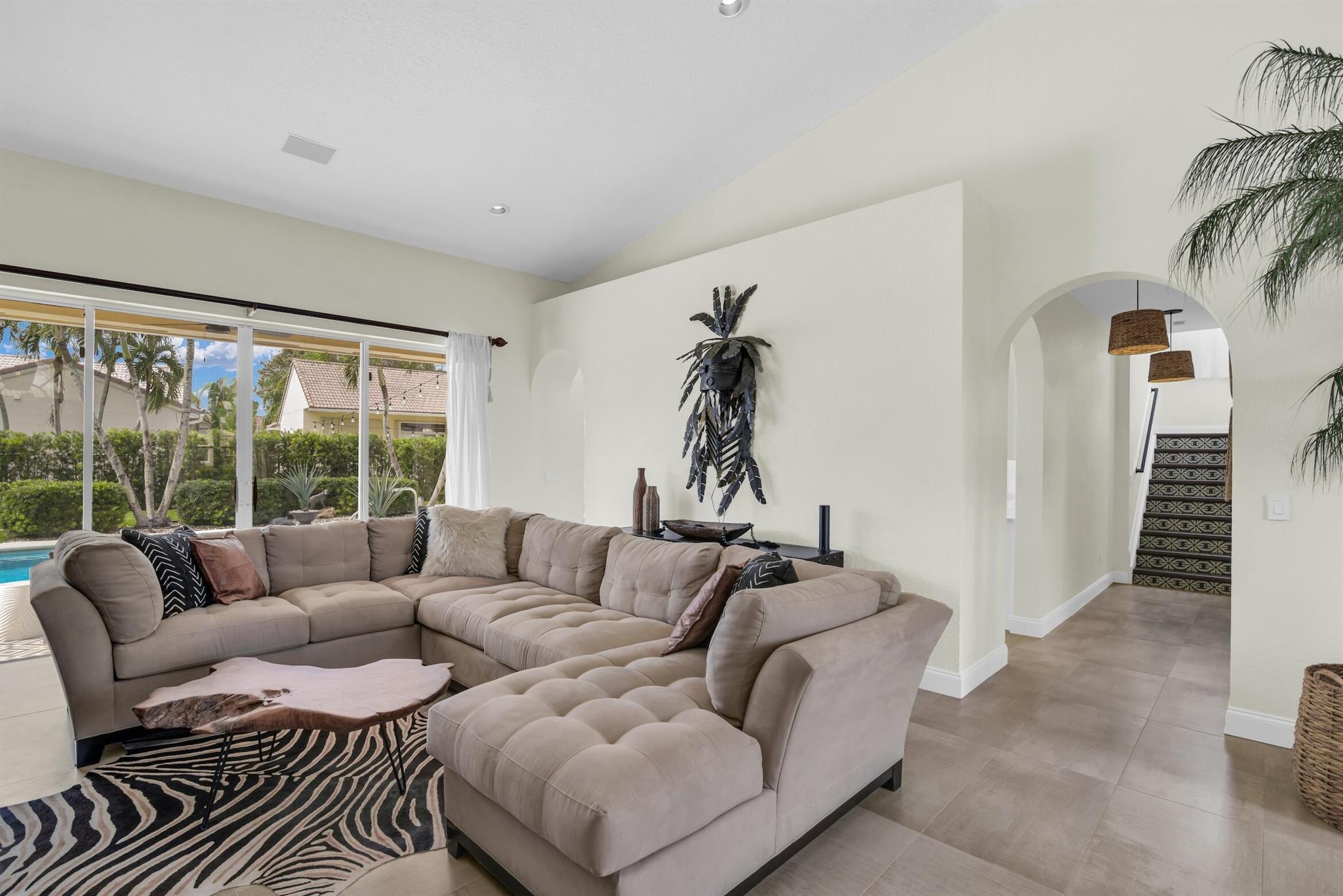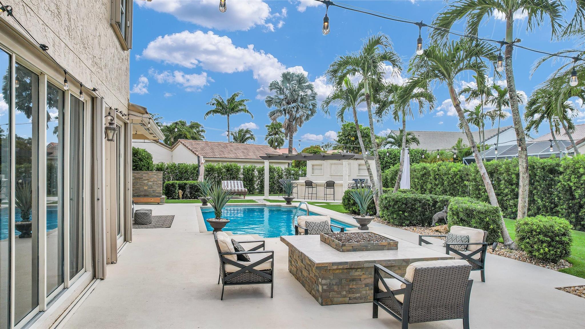 Magazine worthy 5 bed 2.5 bath spectacular home located in a Cul-de-Sac. Quiet and peaceful with no thru traffic! This home exudes elegance and decorator ambience in and out! Neutral light and bright. Large porcelain tiles wall to wall on main area with wood look on stairs and 2nd level - No Carpets here! Recently remodeled and expanded kitchen with tons of storage, pull outs, large Island, leather look Taj Mahal granite counters and marble backsplash. All 3 bathrooms have been beautifully remodeled. Fully fenced Resort style yard with artificial turf, a beautiful pool, outdoor shower (hot & cold H2O) Pergola bar/cook area, this is an entertainment paradise.! Accordion shutters, AC units are 2023 & 2018, Roof 2011. pool re-marcite apprx. 5 years Low HOA fees include Cable & Wi-F...