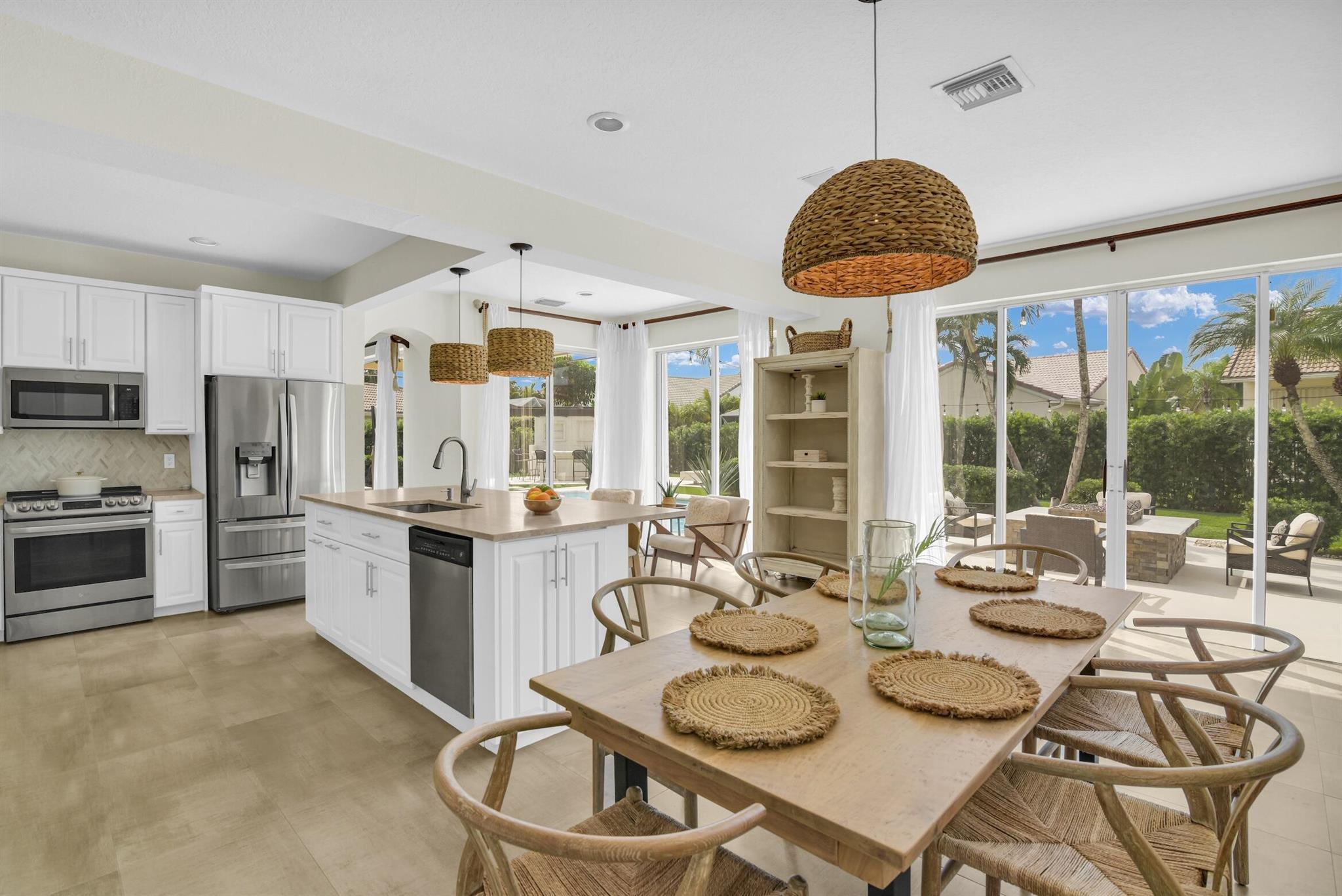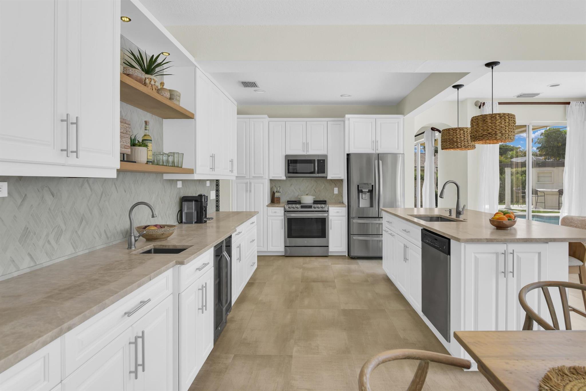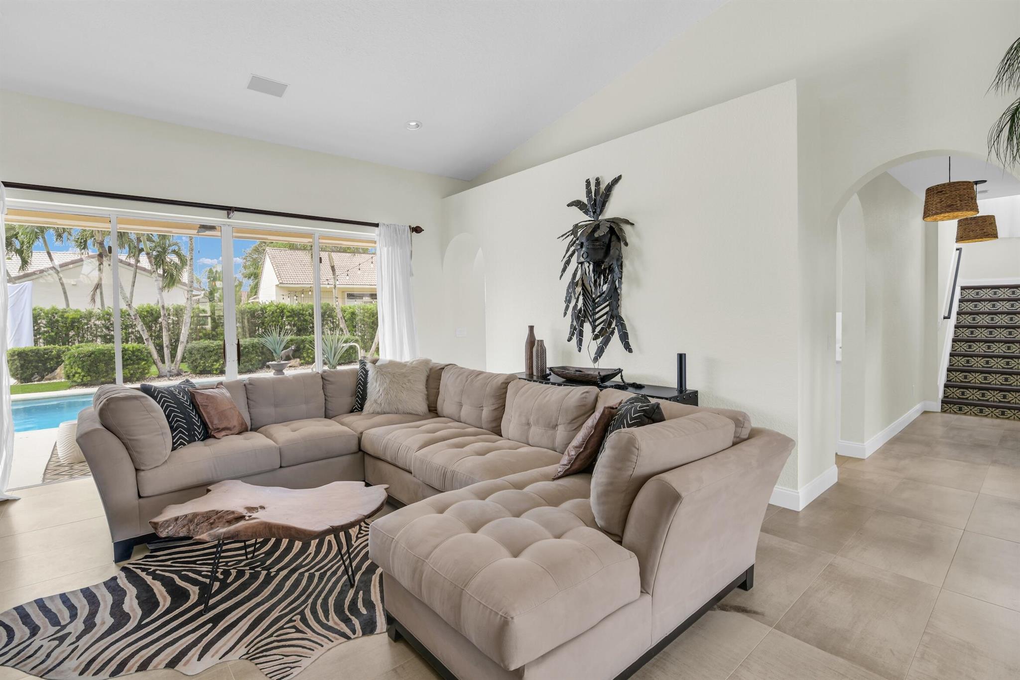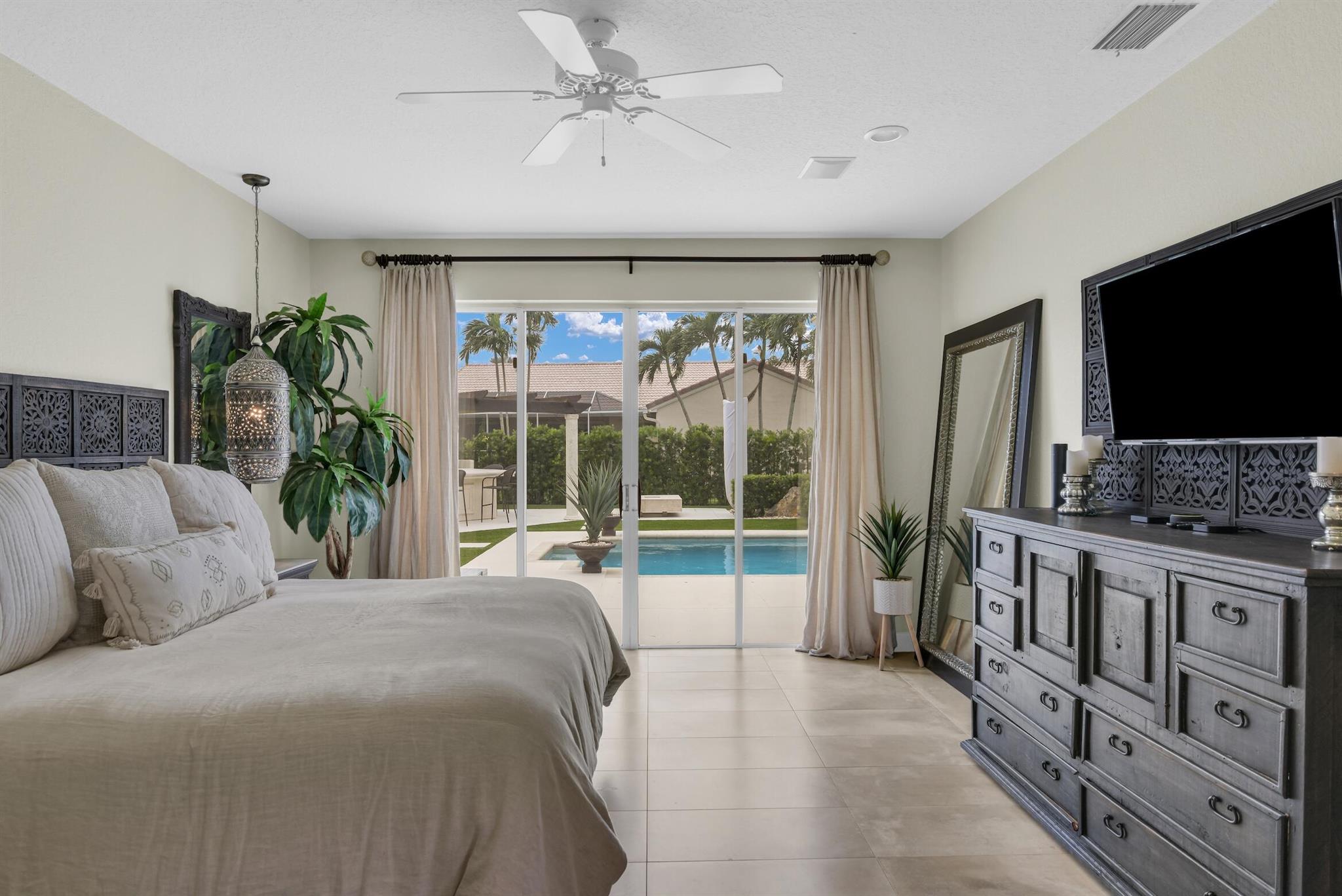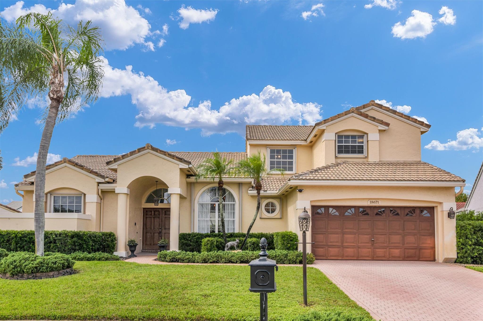 Magazine worthy 5 bed 2.5 bath spectacular home located in a Cul-de-Sac. Quiet and peaceful with no thru traffic! This home exudes elegance and decorator ambience in and out! Neutral light and bright. Large porcelain tiles wall to wall on main area with wood look on stairs and 2nd level - No Carpets here! Recently remodeled and expanded kitchen with tons of storage, pull outs, large Island, leather look Taj Mahal granite counters and marble backsplash. All 3 bathrooms have been beautifully remodeled. Fully fenced Resort style yard with artificial turf, a beautiful pool, outdoor shower (hot & cold H2O) Pergola bar/cook area, this is an entertainment paradise.! Accordion shutters, AC units are 2023 & 2018, Roof 2011. pool re-marcite apprx. 5 years Low HOA fees include Cable & Wi-F...