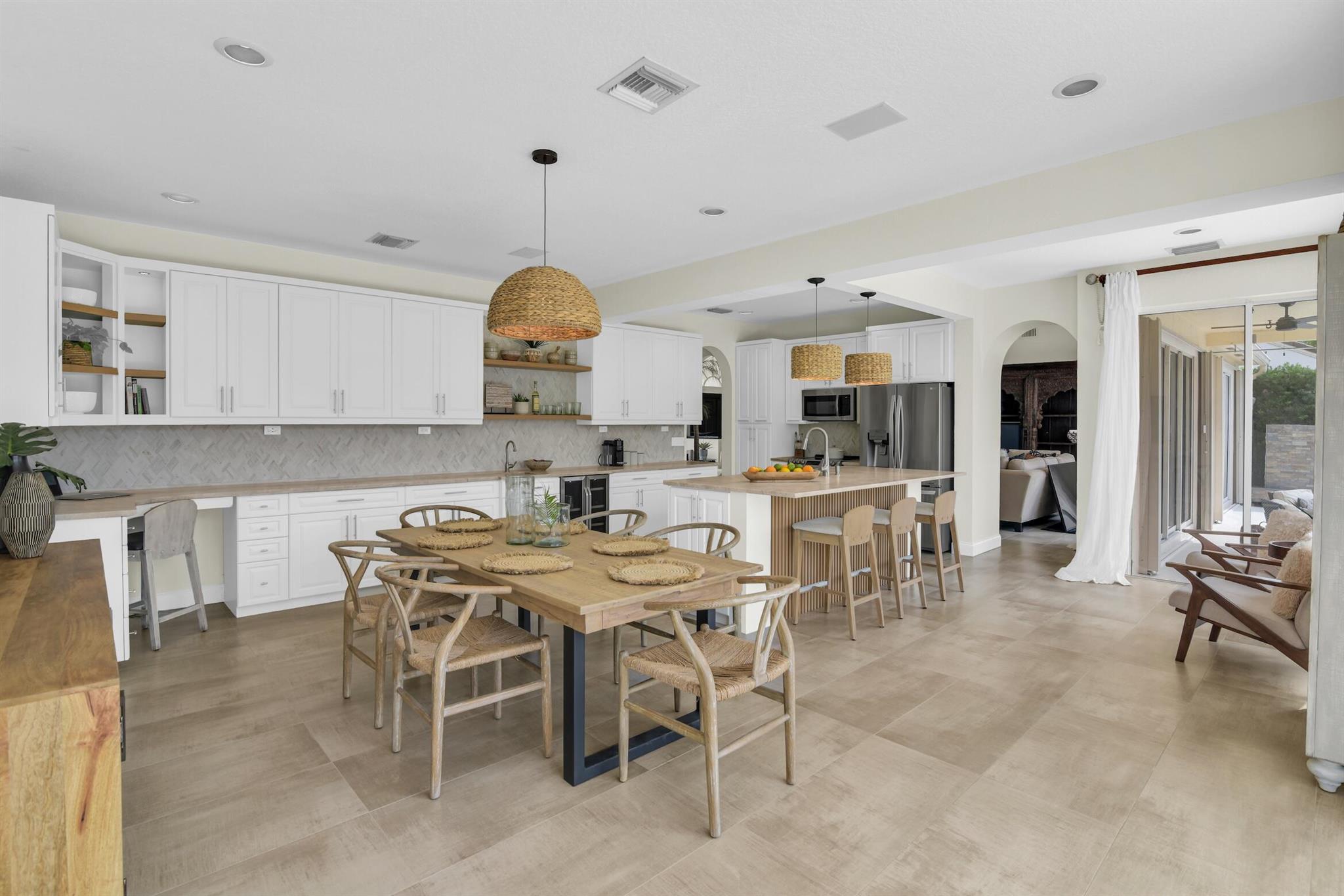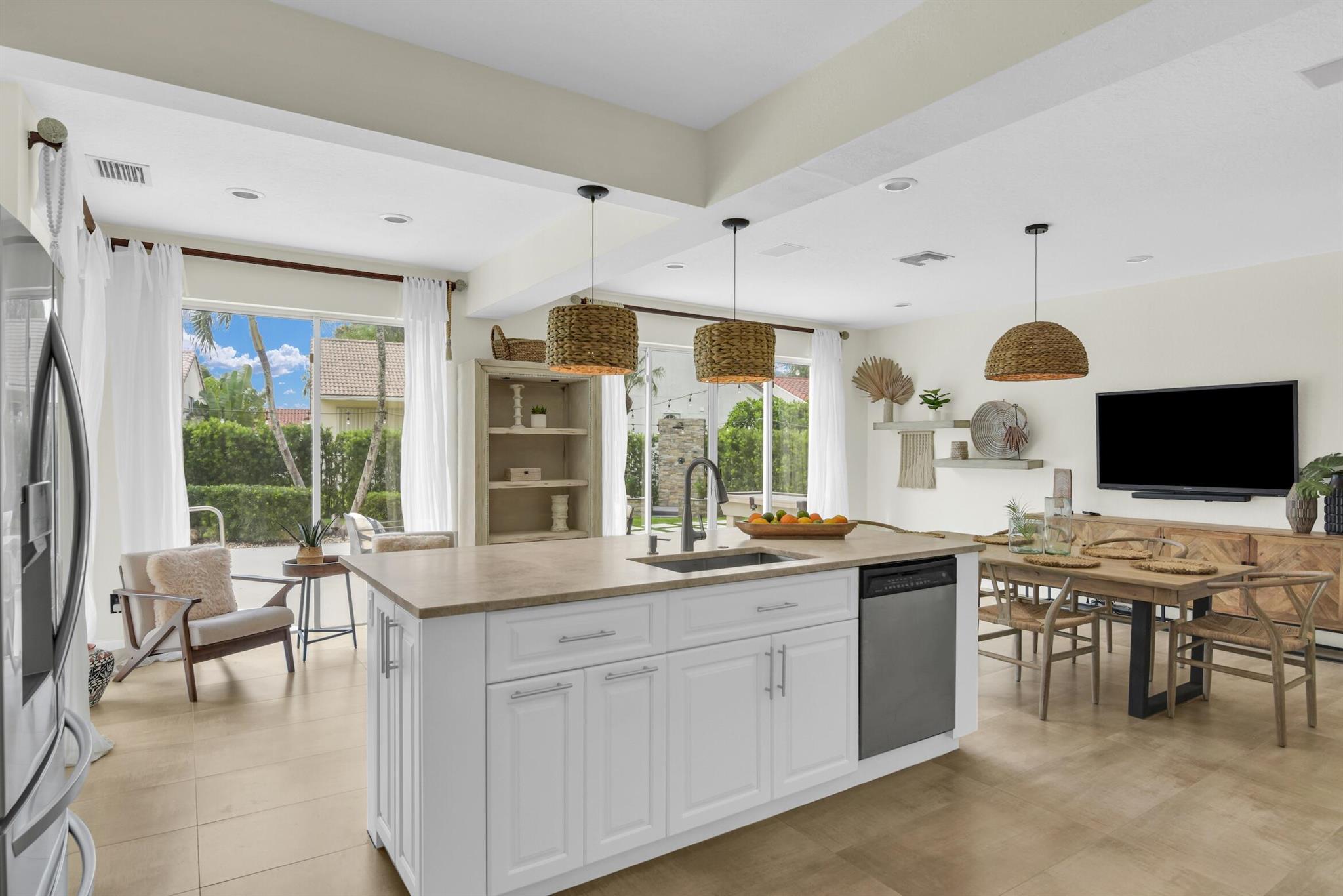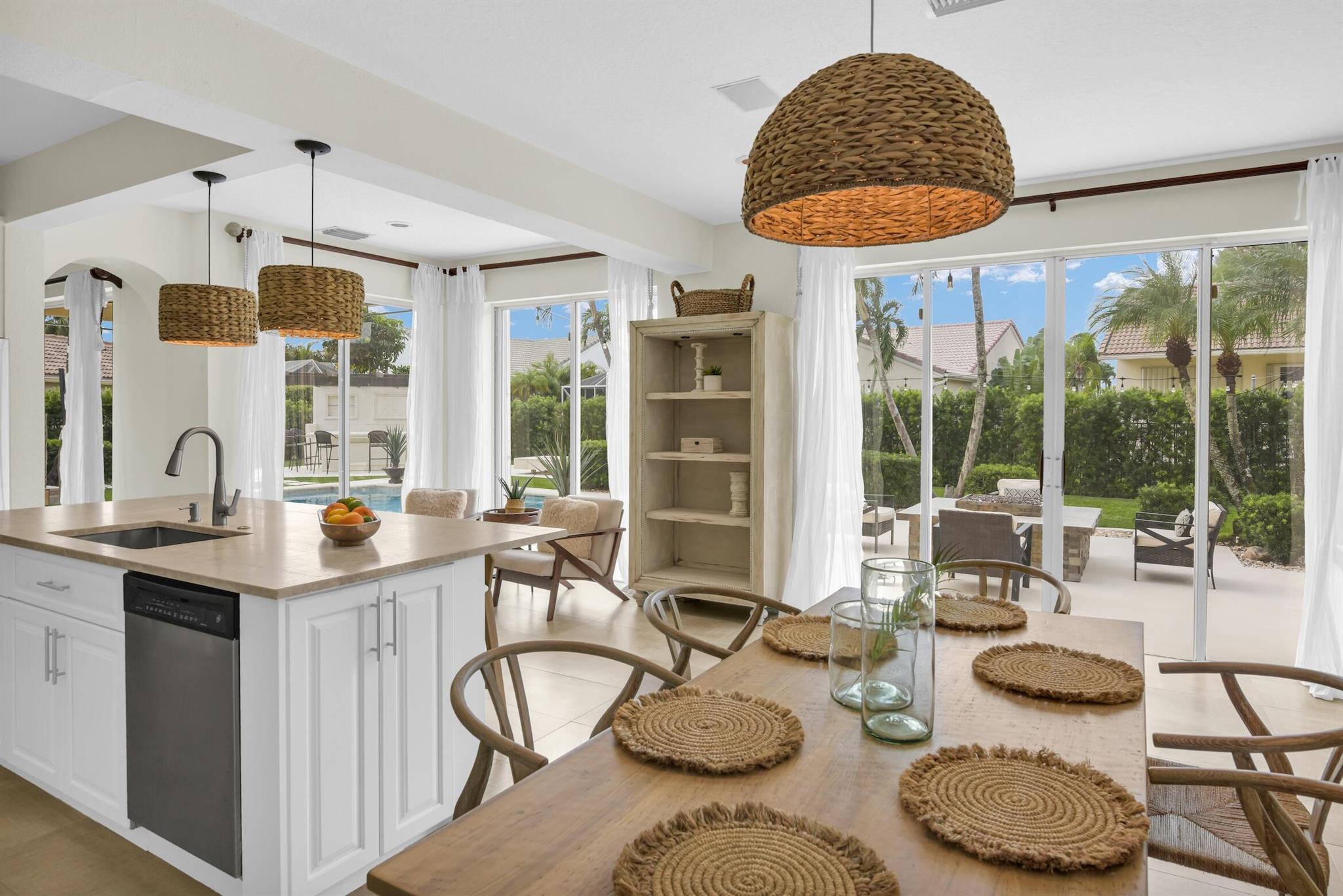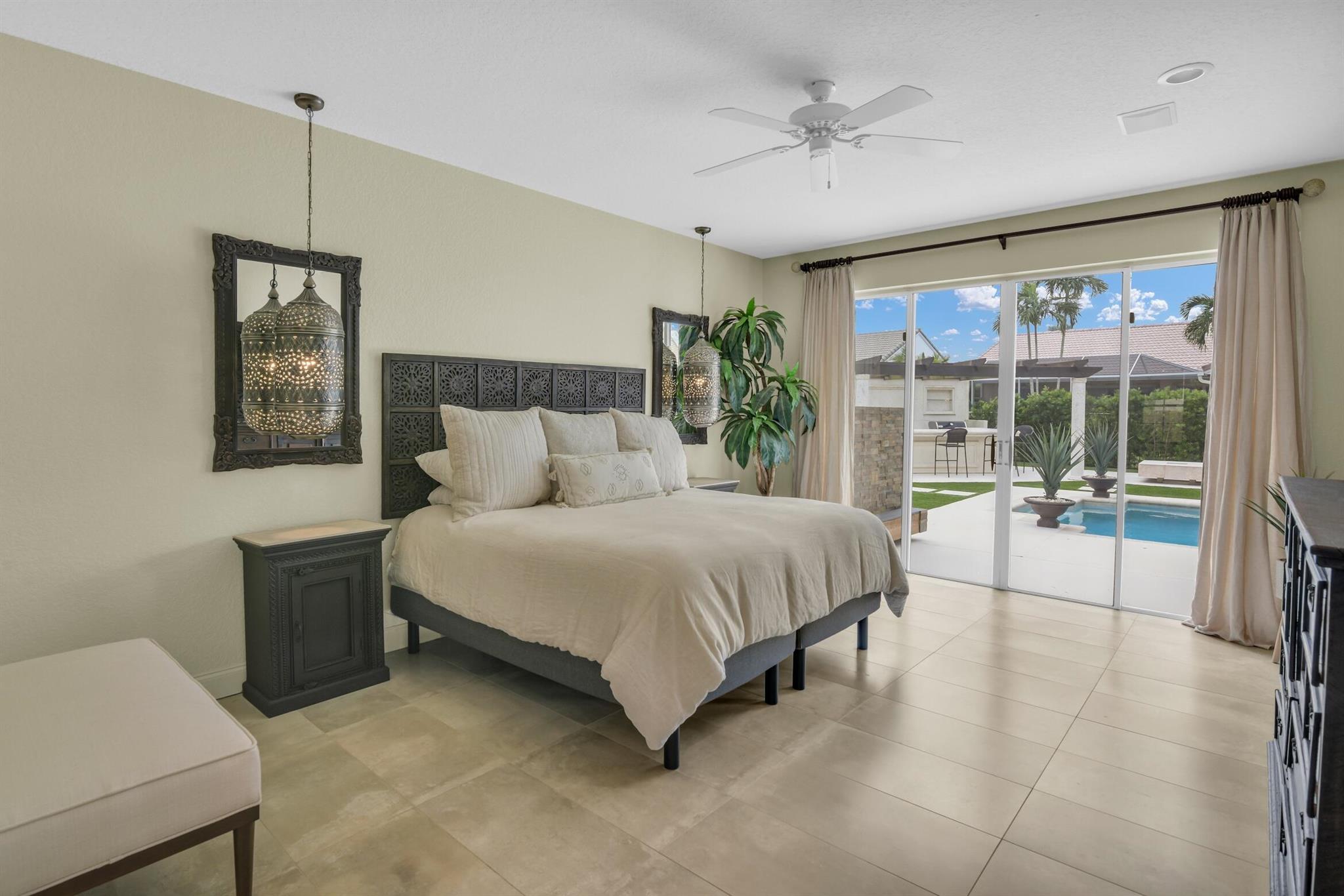 Magazine worthy 5 bed 2.5 bath spectacular home located in a Cul-de-Sac. Quiet and peaceful with no thru traffic! This home exudes elegance and decorator ambience in and out! Neutral light and bright. Large porcelain tiles wall to wall on main area with wood look on stairs and 2nd level - No Carpets here! Recently remodeled and expanded kitchen with tons of storage, pull outs, large Island, leather look Taj Mahal granite counters and marble backsplash. All 3 bathrooms have been beautifully remodeled. Fully fenced Resort style yard with artificial turf, a beautiful pool, outdoor shower (hot & cold H2O) Pergola bar/cook area, this is an entertainment paradise.! Accordion shutters, AC units are 2023 & 2018, Roof 2011. pool re-marcite apprx. 5 years Low HOA fees include Cable & Wi-F...