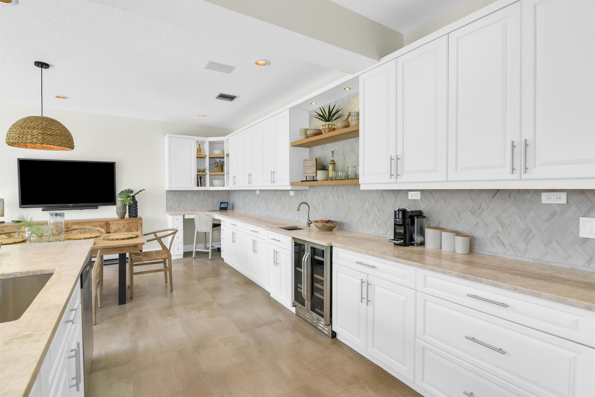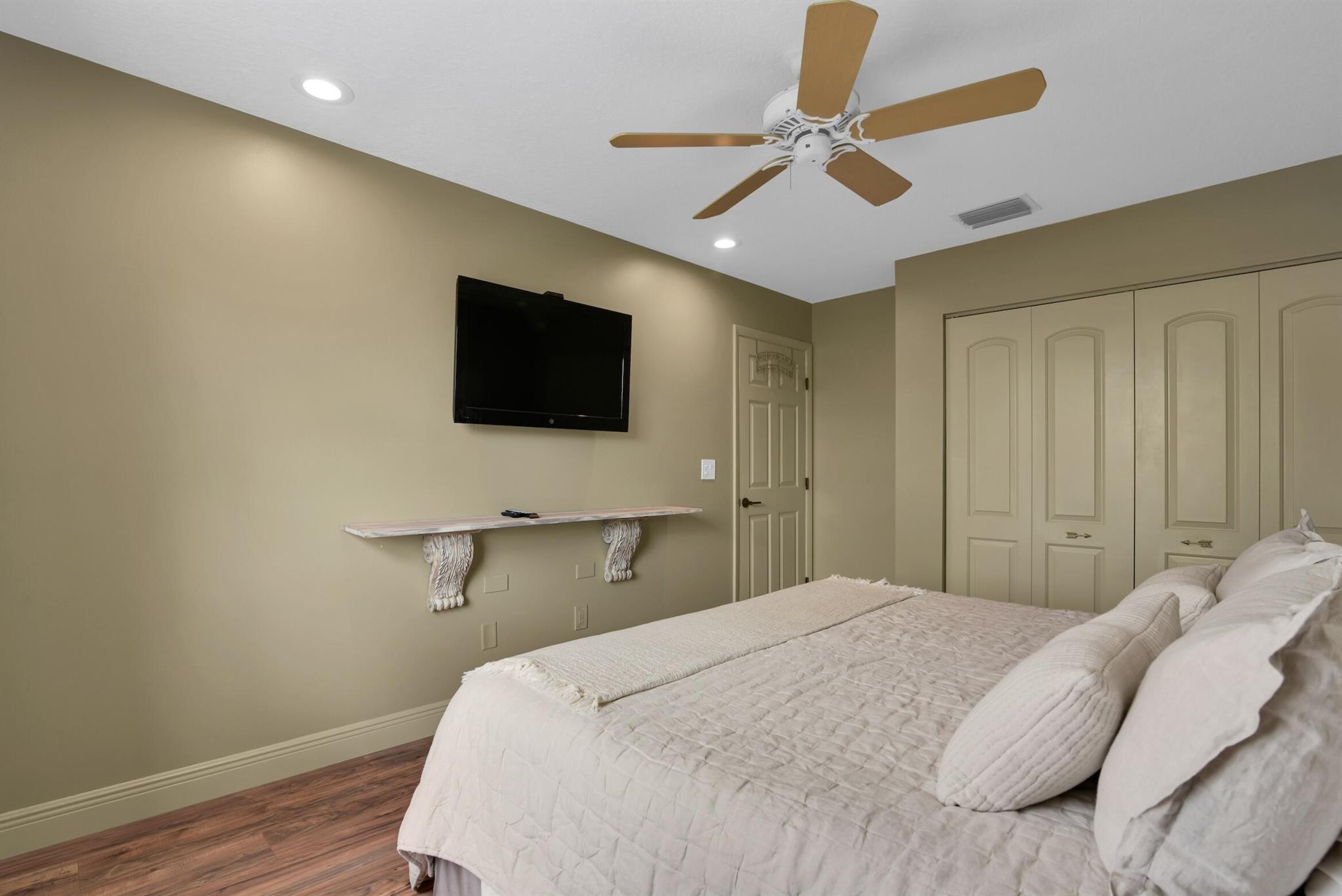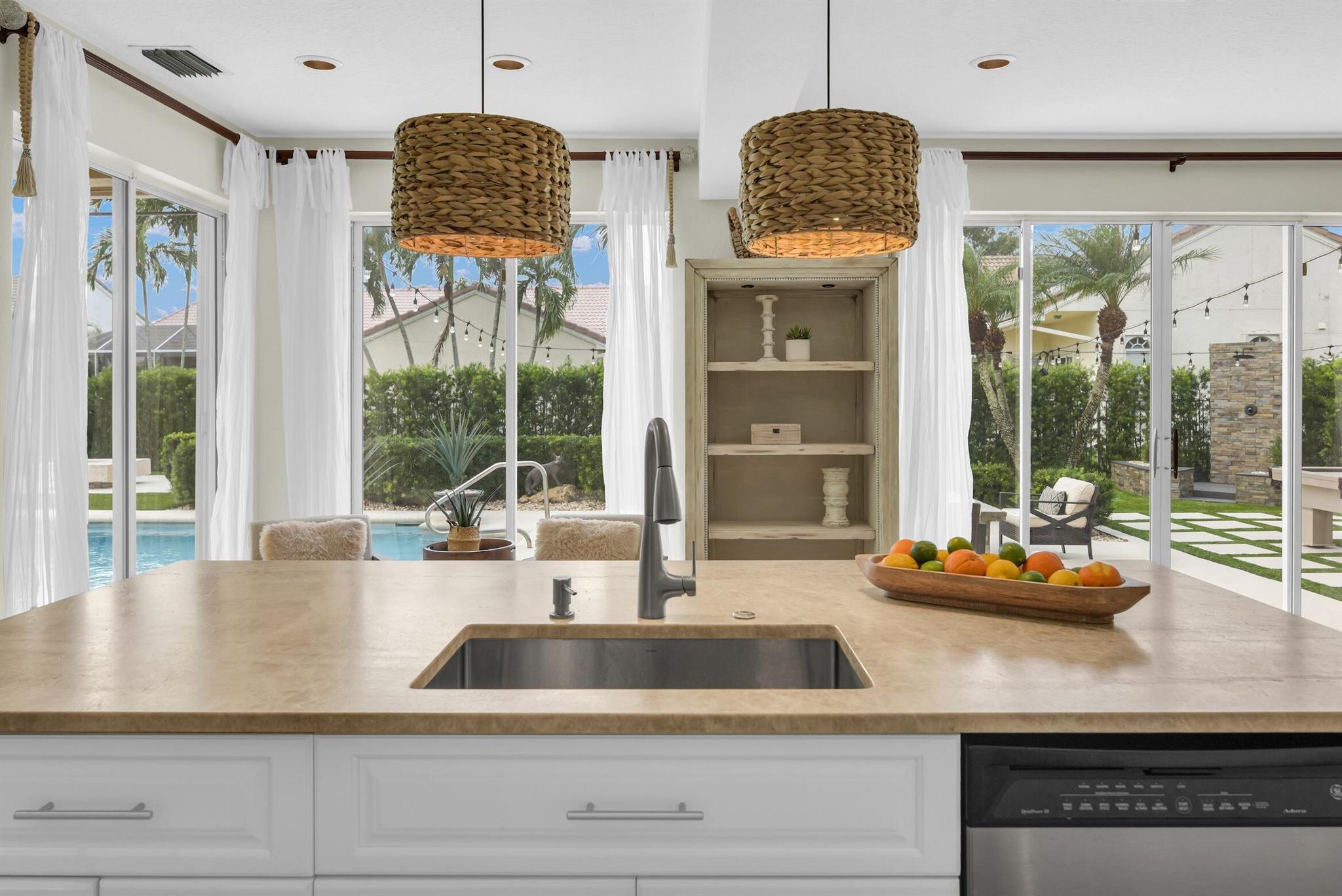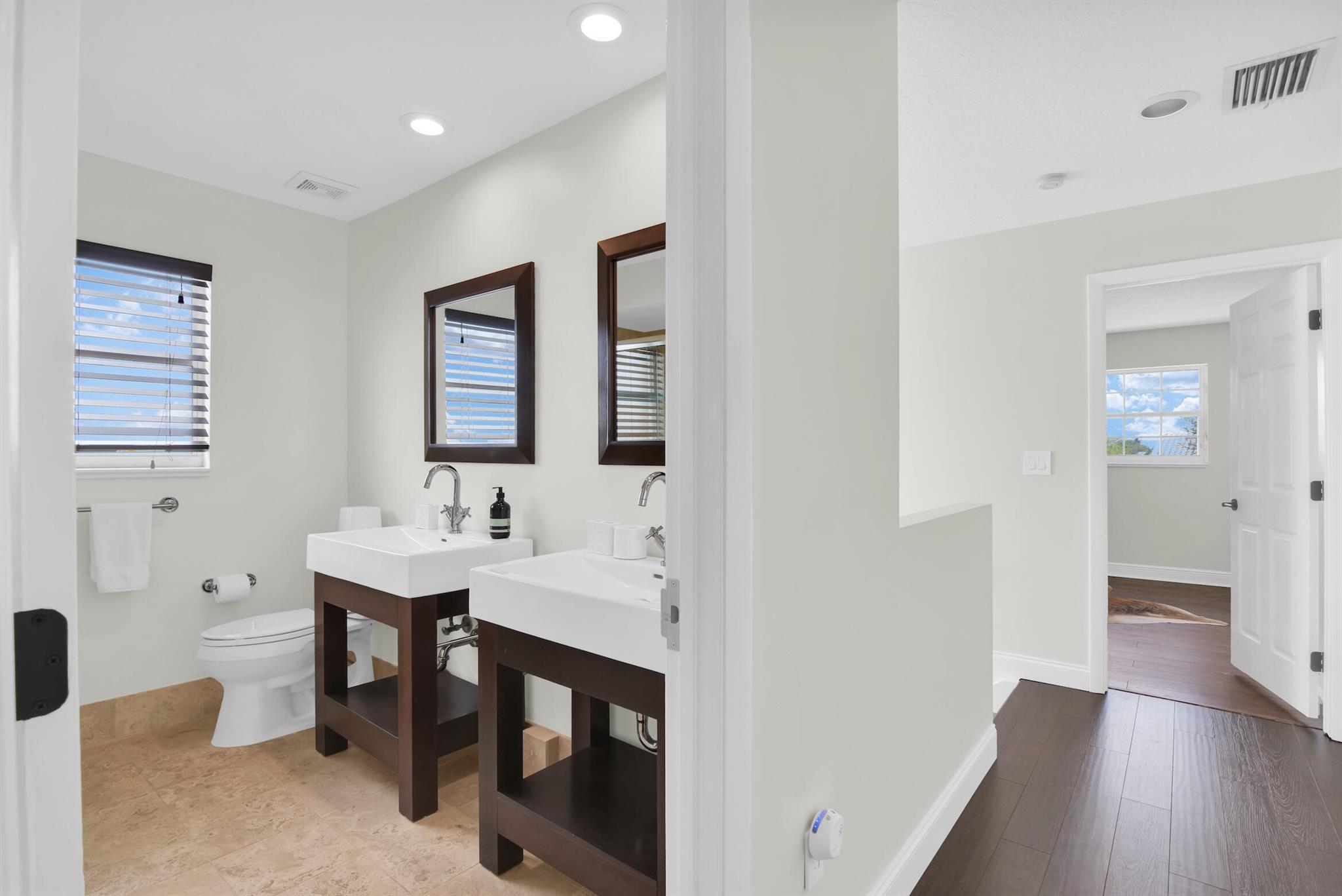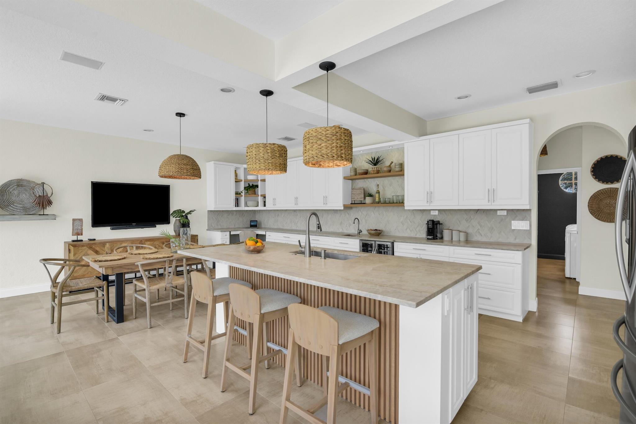 Magazine worthy 5 bed 2.5 bath spectacular home located in a Cul-de-Sac. Quiet and peaceful with no thru traffic! This home exudes elegance and decorator ambience in and out! Neutral light and bright. Large porcelain tiles wall to wall on main area with wood look on stairs and 2nd level - No Carpets here! Recently remodeled and expanded kitchen with tons of storage, pull outs, large Island, leather look Taj Mahal granite counters and marble backsplash. All 3 bathrooms have been beautifully remodeled. Fully fenced Resort style yard with artificial turf, a beautiful pool, outdoor shower (hot & cold H2O) Pergola bar/cook area, this is an entertainment paradise.! Accordion shutters, AC units are 2023 & 2018, Roof 2011. pool re-marcite apprx. 5 years Low HOA fees include Cable & Wi-F...