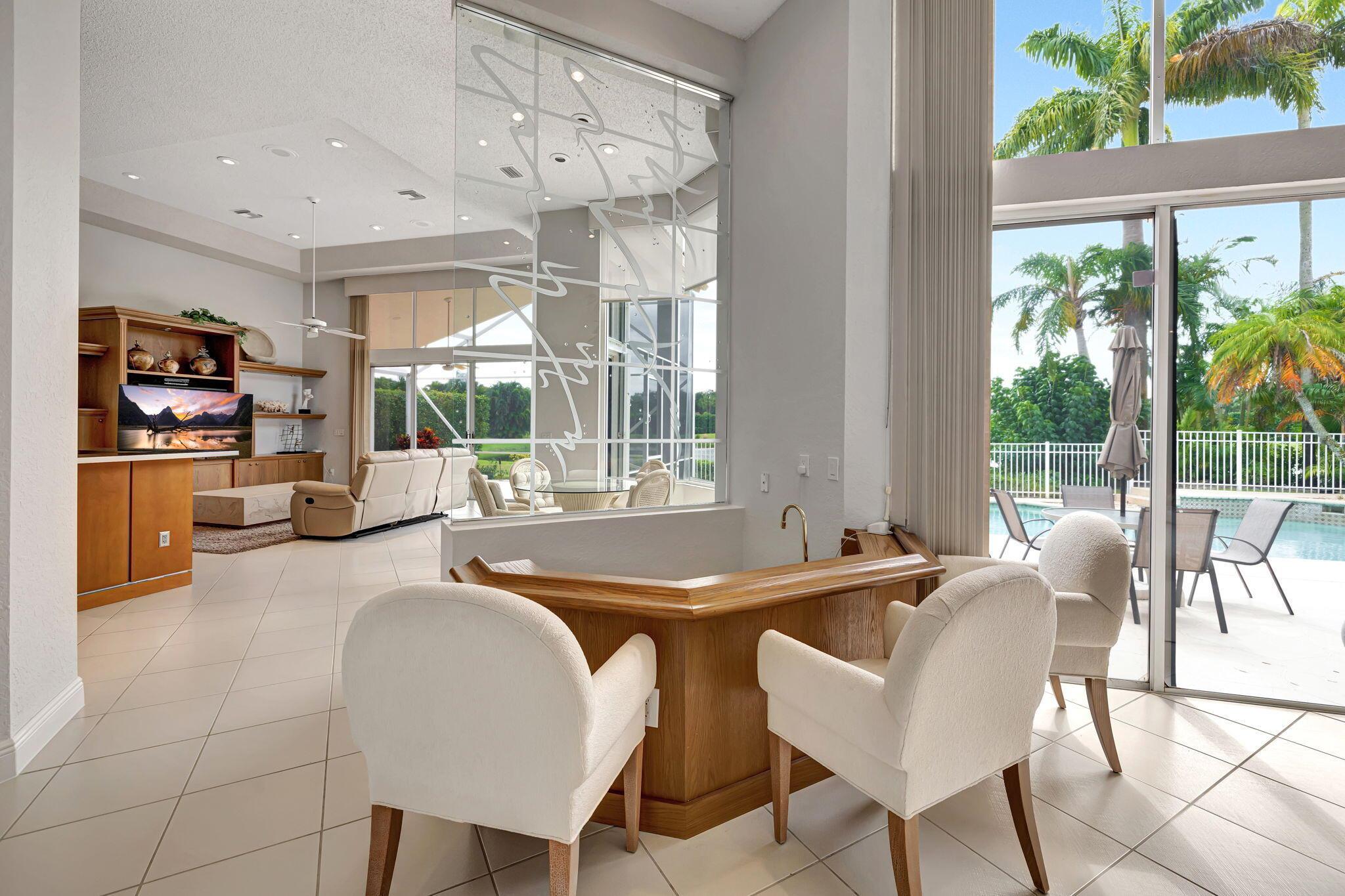 Three bedrooms plus an office. Two guest bedrooms are both en-suites. Fabulous layout for your overnight guests, 20 foot volume ceilings through all the main areas. This very open floor plan offers elegance and convenience. No steps within this thoughtfully created floorplan. A very private lakeview provides a serene view without any interference from golf cart paths or traffic. True walking distance to the famous Stonebridge County Club and all of the amazing amenities that Stonebridge offers. Open pool area for catching the best sunlight and a very spacious screened-in patio for those that want some covered access to the outdoors. Move right in or you can create your own Stonebridge haven.