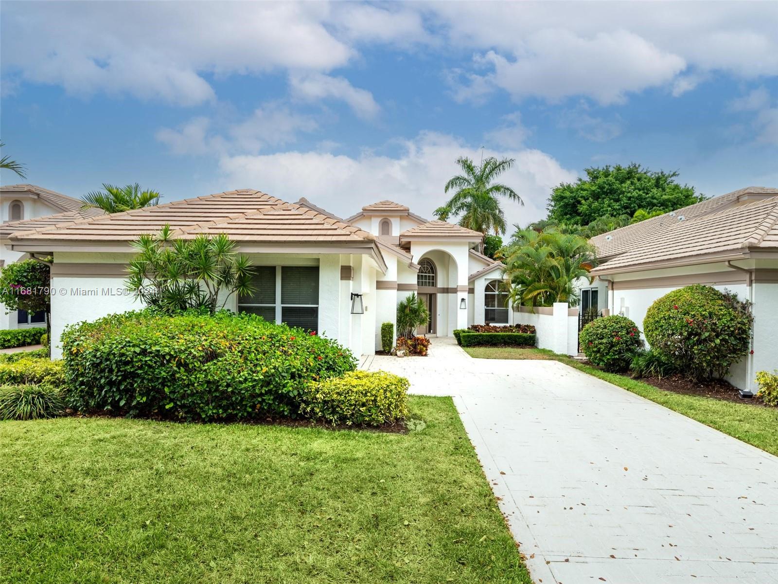 Welcome to this stunning 1,838sf 3 bedroom, 2 bathroom single-family home in the coveted Whisper Trace neighborhood of Broken Sound Country Club. Step into the open floor plan with 16' ceilings, showcasing tile and wood flooring throughout. The spacious kitchen boasts wood cabinets, granite countertops, and stainless steel appliances. Enjoy the privacy in your backyard with pool and plenty of room to entertain. 9yr old roof. This home offers the perfect blend of comfort and convenience. Enjoy the Broken Sound lifestyle.