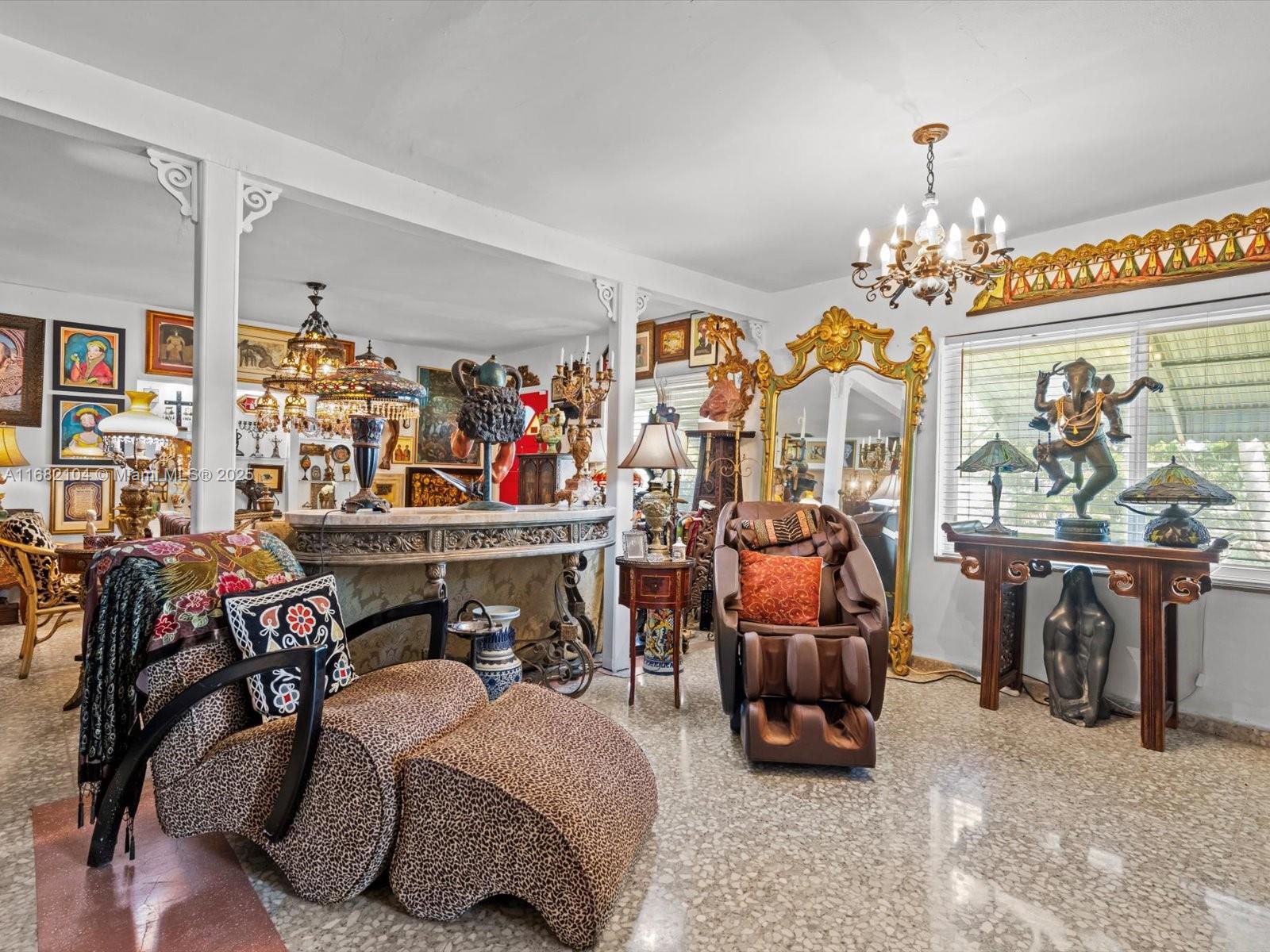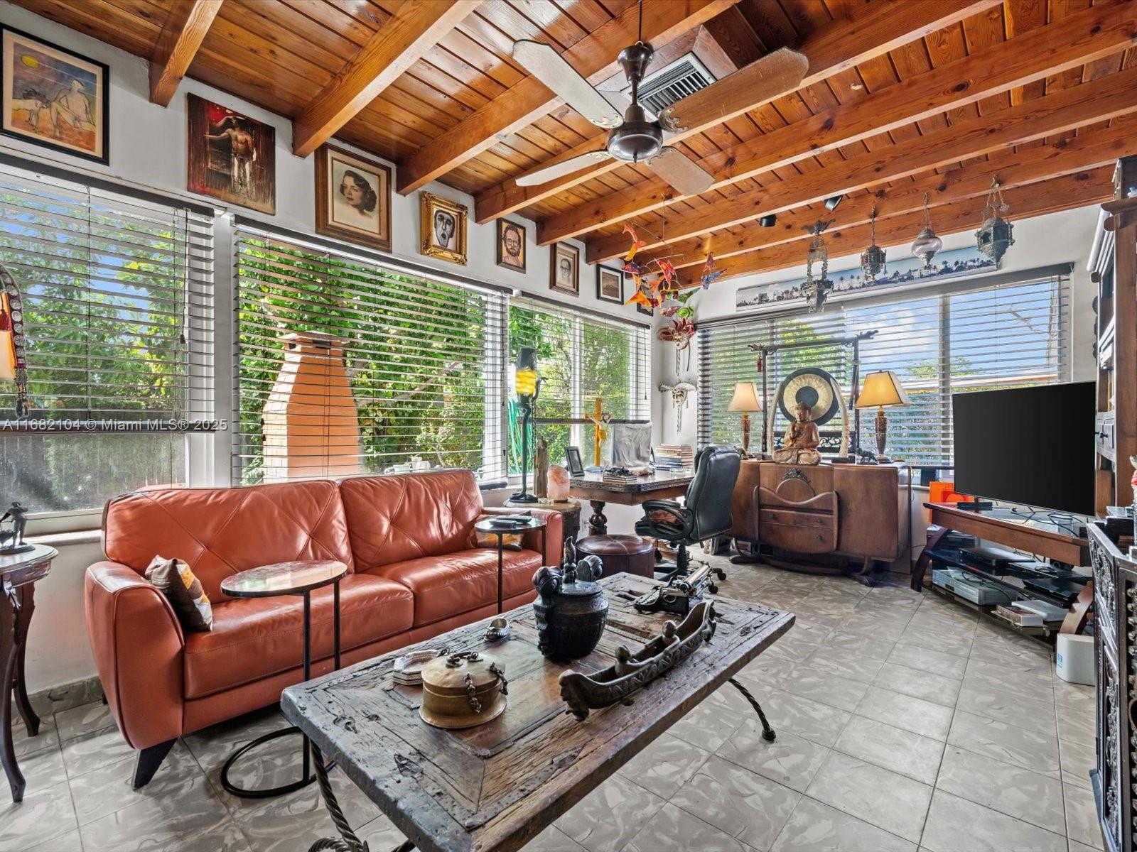 Major price reduction on this gem on the edge of Coral Gables! Versatile layout for those seeking rental income or families alike! This 3-bed, 3-bath home has 2,179 sq ft of air-conditioned living space. The house has a spacious layout with tile floors, updated kitchen and bathrooms, and a large sunroom with wood ceilings and abundant natural light. The layout offers versatility for families or extra space to work from home. The outdoor space has a screened patio, lush landscaping, avocado and mango trees, and a brick oven. Perfect central location for access to all of Miami.
