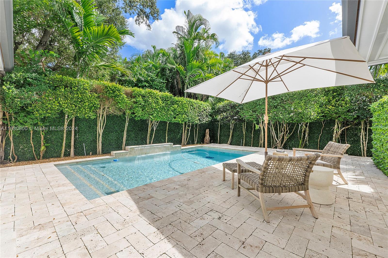 NO NEED TO TOUCH A THING!! Exquisite designer home in Coral Gables masterfully upgraded with the strictest attention to details. This split bedroom floorplan has 2-beds, 2-baths, wood floors, impact windows and doors, newer roof, updated bathrooms, gorgeous updated kitchen with all new Stainless Steel appliances with induction cooktop, new interior wood shutters, custom closets, new washer and dryer, and one-car garage. Backyard has pool with waterfall, heater, new pool pump, beautiful travertine paver deck, privacy fence, landscaping and landscape lighting. Perfect location, minutes to Coconut Grove, Coral Gables, and South Miami.