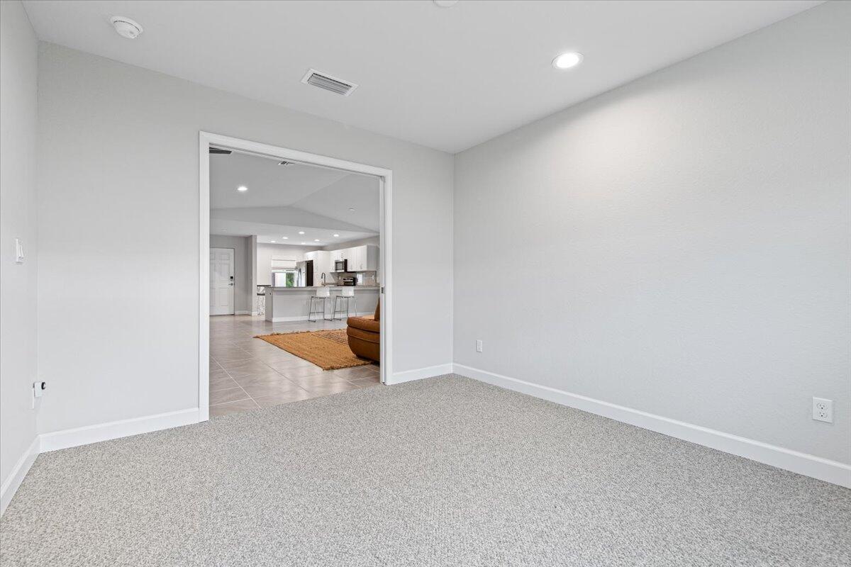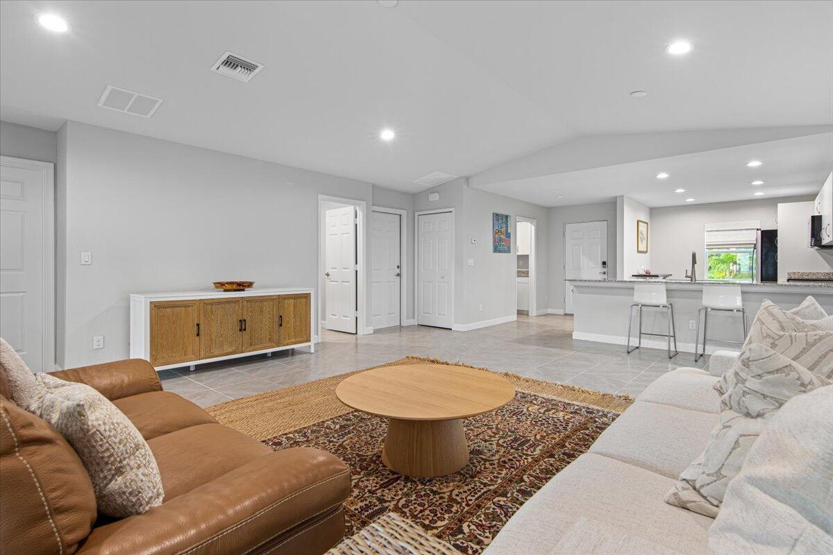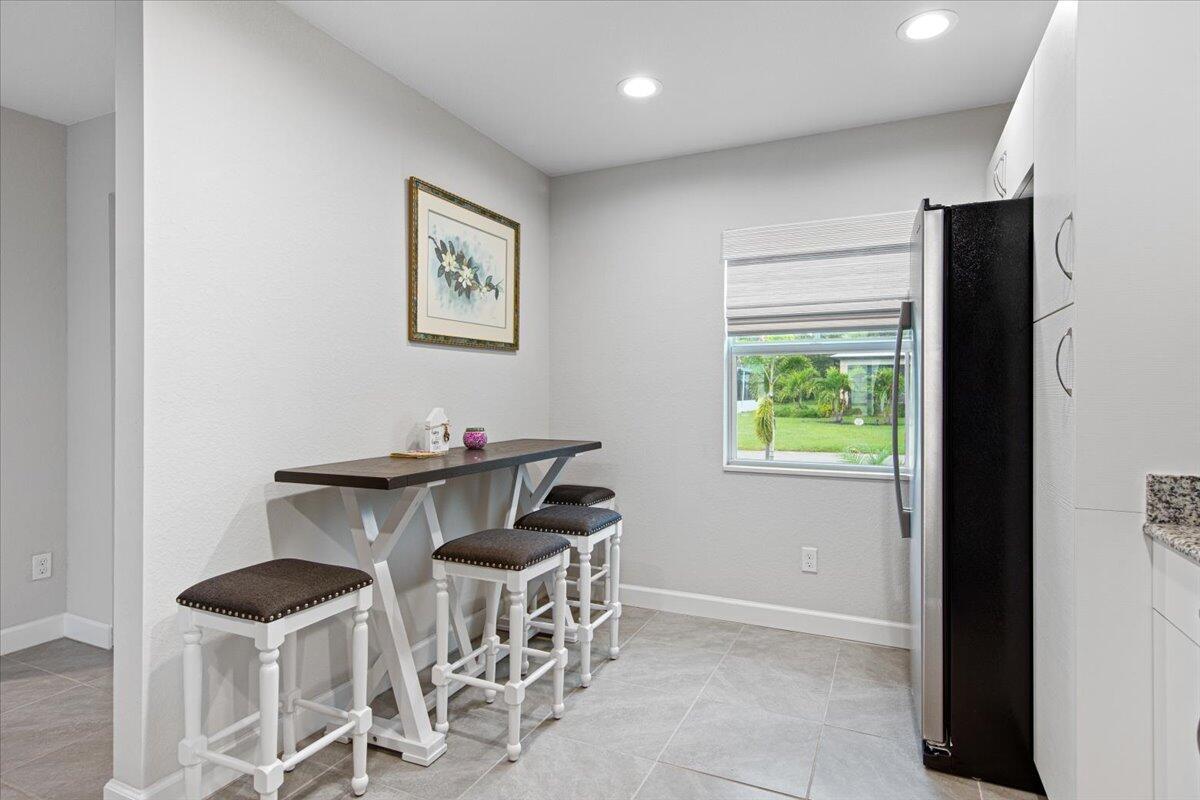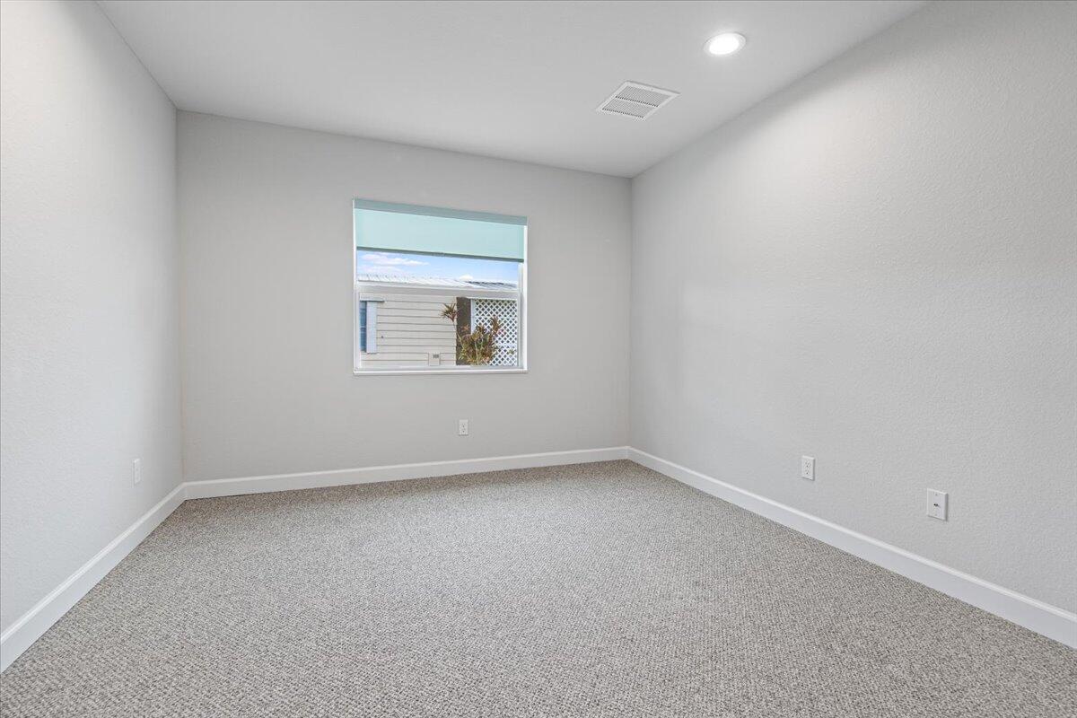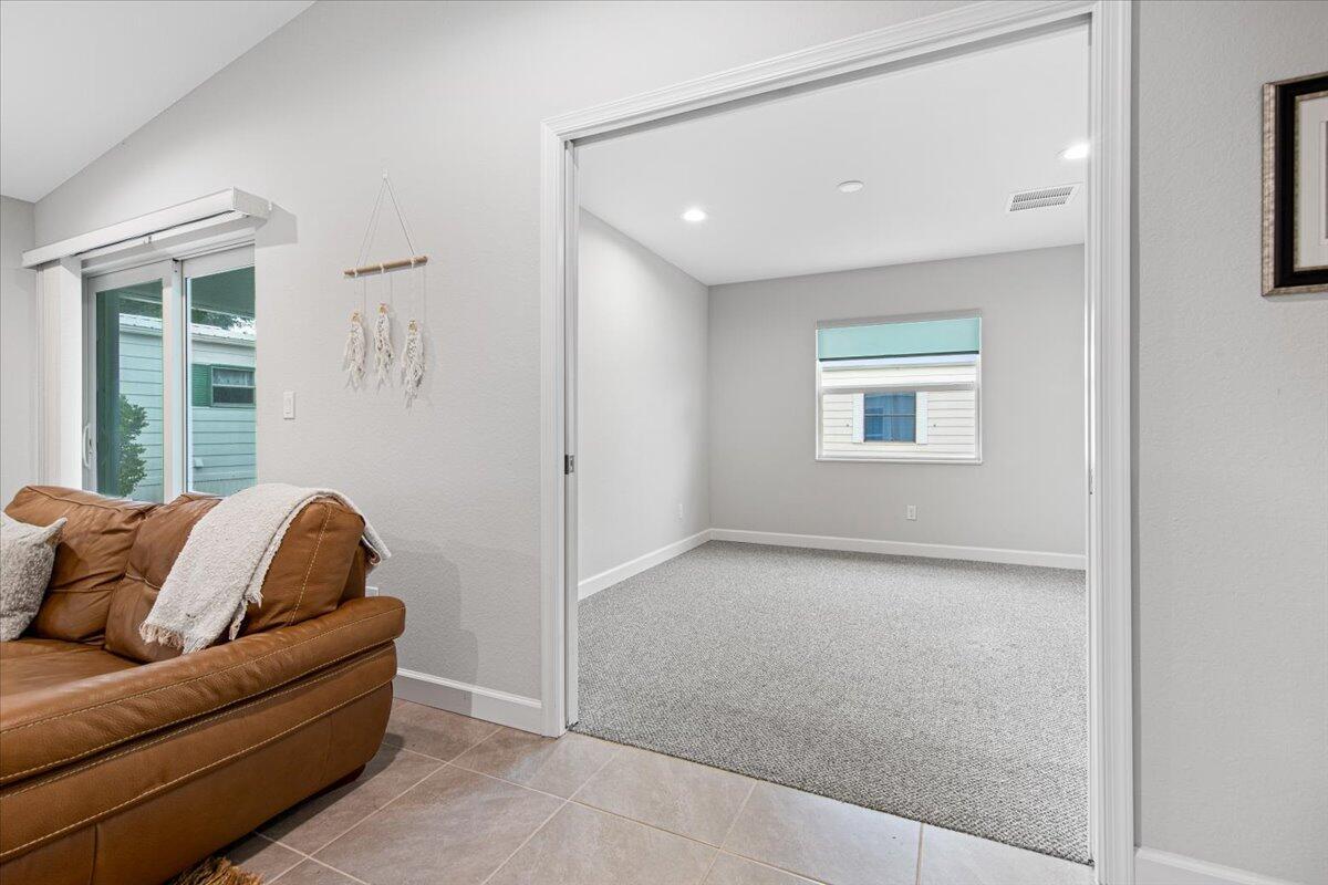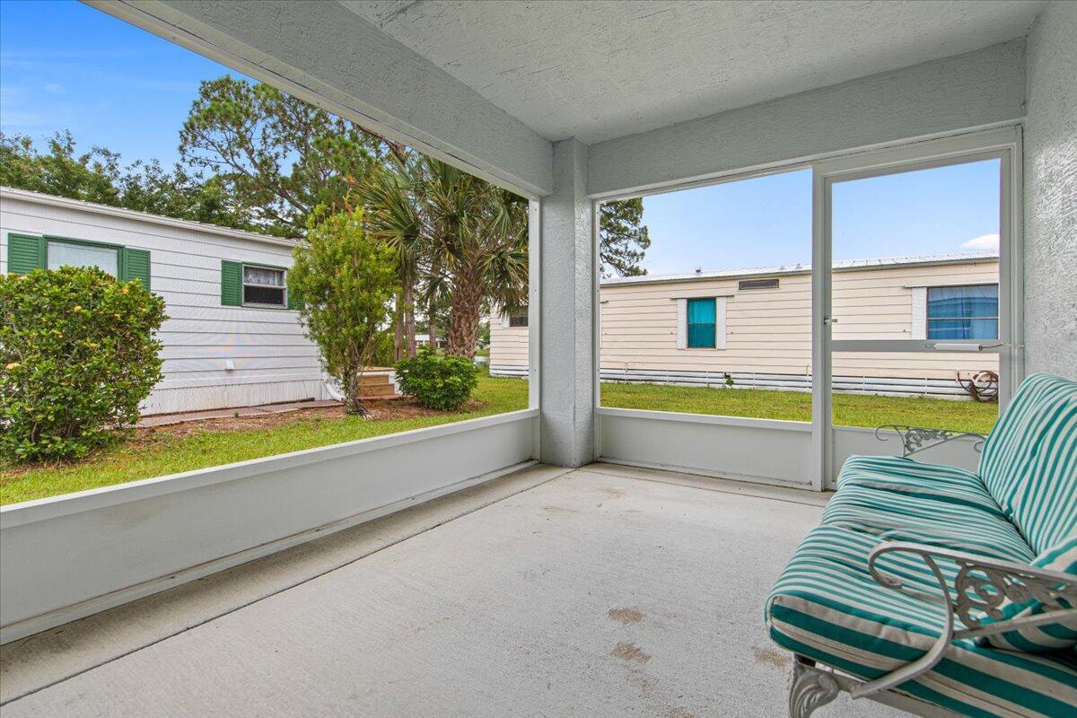 Adorable Cottage Model 1 bedroom 1.5 bath with den home. Home is only 1 year old. Tile through out main living and carpet in bedroom and den. Screened in patio. Home boast open concept with large bar in kitchen as well as eat in space. White cabinets with granite countertops in kitchen. Laundry is inside home. Home sits on a corner lot in the beautiful Spanish Lakes 55+community. Community is a land lease community. Lawn care and trash removal included in lot rent. 2 pools, tennis, pickleball, bocceball, shuffle board. club house and much more.