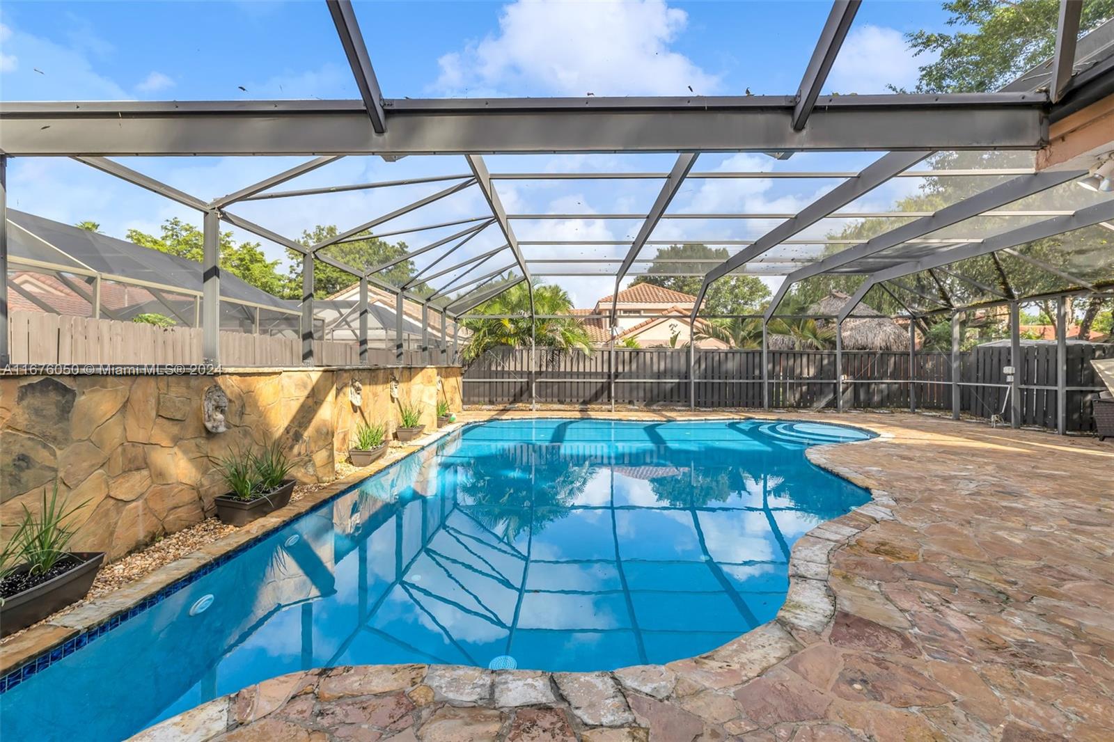 Nestled at the end of a quiet cul-de-sac in the tranquil neighborhood of Cross Creek, this elegant two-story home offers a luxurious retreat. Spanning 2,186SF of interior living space, including 3 bedrooms, 2.5 baths and a versatile loft area perfect for a den, office or studio. An updated chef's kitchen features granite counters and stainless steel appliances, a cooking and serving island that opens to the family room. Enjoy the serenity of a spacious 11,000SF private yard, free-form pool, and large covered patio perfect for entertaining or relaxing. New interior paint provides a crisp clean look and a modern gas fireplace elevates the ambiance of this spectacular home. Complete accordion hurricane shutters. Conveniently located to everything the South Florida lifestyle has to offer.