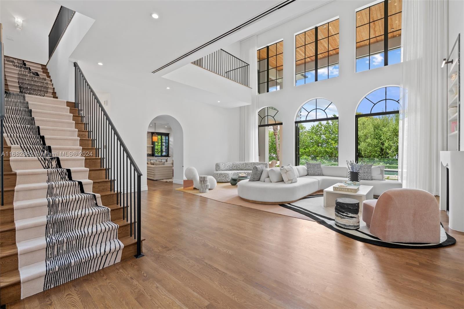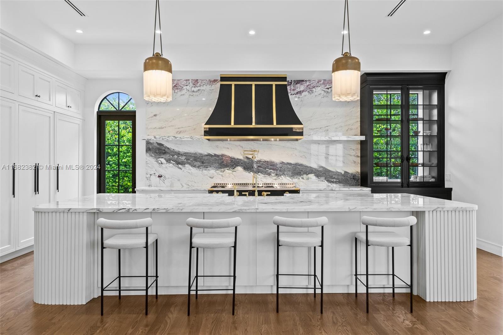 This one-of-a-kind Mediterranean waterfront haven boasts 6 bedrooms, 6.5 bathrooms, and 7,948 square feet of meticulously crafted living space by renowned interior designer, Ali Budd. With 112 feet of water frontage, this fully furnished estate was uniquely designed to be both a piece of art and a family home. The dreamy kitchen is curated with Downsview cabinetry, Italian marble, and a La Cornue range. All bedrooms are oversized with walk-in closets. European wallpaper from exclusive brands like La Maison Pierre Frey and incredible hand-painted work of de Gourney adorn the walls. The exterior of the property was fully redesigned and features AstroTurf, a custom glass pool fence, all-new trees/hedges, and stainless steel trellises for the Bougainvilleas surrounding the property.