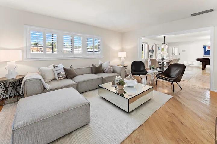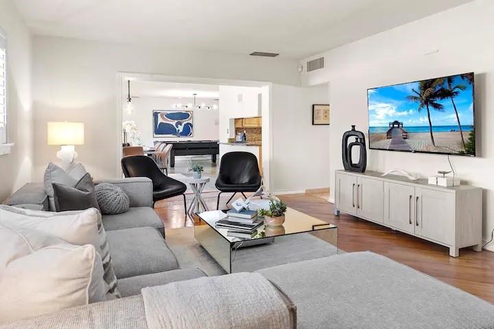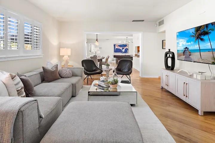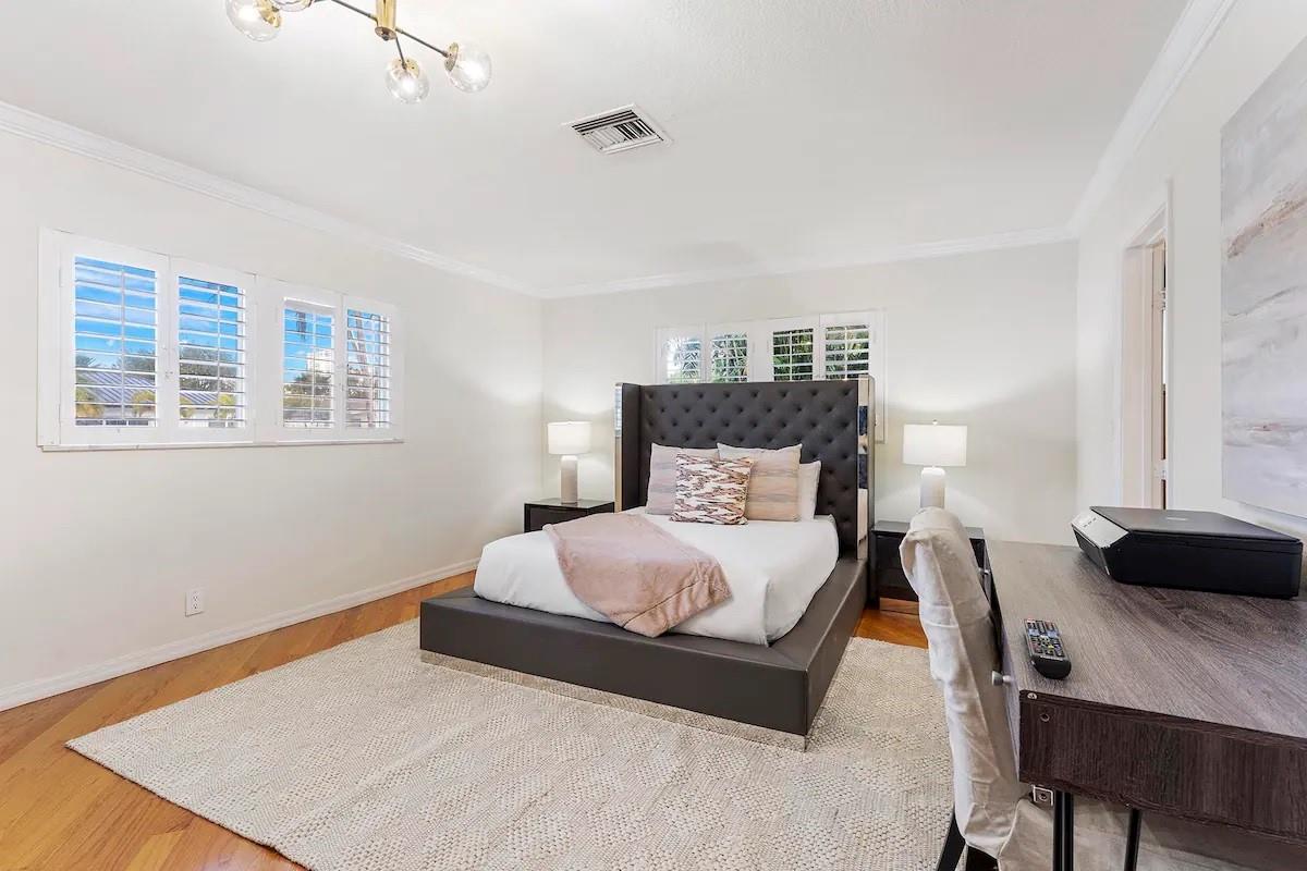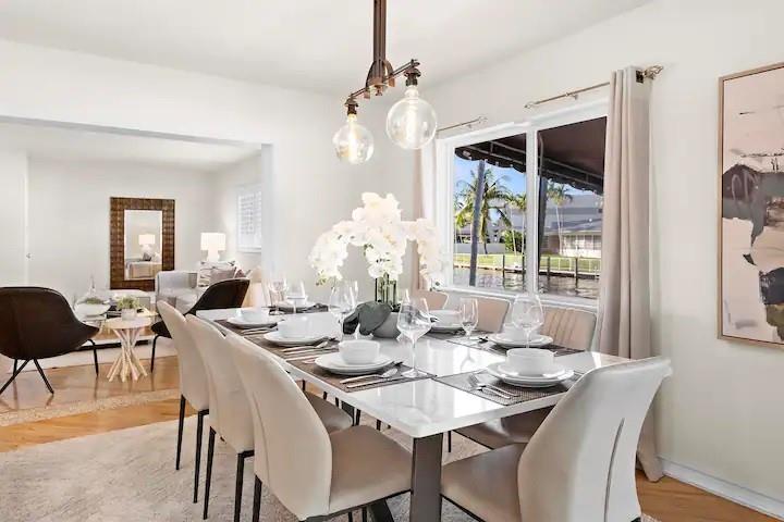 NO FIXED BRIDGES! Welcome to your dream home in Bermuda Riviera! This unique waterfront property in an exclusive Intracoastal community offers a luxurious lifestyle at an exceptional value. Featuring 5 spacious bedrooms, 4.5 bathrooms, and 2,946 sq ft of living space with plenty of room for family and entertaining. Private oasis with a sparkling pool (in front) and an 80-ft dock with 100AMP connection, perfect for boating enthusiasts. Just a 10-minute walk or 5-minute bike ride to the beach, you'll enjoy the best of coastal living. Inside, genuine hardwood floors and abundant natural light create a warm, inviting atmosphere. Roof, plumbing from 2009.