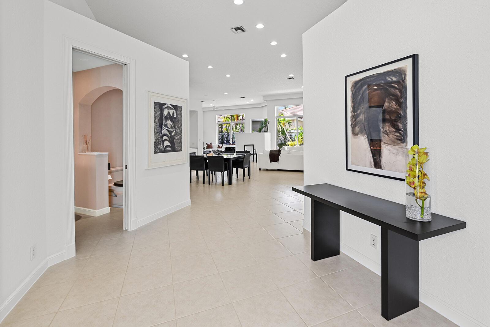 Rarely available & highly desirable stunning 3 bedroom, 2.5 bath single story gem in prestigious Woodfield Country Club is a must see. Located in Mayfair, this modern & elegant home features high ceilings, a light-filled open layout & a private pool perfect for entertaining. The neutral tile floors & white walls will complement any design. Enjoy a beautifully renovated chef's kitchen equipped with top-of-the-line Miele appliances, the dining room features a custom credenza & built in cabinetry. The updated laundry room with new washer & dryer is adjacent to the kitchen. The luxurious primary suite has glass sliding doors & plantation shutters, his & her custom closets & an opulent bath with a soaking tub & shower. Enjoy your private backyard oasis with pool, patio & meticulous landscaping