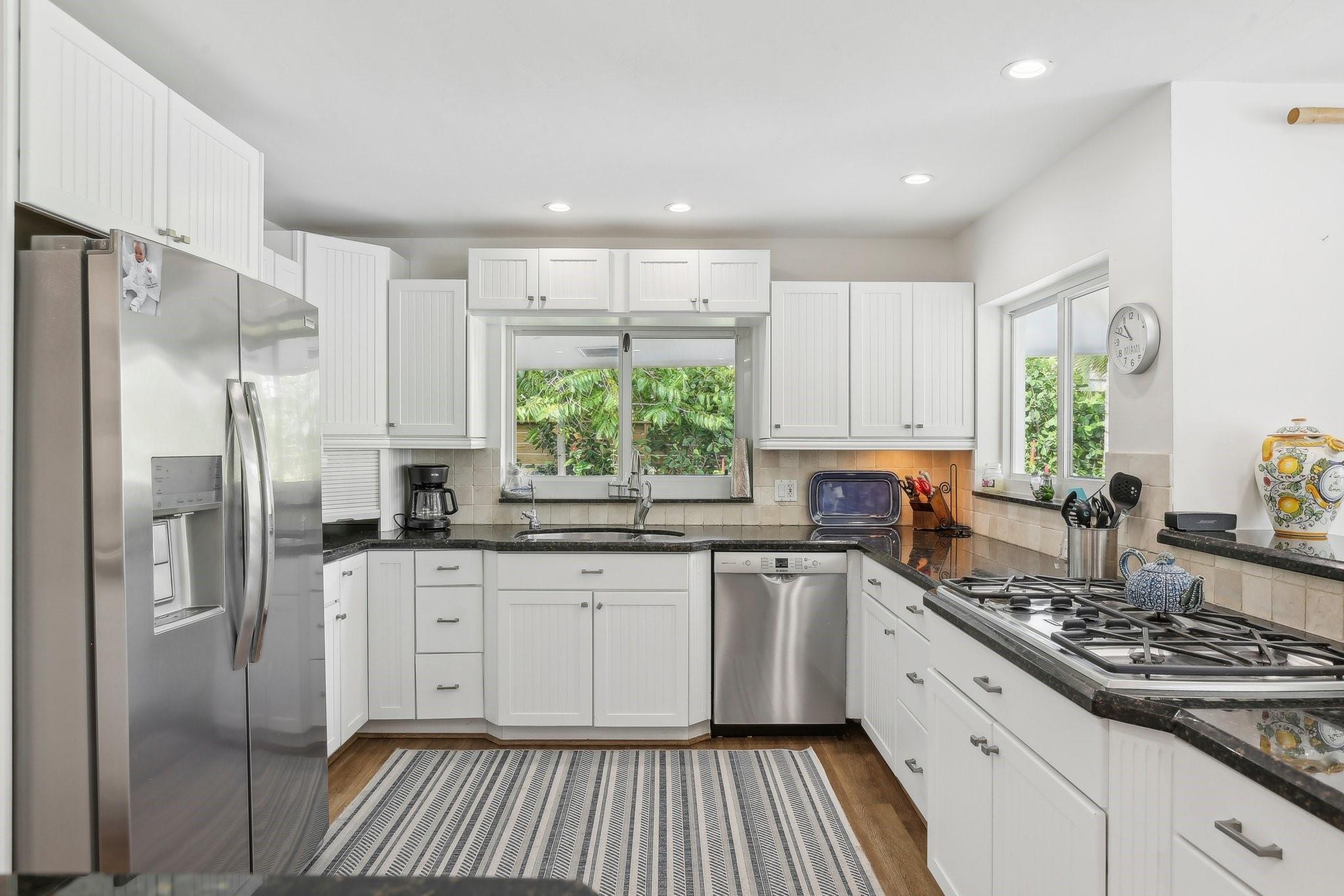 This beautifully renovated 3-bedroom, 2.5-bath home offers 100 feet of waterfront with a 90' dock and a spacious turning basin, approximately 140 feet across, boat lift included. Convenient access to shops and restaurants, and located in the highly desirable Bayview School District. The stunning kitchen is designed for both style and function, featuring a gas stove, double convection ovens, granite countertops, a wet bar, and a wine fridge—perfect for entertaining. The open-concept dining area flows effortlessly into two spacious living rooms, creating the ideal layout for gatherings. Step out your sliding glass doors to a spacious pool, dock, boat lift, waterfront living at it's finest. Large airconditioned garage. Best waterfront lot in Coral Ridge!