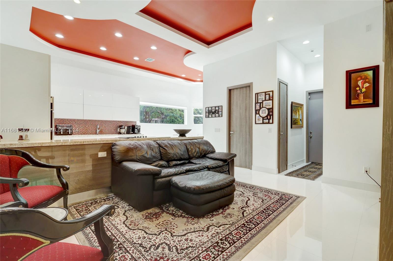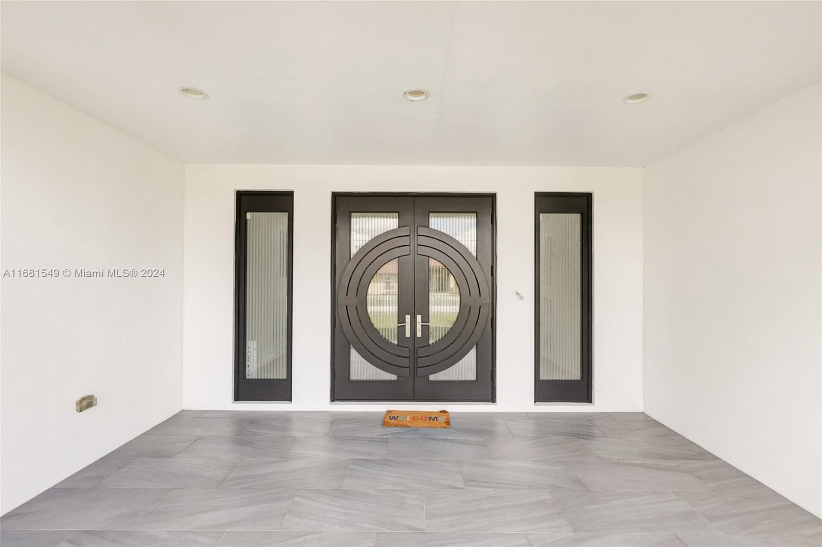 Experience luxury in this newly built, custom contemporary home, with 5 bedrooms (1 bed used as dedicated office) & 3.5 bathrooms. This stunning residence showcases unparalleled craftsmanship and design. Italian porcelain floors flow throughout, connecting an open living and formal dining area to a gourmet eat-in kitchen with quartz countertops, mosaic backsplash, and high-end stainless steel appliances. The master suite offers dual vanities, a glass-enclosed shower, and a freestanding tub. Secondary bedrooms feature a Jack-and-Jill bathroom. Impact-resistant windows and a custom front door provide security, elengace and style, while a backyard with lush fruit trees invites relaxation. Built with top-quality materials, this one-of-a-kind home blends elegance and comfort—a true masterpiece!