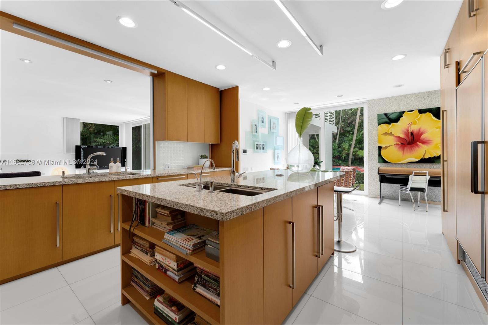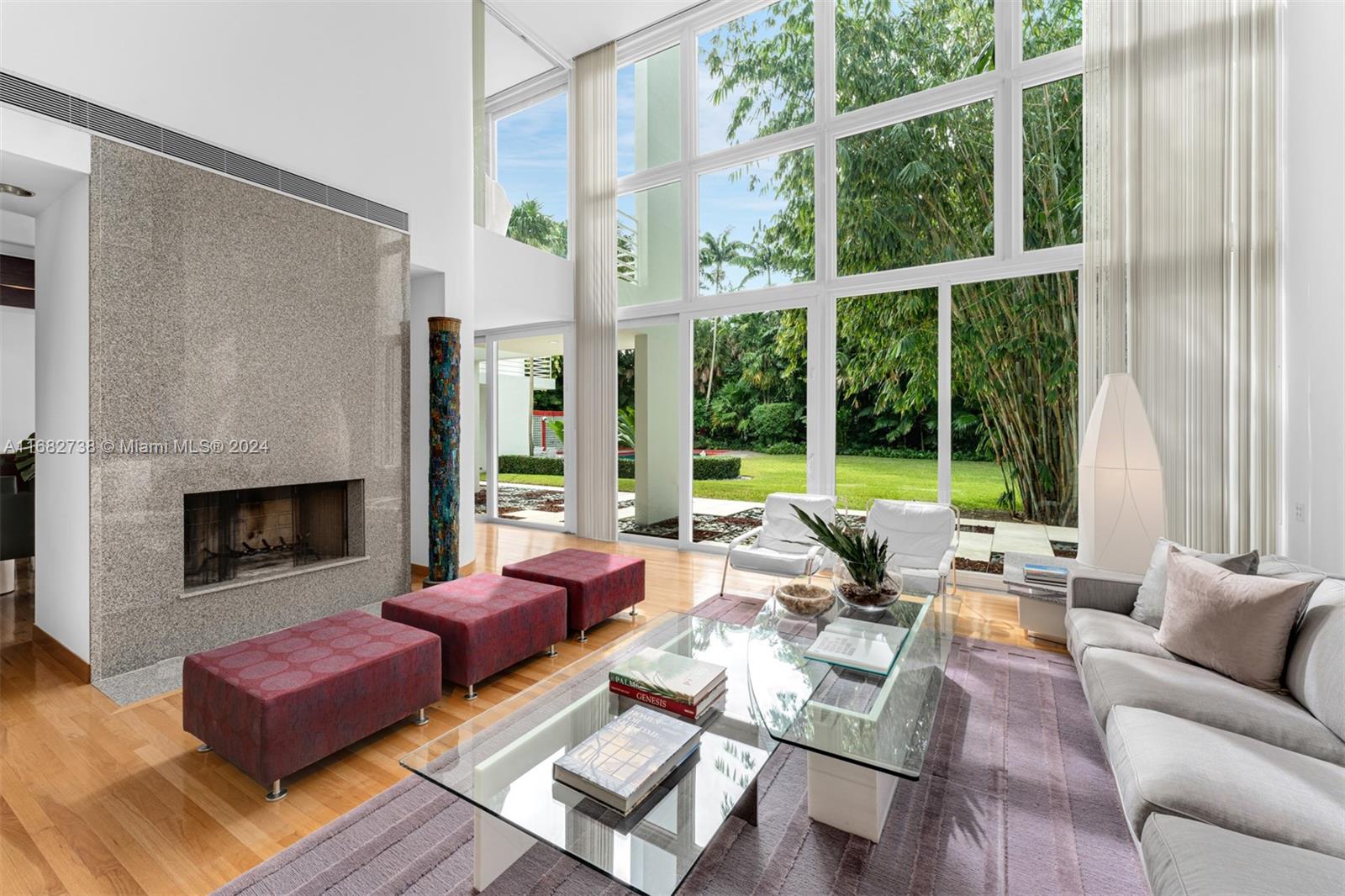 Welcome to this exceptional modern tri-level estate. Just beyond the entrance, two elegant glass-enclosed rooms open into a spacious living room with views of the expansive 38,028 SqFt backyard. The kitchen showcases porcelain floors, granite countertops, premium Wolf & Sub-Zero appliances, rich wood cabinetry, & a cozy breakfast nook. The primary suite offers serene backyard views, direct balcony access, & a spacious bathroom with dual sinks & abundant natural light. 3 additional bedrooms each have private ensuites, ensuring comfort & privacy, while a home office enjoys its own private staircase. On the third floor, a concrete rooftop provides panoramic views. Outside, a 1-bedroom detached guest house with a bathroom & a large pool nestled in lush greenery complete this serene retreat.