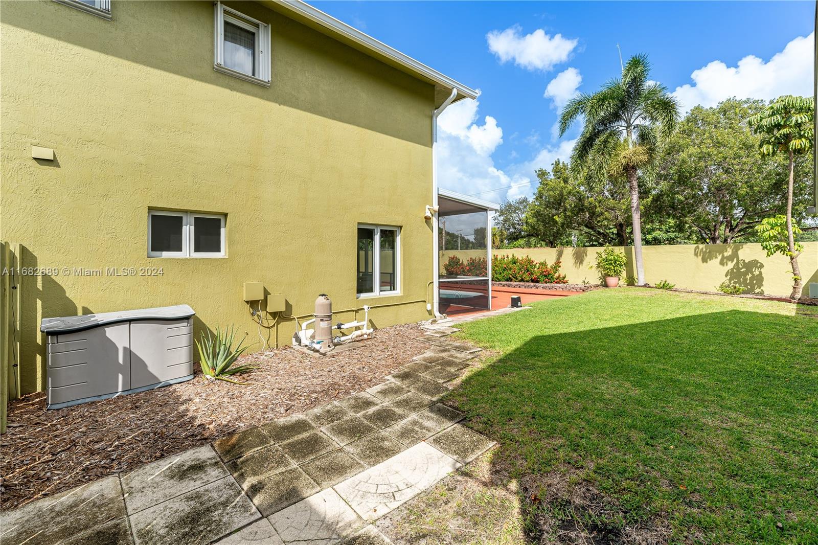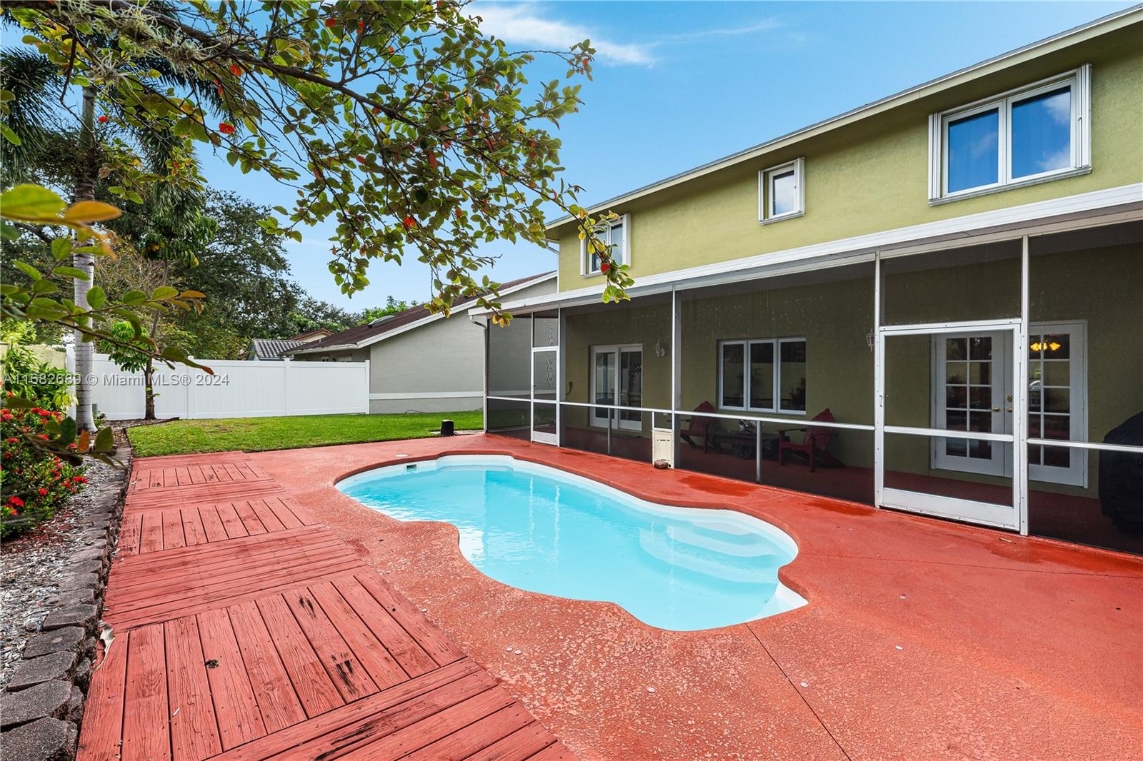 BACK ON MARKET, BUYER LOSING FINANCING, APPRAISED OVER LIST. Welcome home to this big 4 bedroom PLUS handy office with closet. Built in 98 this one has been kept in PRISTINE condition by the original owner. Large kitchen with wood cabinets & solid surface counters. Breakfast area, living area & quaint sitting area which can used for formal dining Textured ceilings & walls. Pretty laminate floors & open staircase. The primary suite is huge. Nice sized bedrooms. NEW ROOF! Hurricane shutters, accordions & rated garage door. Easy to maintain fiberglass pool with deck. Big screened & covered patio for entertaining. Private fenced lot w/no neighbors in the back. Terrific Plantation location within walking distance to elementary. Easy access to shopping, restaurants & highways. Low HOA.